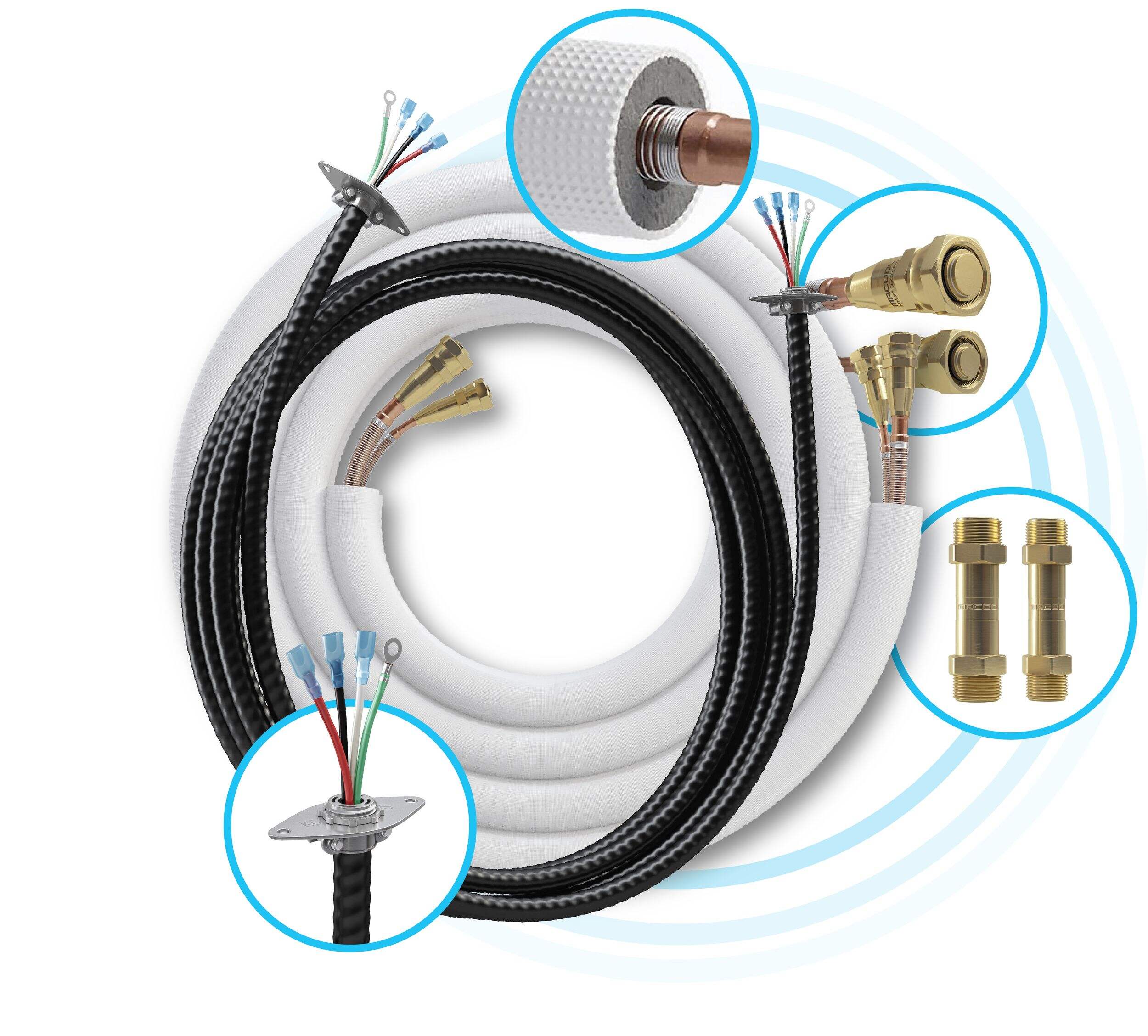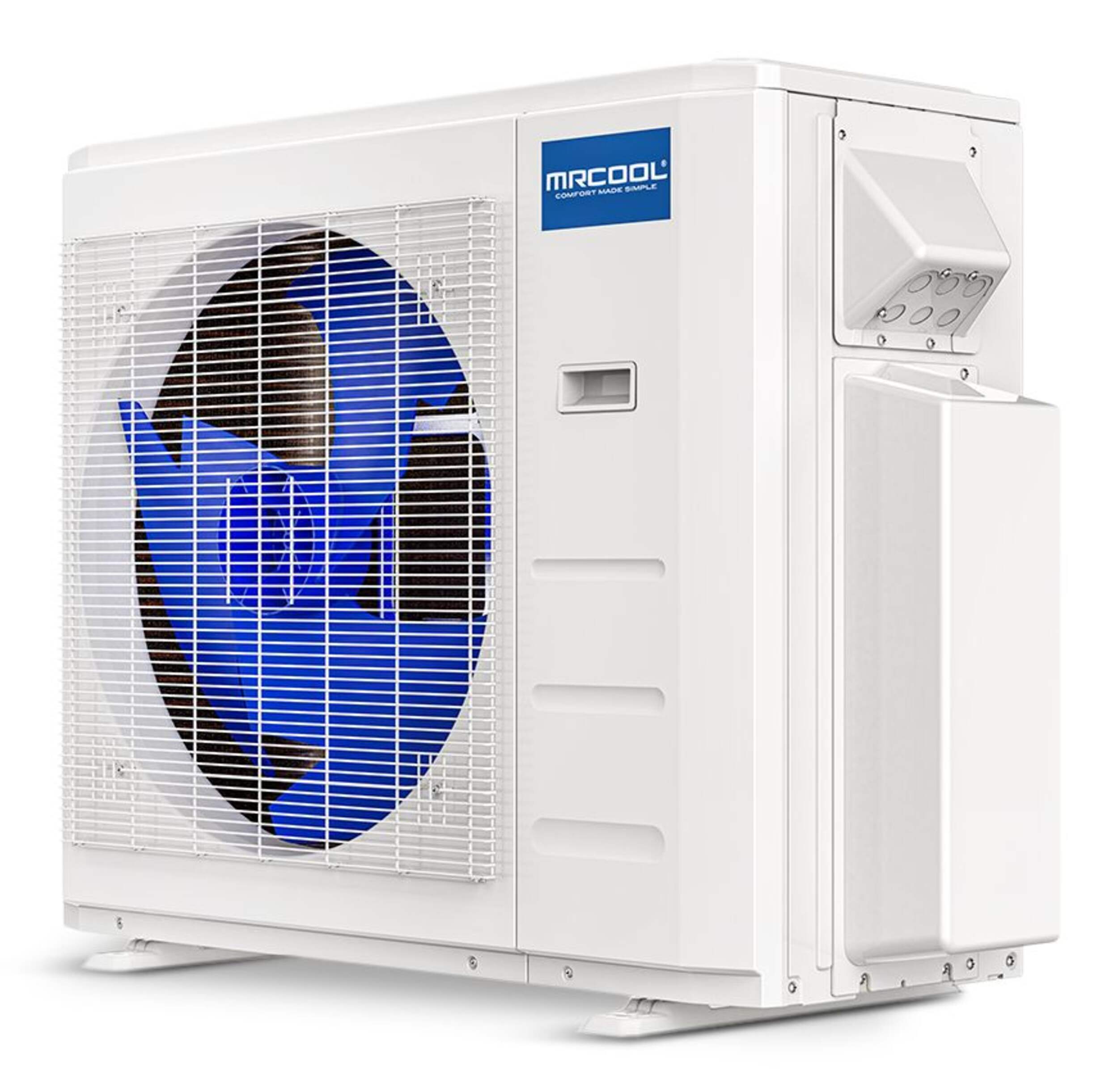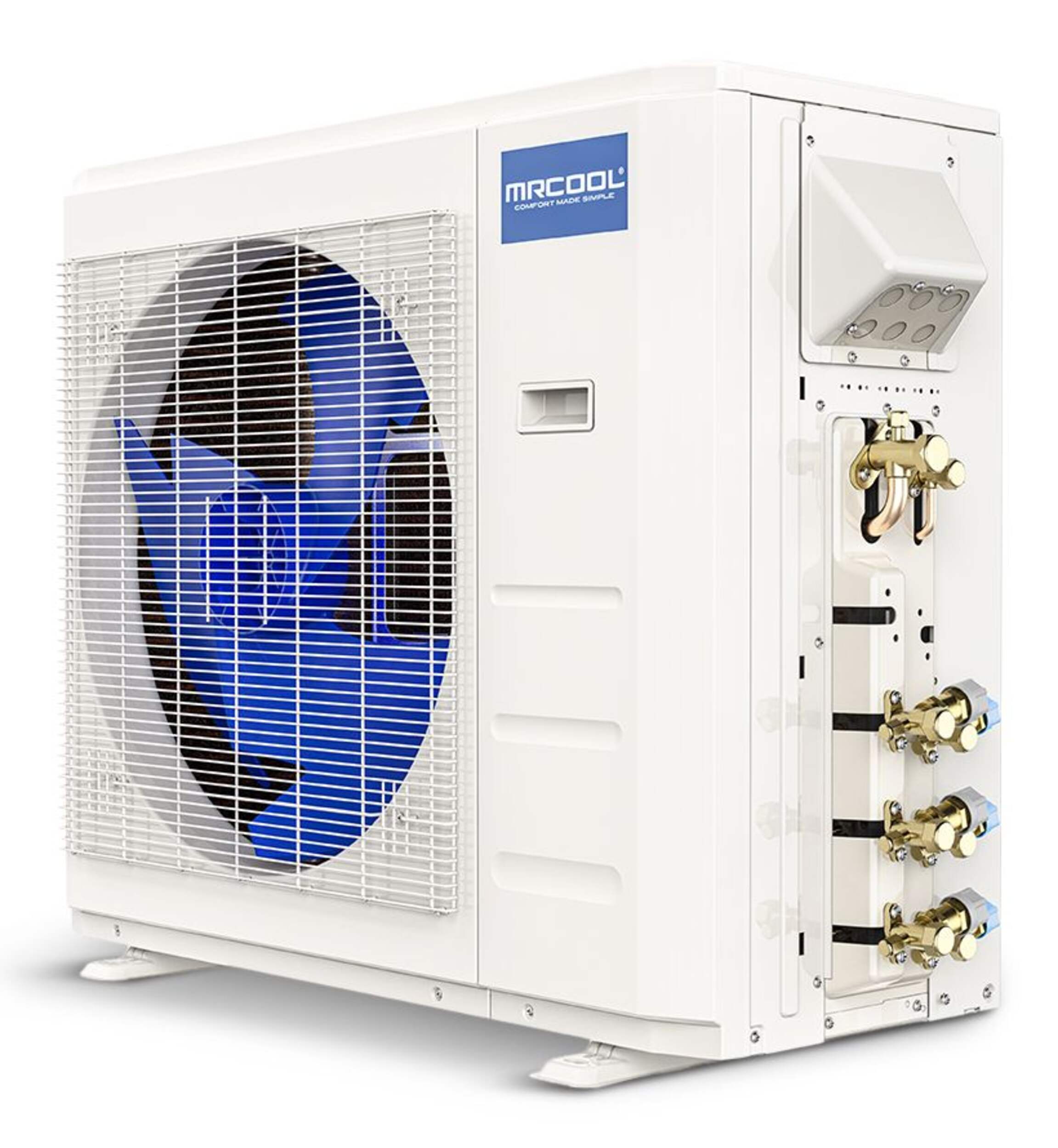 MRCOOL Ductless DIY Multi-Zone Heat Pump Package includes MRCOOL 27K BTU multi-zone condenser, 9K and 18K BTU wall mounted air handlers, 2 remotes, two 16 ft (4.8 m) quick connect linesets, and the 2 SmartHVAC app kits