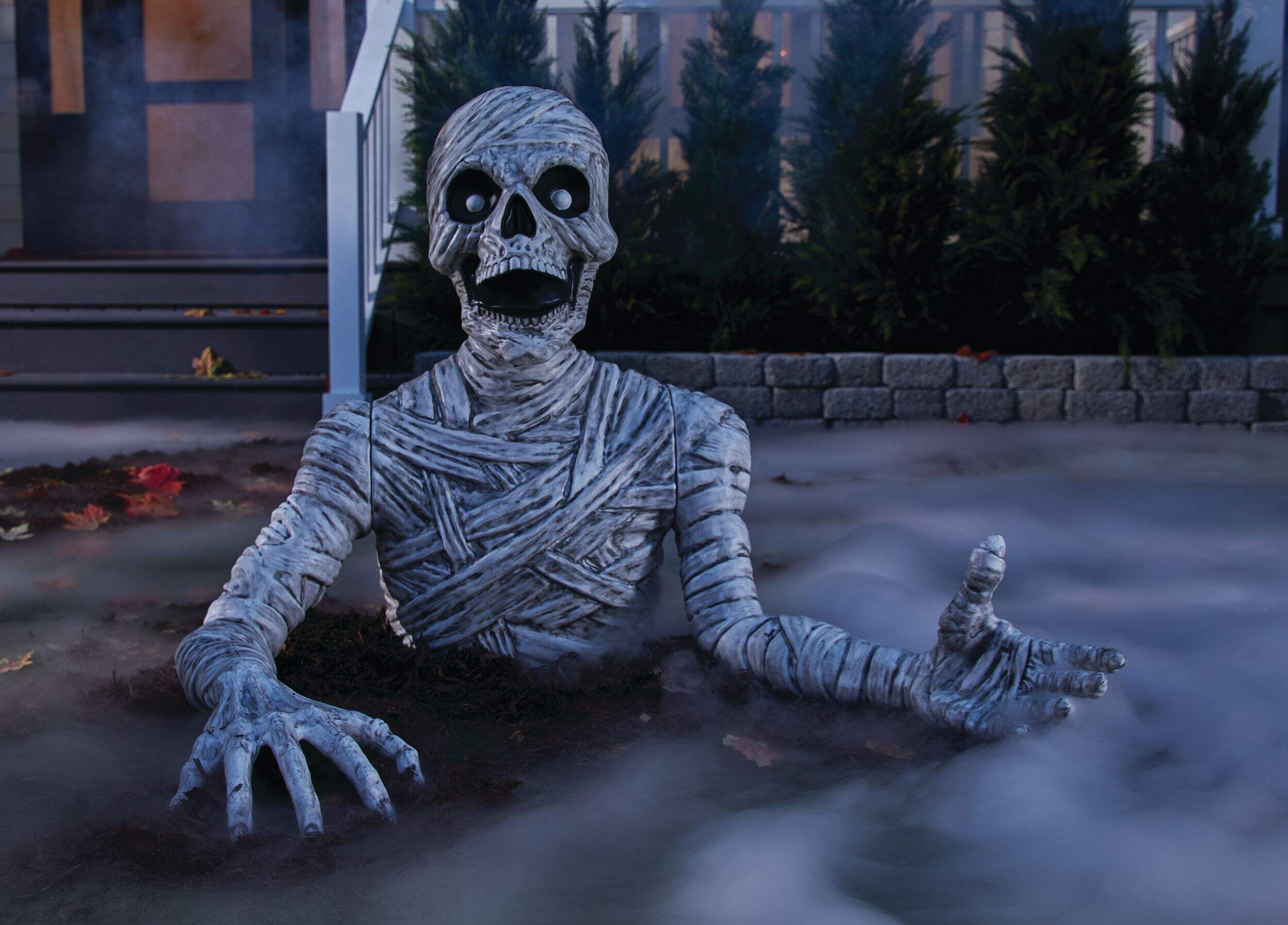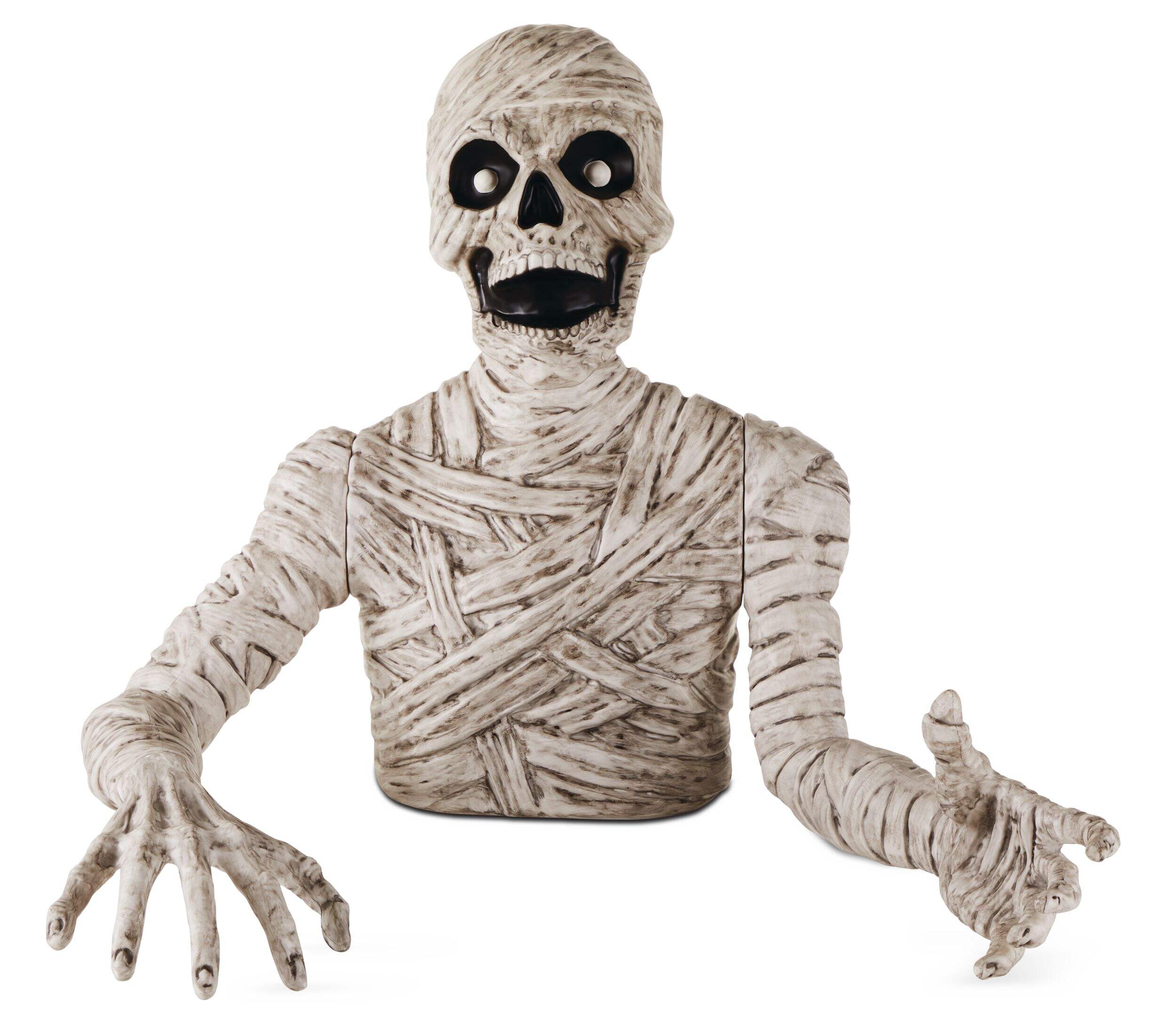 Create a spooky atmosphere this Halloween with the Mummy Halloween Decoration Plastic Ground Breaker. This eerie decoration features a realistic mummy design that appears to be emerging from the ground, perfect for adding a chilling touch to your yard or home. Its stationary arms enhance the lifelike appearance, making it a standout piece for your Halloween display.