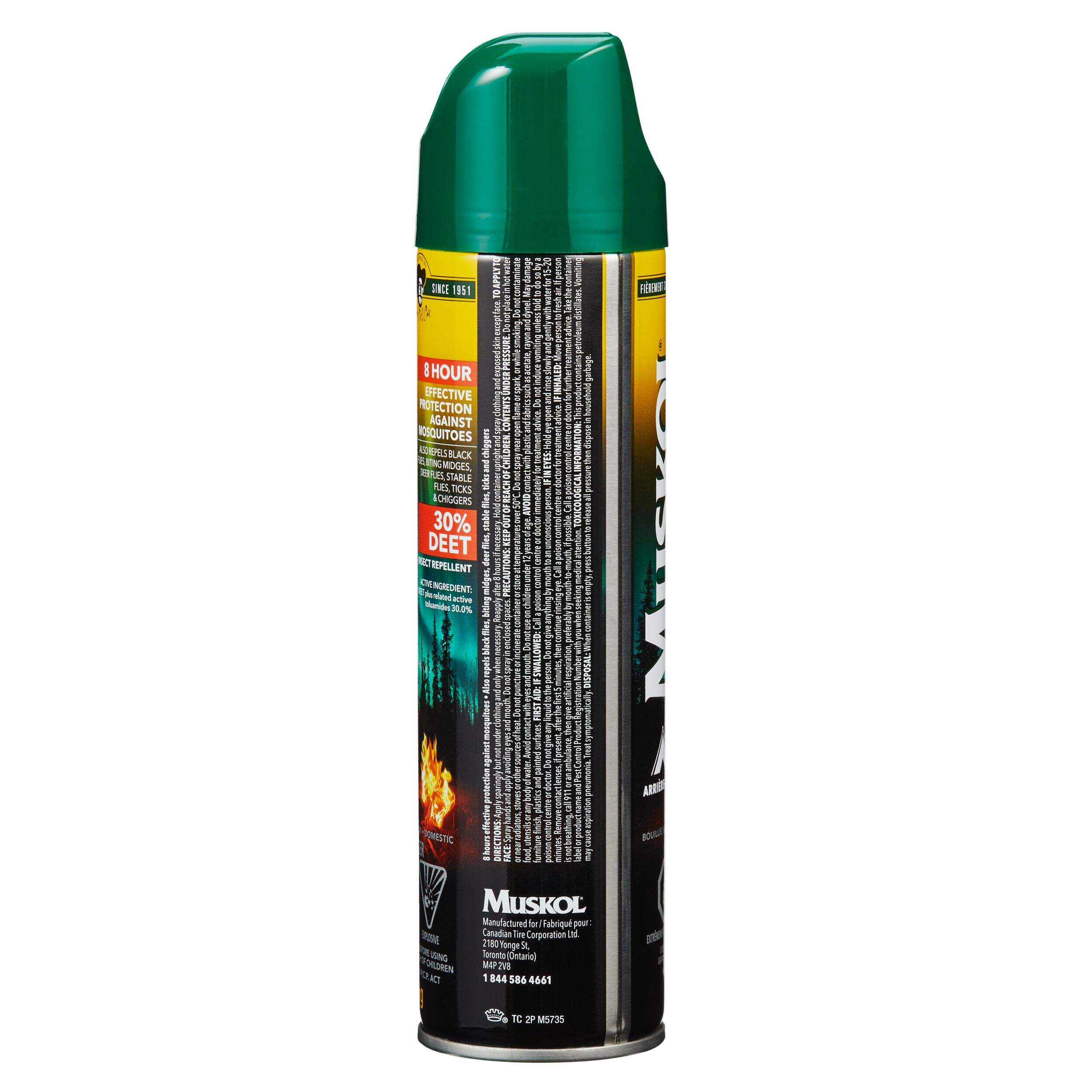 Say goodbye to bugs when you're enjoying the outdoors with Muskol BackCountry 8-Hour 30% DEET Aerosol Mosquito/Insect Repellent Spray. This powerful repellent contains DEET and active toluamides to repel biting insects for up to 8 hours. This effective spray also keeps black flies, biting midges, deer flies, stable flies, ticks and chiggers from biting, so it’s ideal to take along when camping, hiking or fishing.