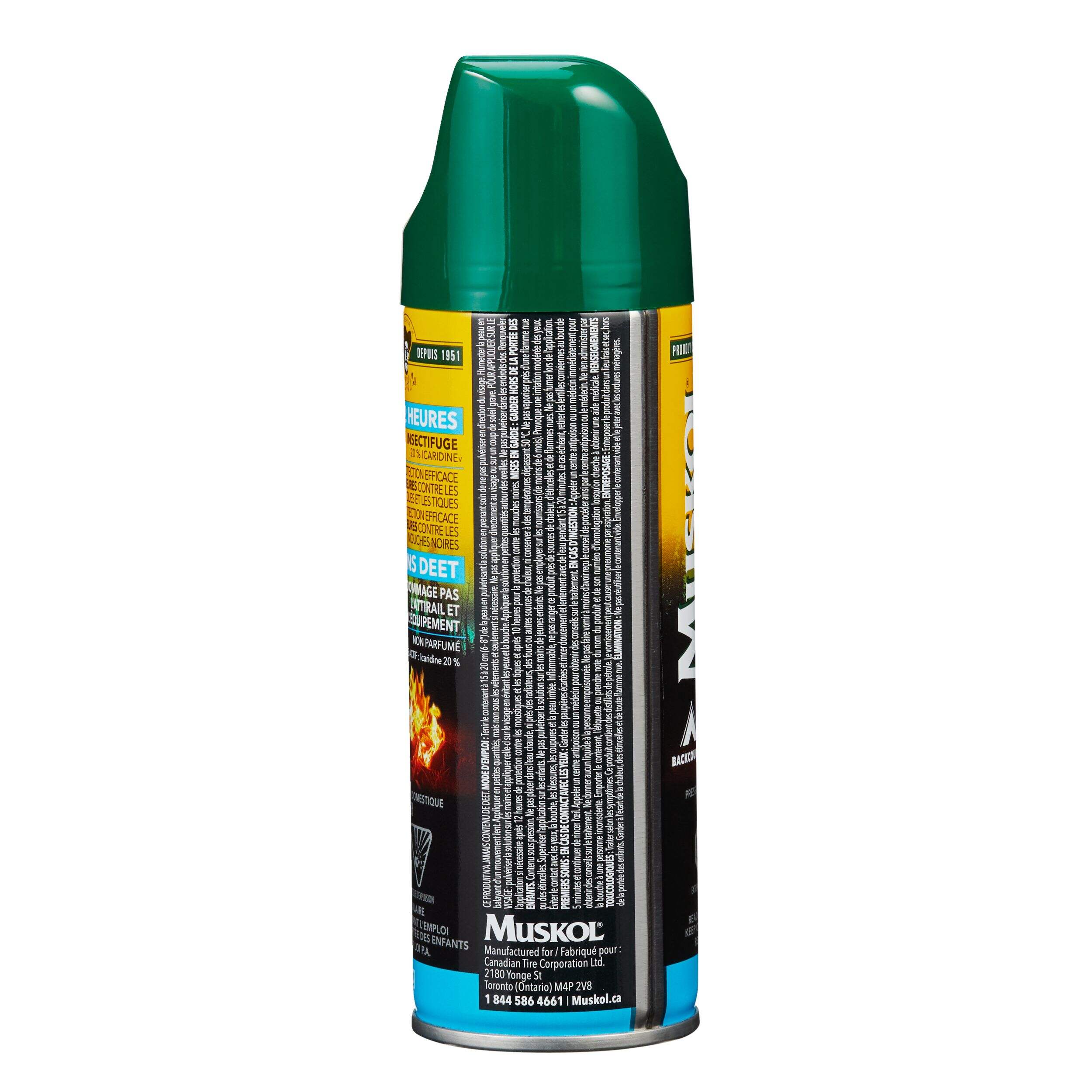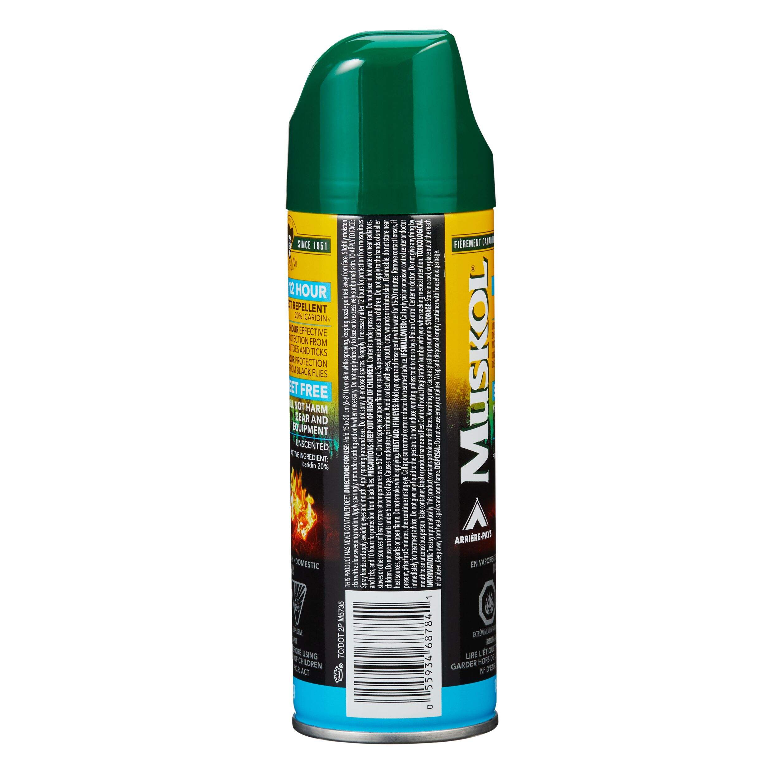 Muskol BackCountry 12-hour DEET-Free Aerosol Mosquito/Insect Repellent Spray provides 12-hour effective protection against mosquitoes and ticks, and 10-hour protection from black flies. This unscented DEET free insect repellent spray formula is designed for use in the backcountry and will not harm gear or equipment. Proudly made in Canada.