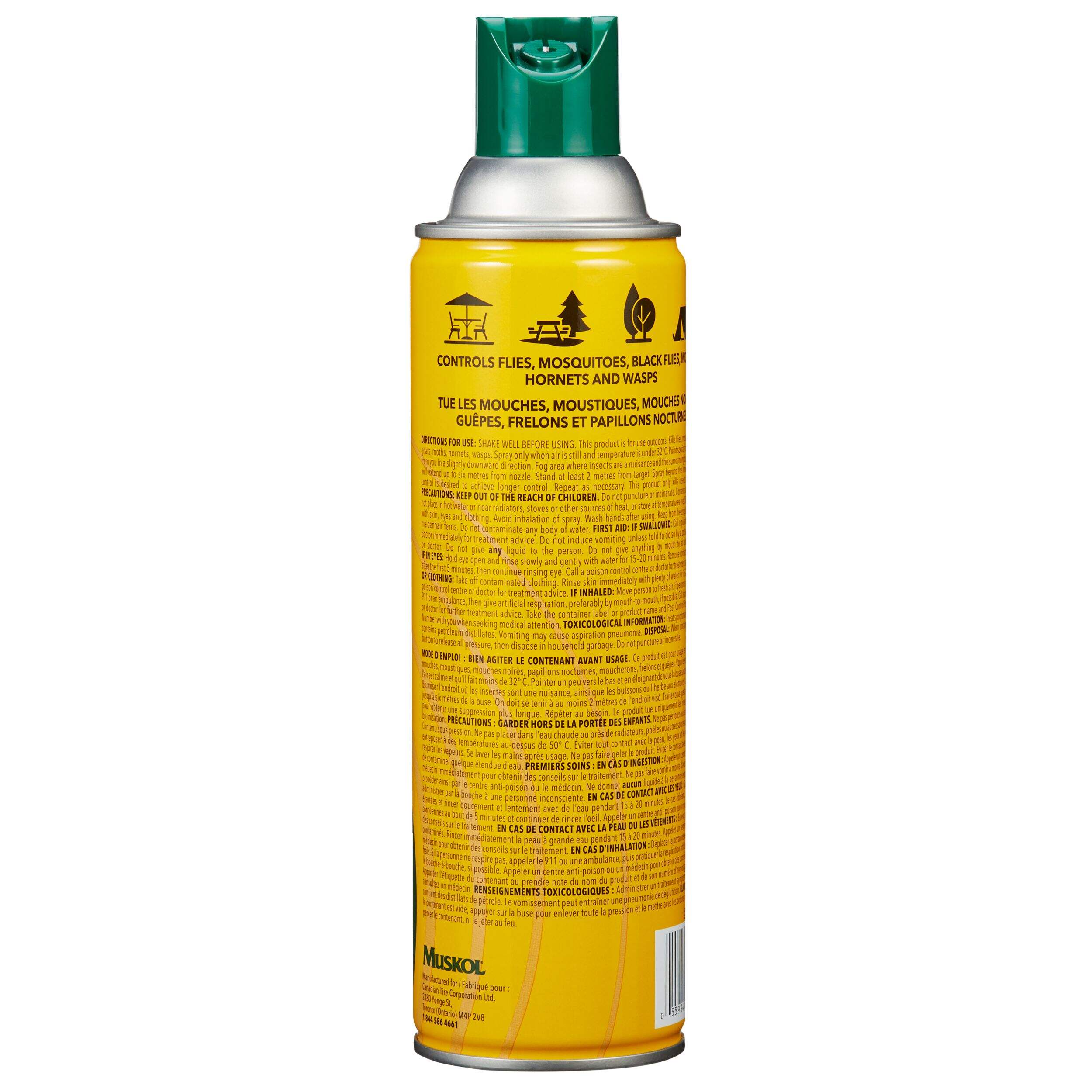 The Muskol Patio & Deck Fogger Mosquito/Insect Repellent Spray provides effective protection against mosquitoes. This insect repellent spray fogs up to 6 meters in your patio or deck. This insecticide contains active ingredients to control flies, mosquitoes, black flies, moths, hornets and wasps. Proudly made in Canada.