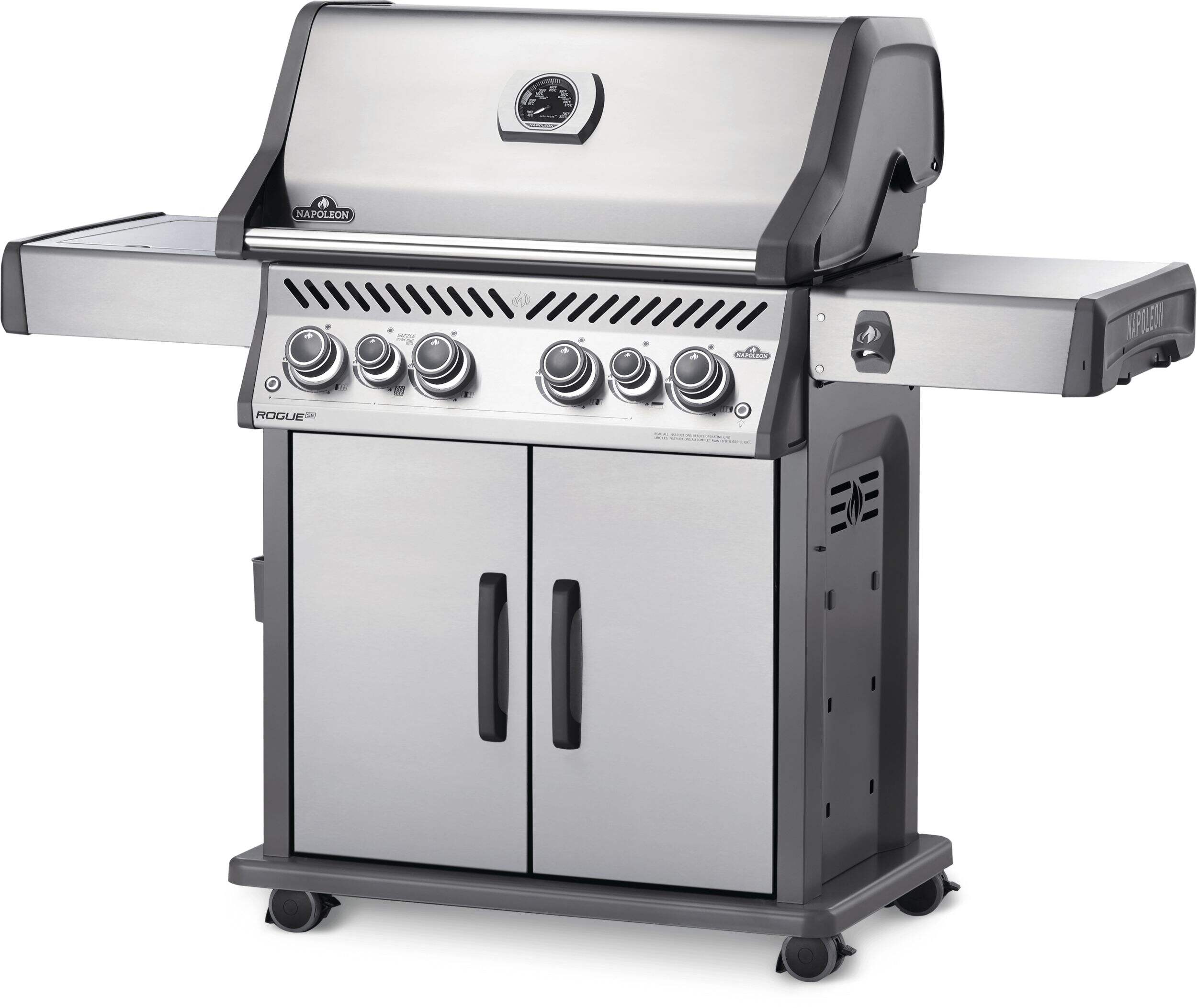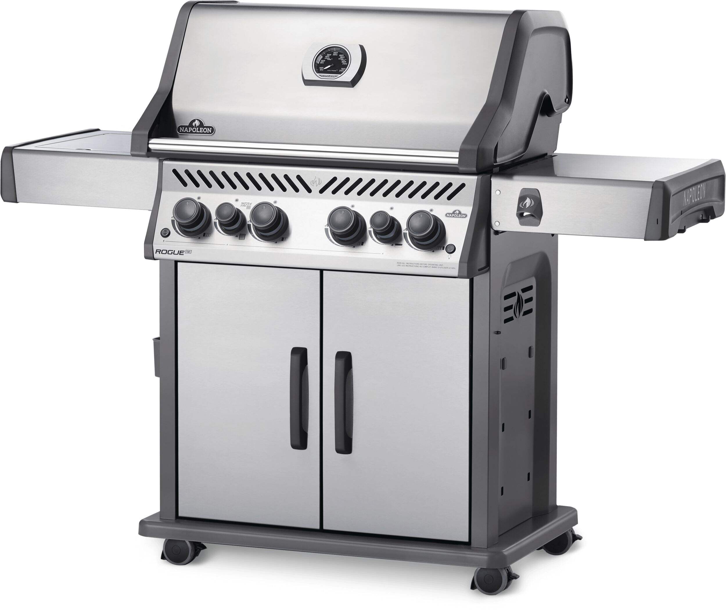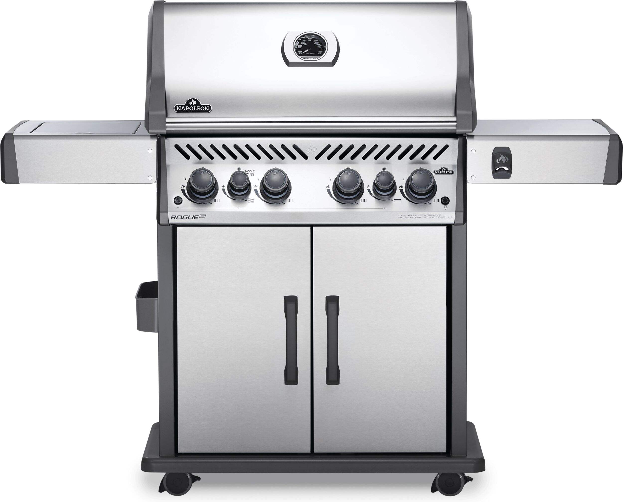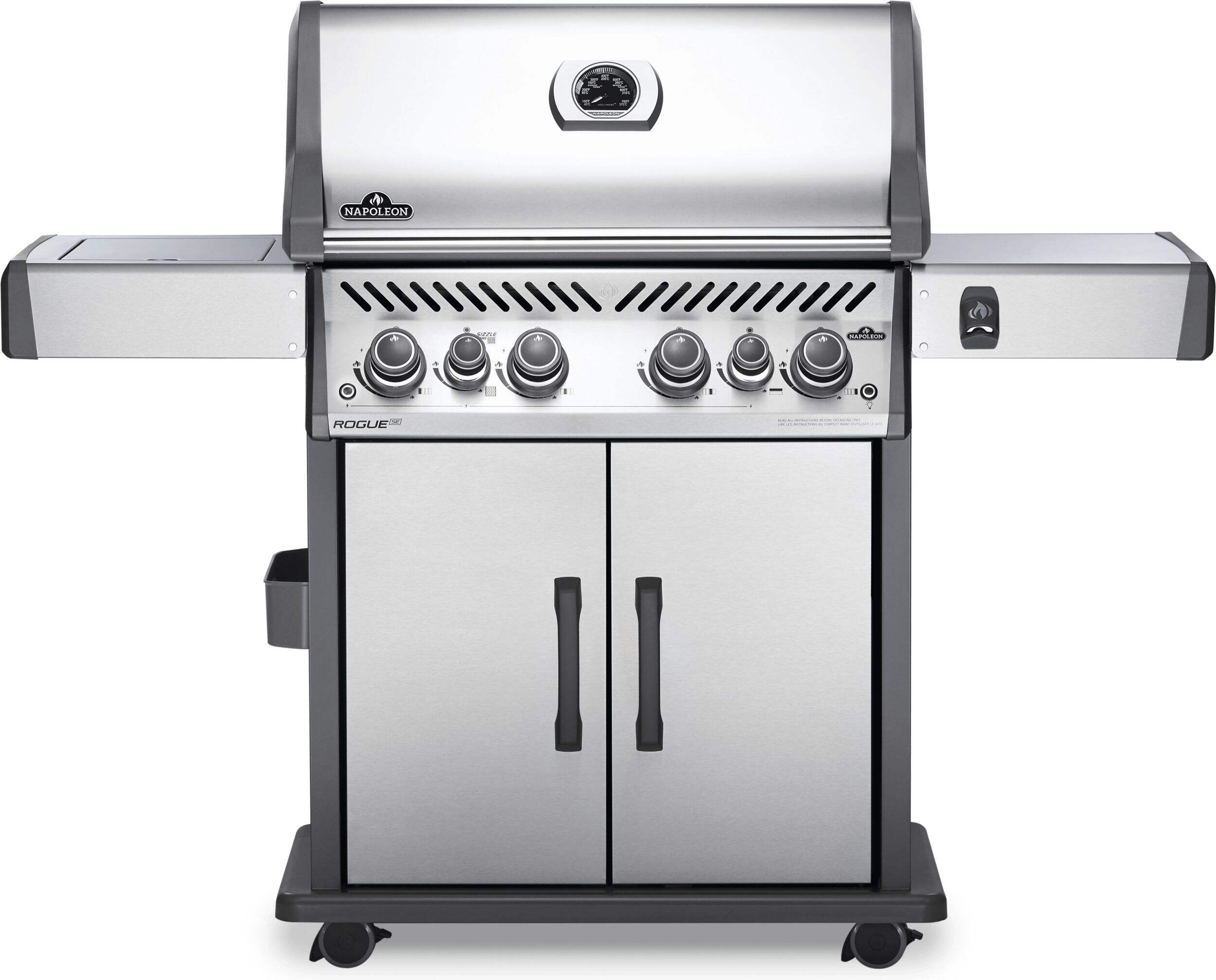The Napoleon Rogue® SE 525 Stainless Steel Natural Gas Grill with Infrared Side Burner and Rear Burner is a durable stainless steel grill. Featuring four main burners, a rear rotisserie burner, and a side infrared burner, this grill has everything you need to create gourmet meals. The infrared side burner allows you to sear restaurant-style steaks, while the infrared rear burner is perfect for rotisserie meals. Rogue SE models boast additional features such as an integrated bottle opener, a high-top lid, and a sleek new control panel with backlit control knobs.