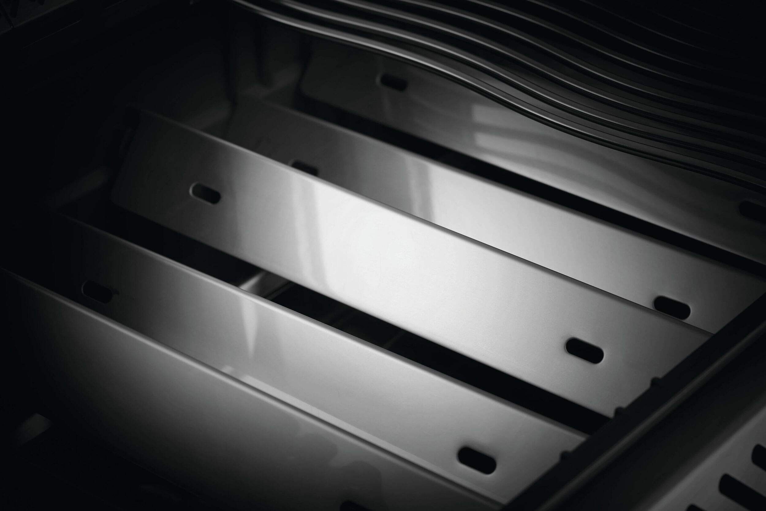 DUAL LEVEL SEAR PLATES: Dual level, stainless steel sear plates catch and vaporize any food drippings, protecting the stainless steel tube burners from damage and keeps your barbecue cleaner