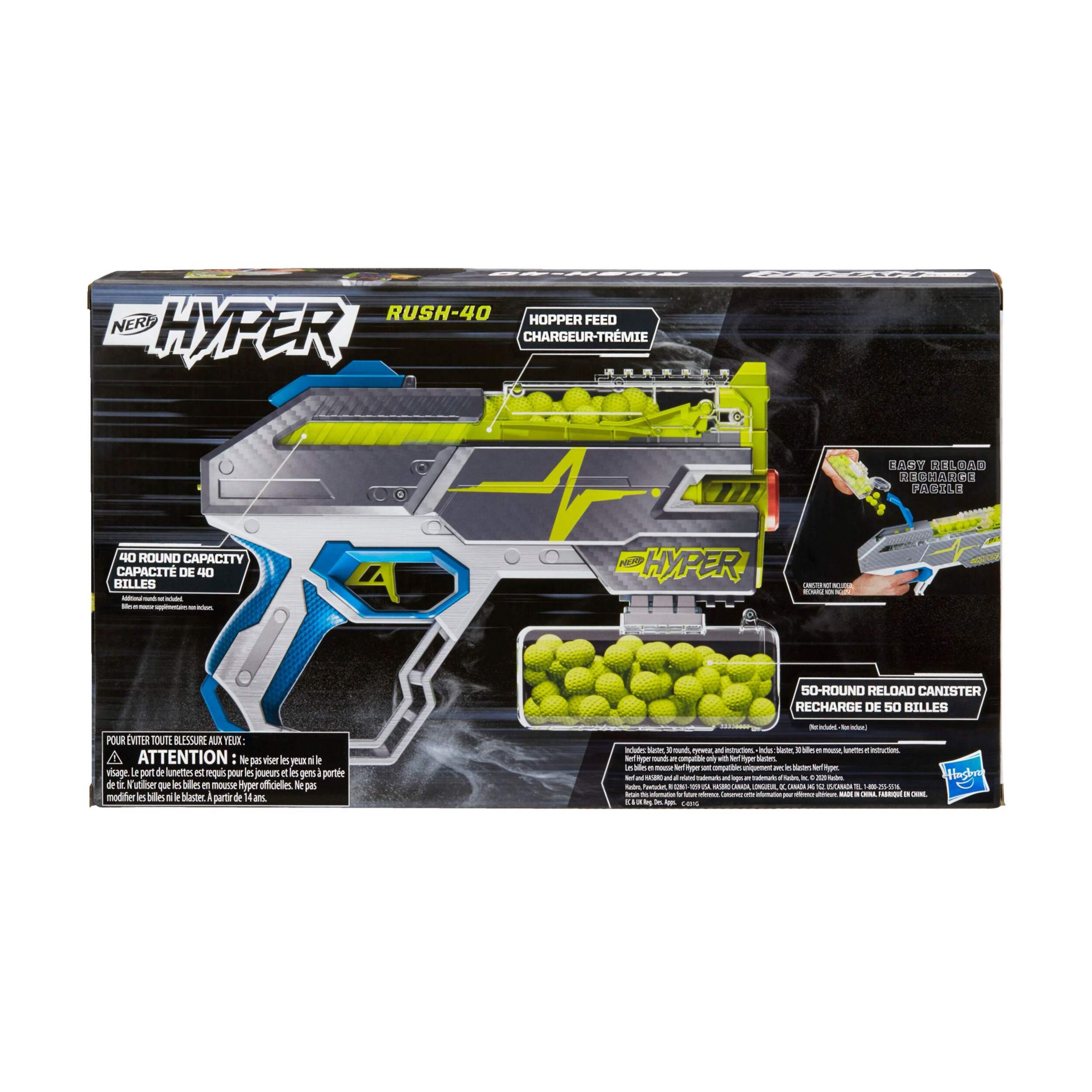 40 NERF HYPER ROUNDS AND LARGE HOPPER WITH 40-ROUND CAPACITY: Blaster comes with 30 Nerf Hyper rounds. Large, easy-load hopper can hold up to 40 rounds (additional rounds sold separately)