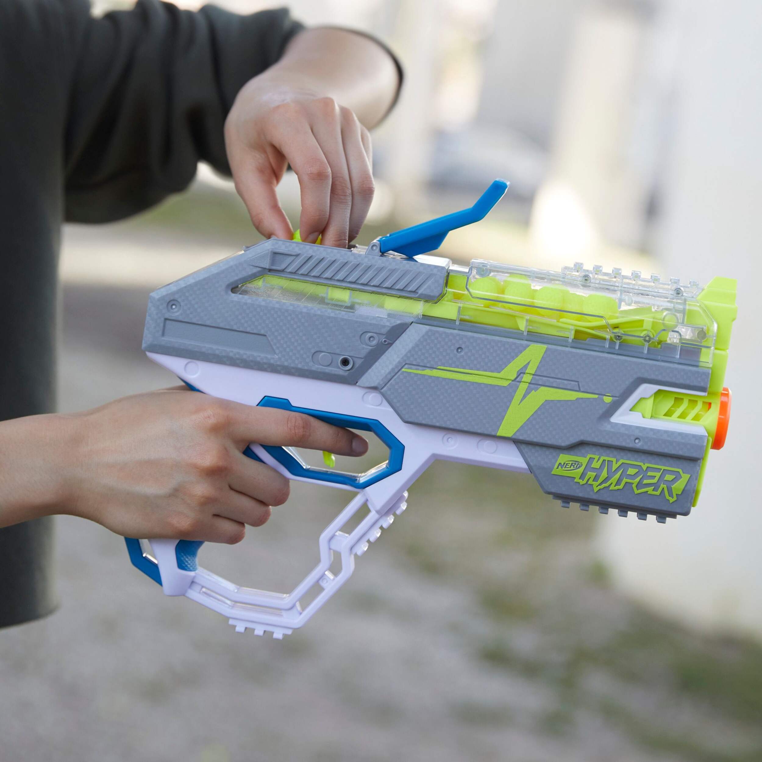 REVOLUTIONARY NERF HYPER SYSTEM: Featuring Nerf Hyper rounds with an innovative design and material for unparalled performance to maximize capacity and speed