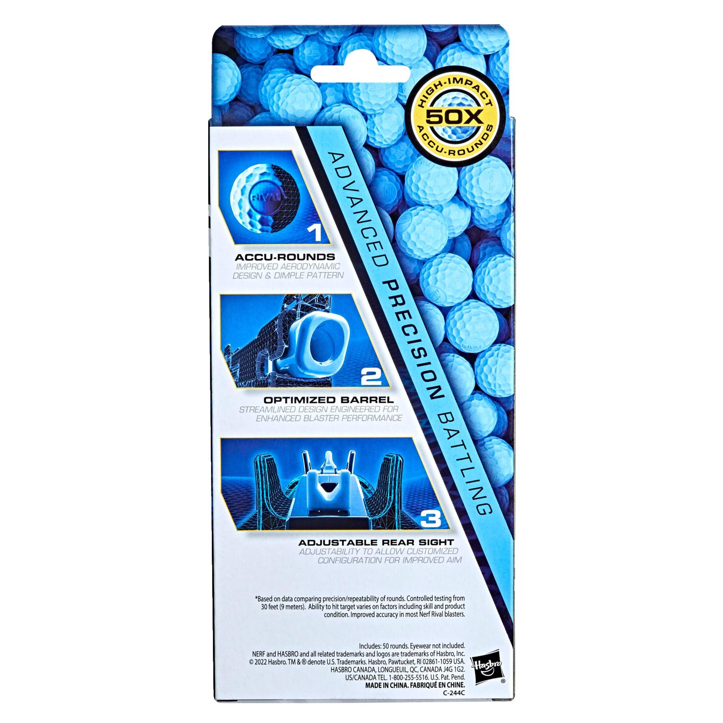 INCLUDES 50 NERF RIVAL ACCU-ROUNDS FOR USE WITH ALL NERF RIVAL BLASTERS: Nerf Rival Accu-Rounds are compatible with all Nerf Rival blasters (blasters each sold separately, subject to availability)