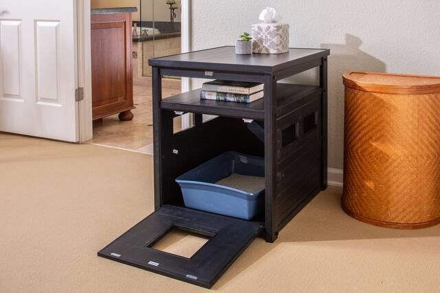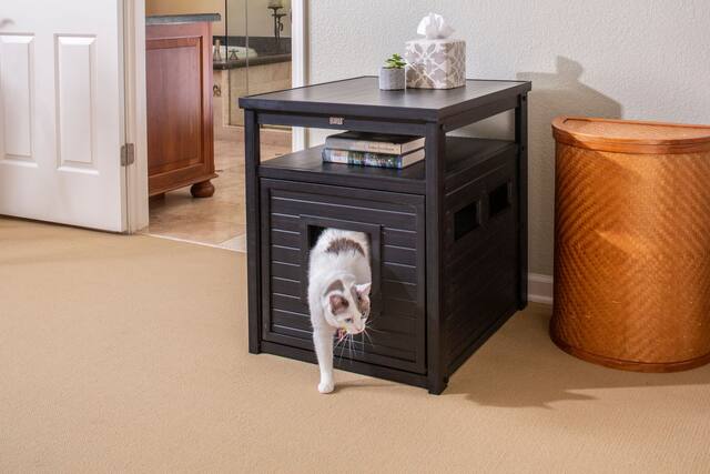 New Age Pet® LitterLoo® Jumbo Cat Litter Box Cover combines function and fashion, concealing the unsightly litter box while blending in with your home's décor