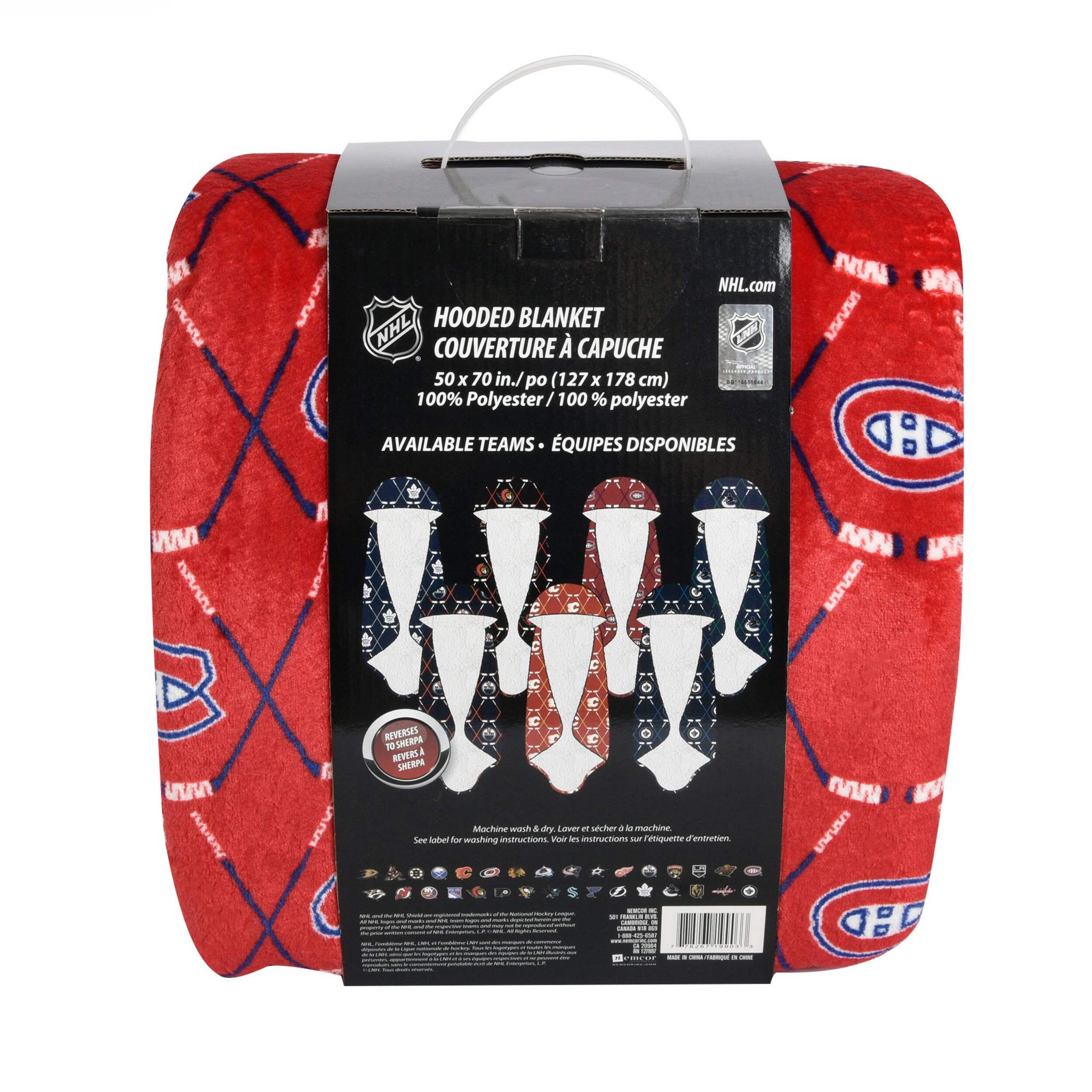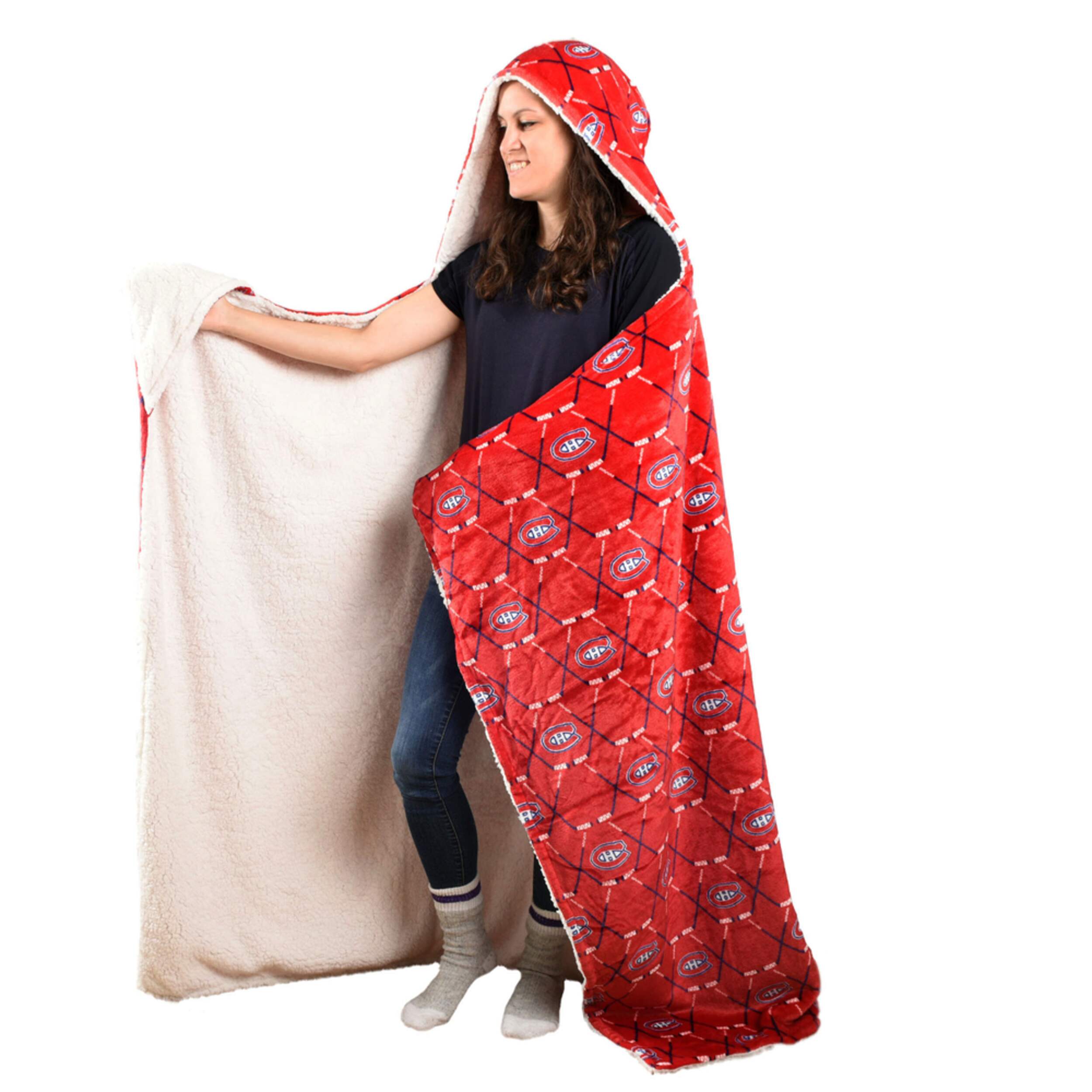Montreal Canadiens Hooded Blanket reverses to Sherpa and combines the warmth of a blanket and comfort of your favorite sweatshirt or robe into one!