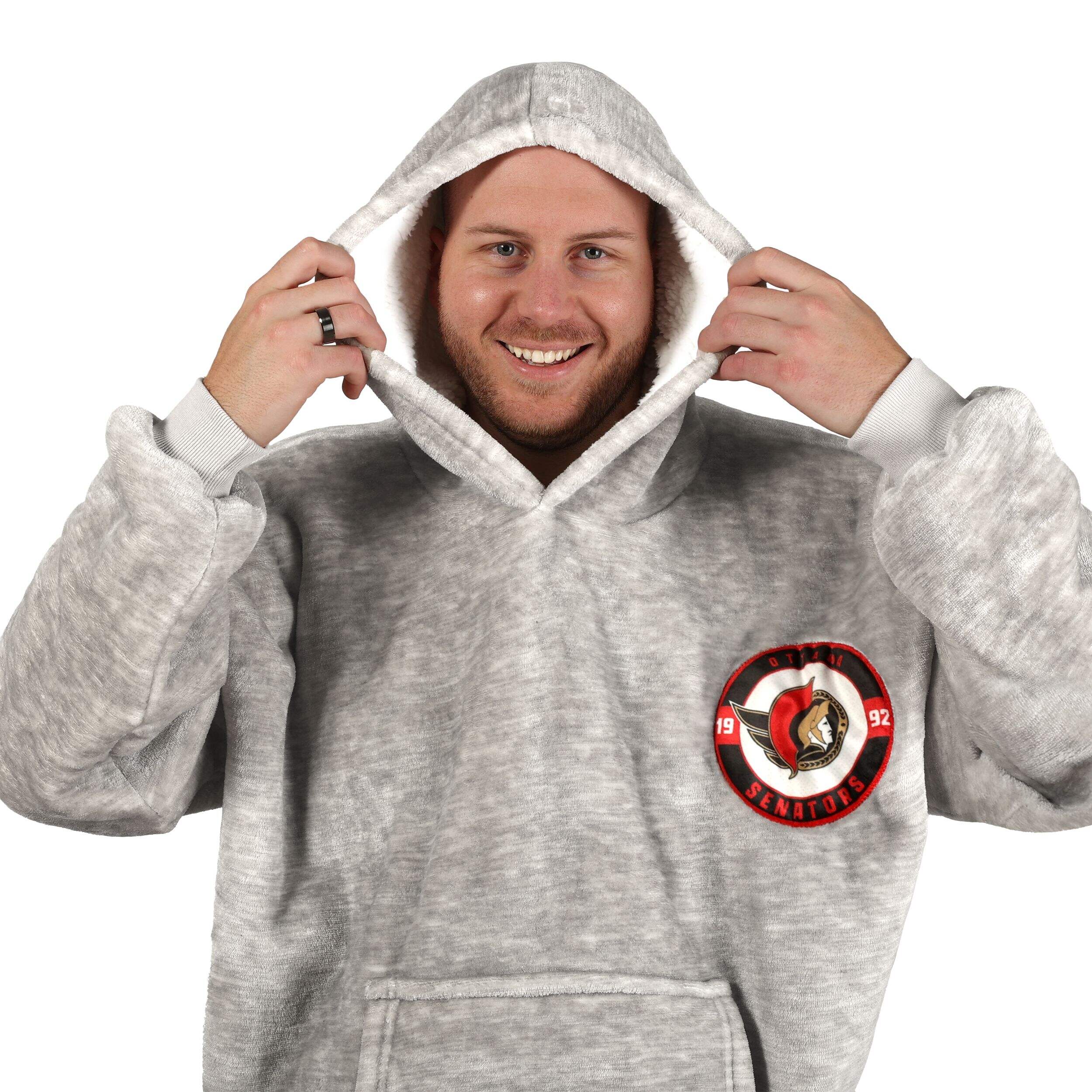 NHL Ottawa Senators Game Time Wearable Hooded Blanket is a plush sherpa-lined wearable with a hood and added hand pocket in the front that's perfect for staying warm while watching the hockey game from the comfort of your own home or in the stands