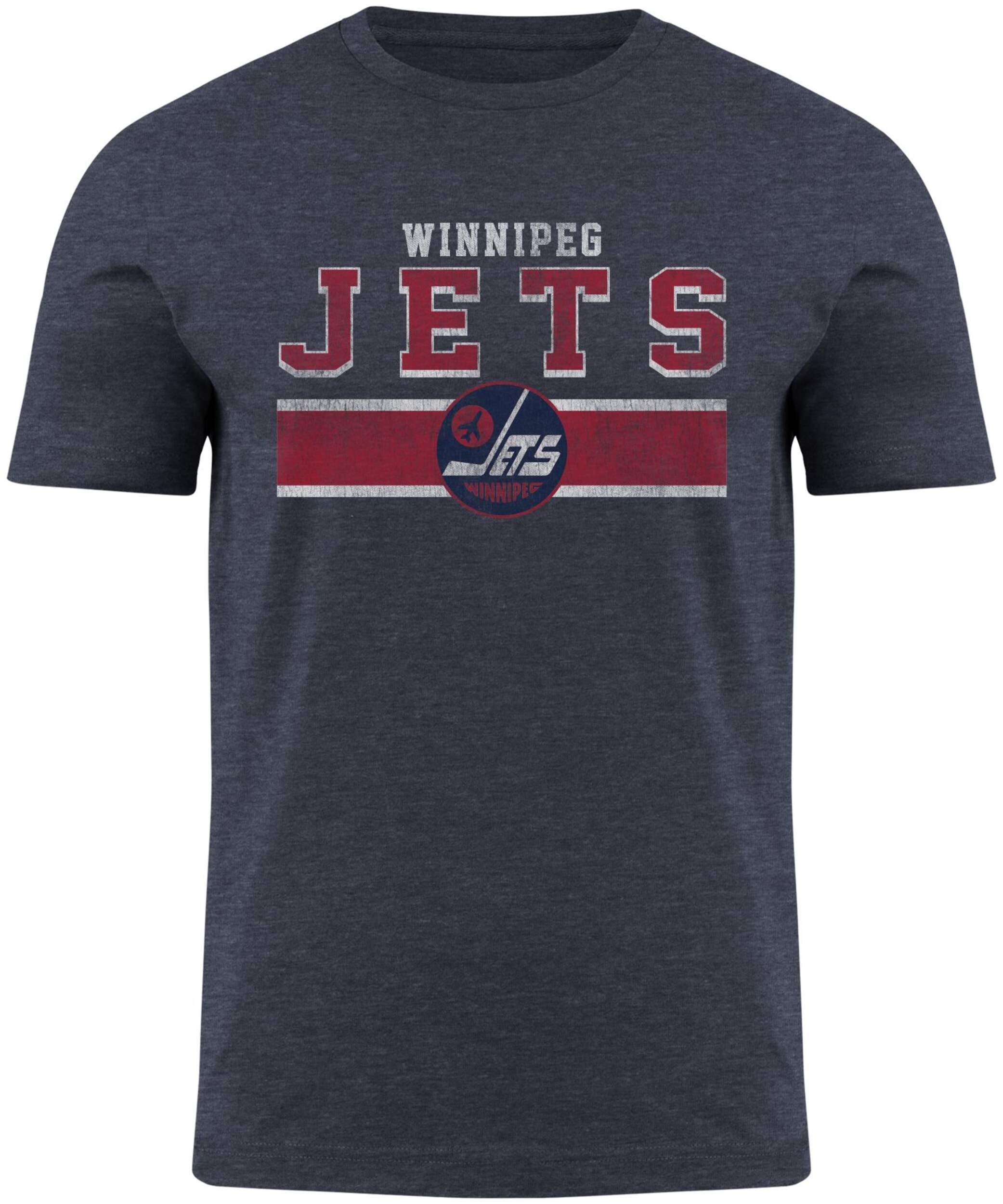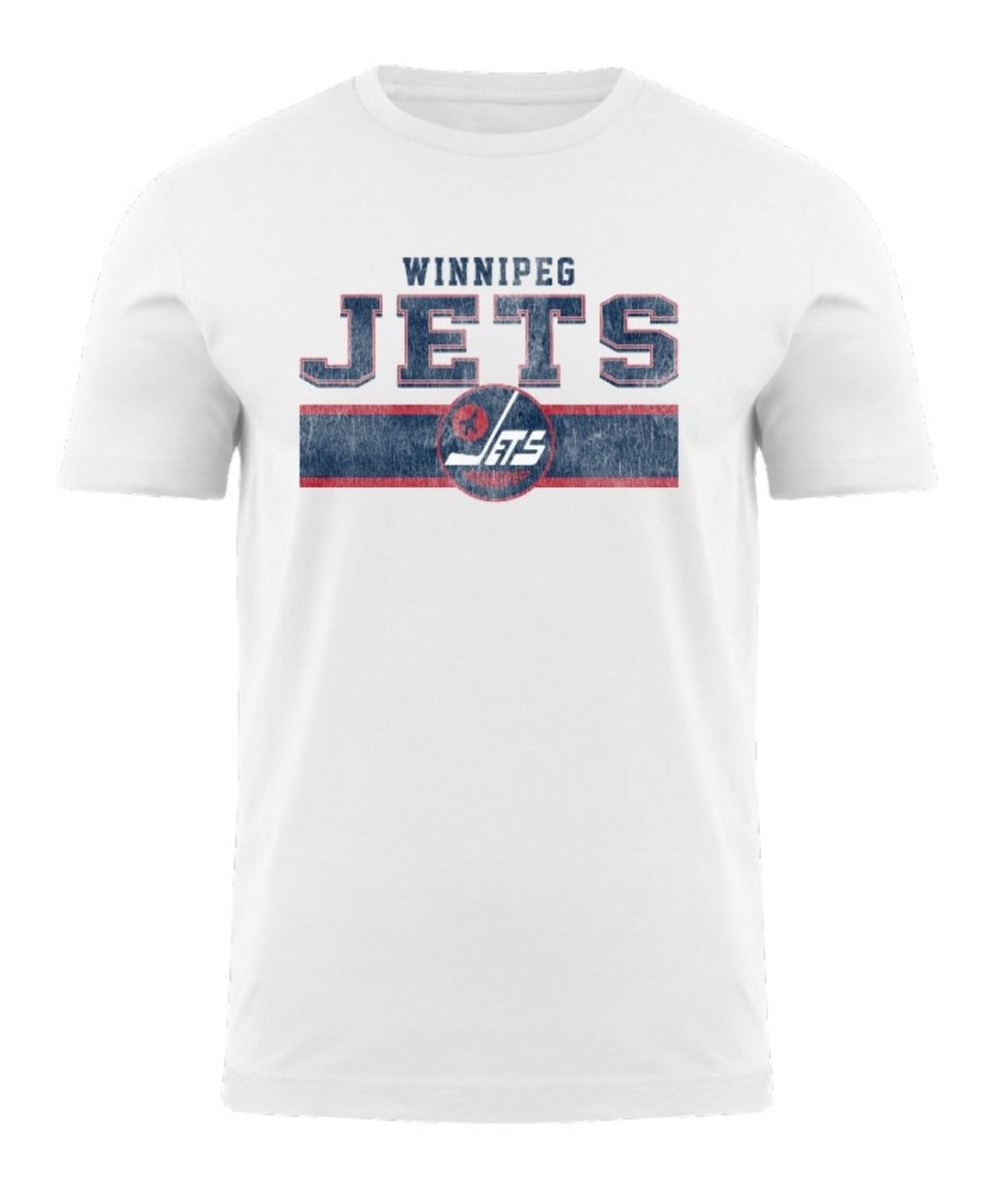 April 2025 Update: Starting in early April, stores will be offering a WHITE version of this t-shirt to support the Jets' arena “whiteout” that occurs during the NHL Playoffs. Please reach out to your store to find out which colour(s) they have in stock as online orders will be fulfilled with whatever colour they have available.