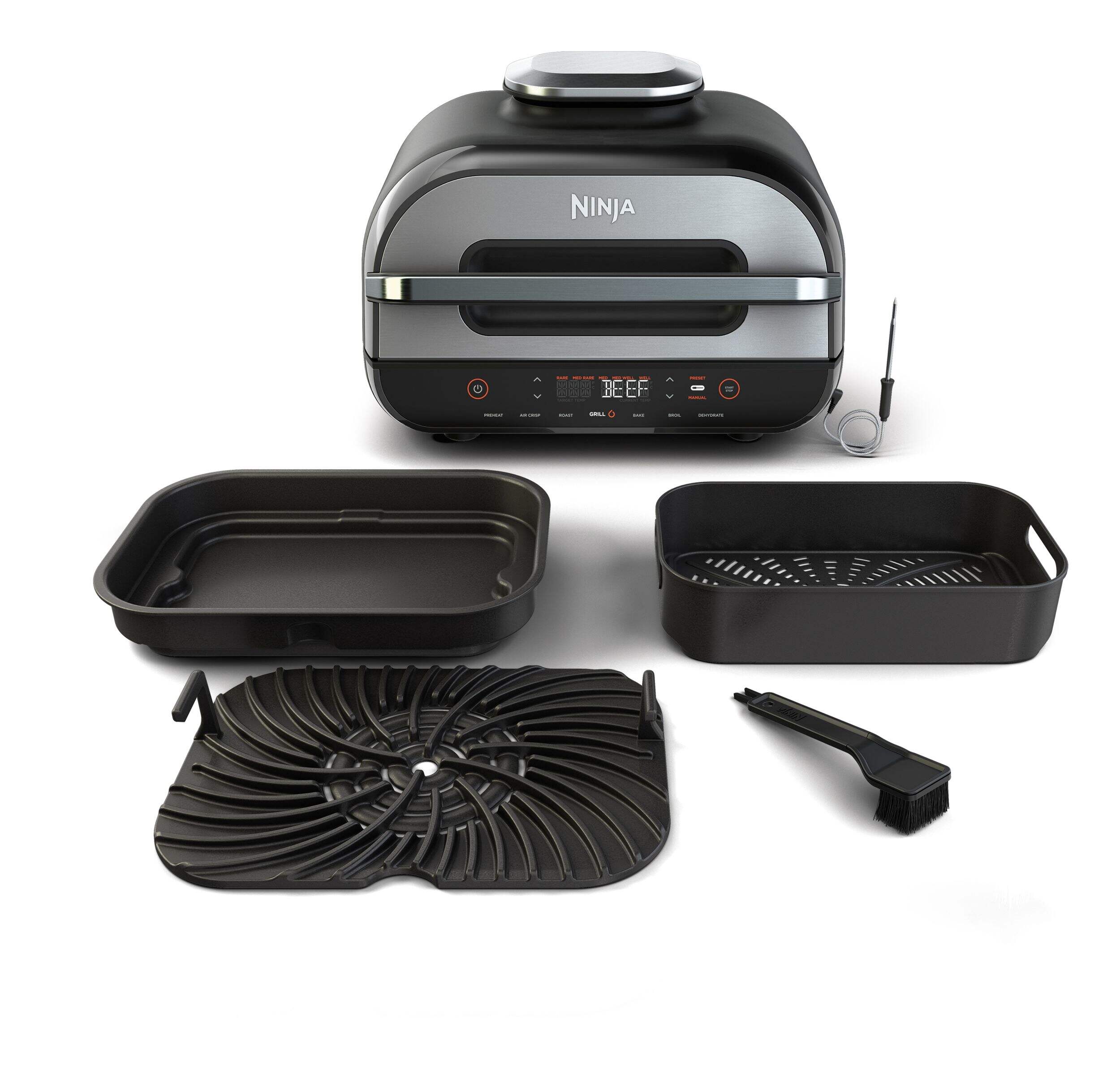 Meet the Ninja® Foodi™ Smart XL Grill, the SMART XL grill that sears, sizzles, and air fry crisps. The innovative Smart Cook System helps you achieve the perfect doneness from rare to well done at the touch of a button without the guesswork. With its XL capacity, you can grill even more full meals for the whole family, virtually smoke free. It even air fry crisps for guilt-free fried favorites.