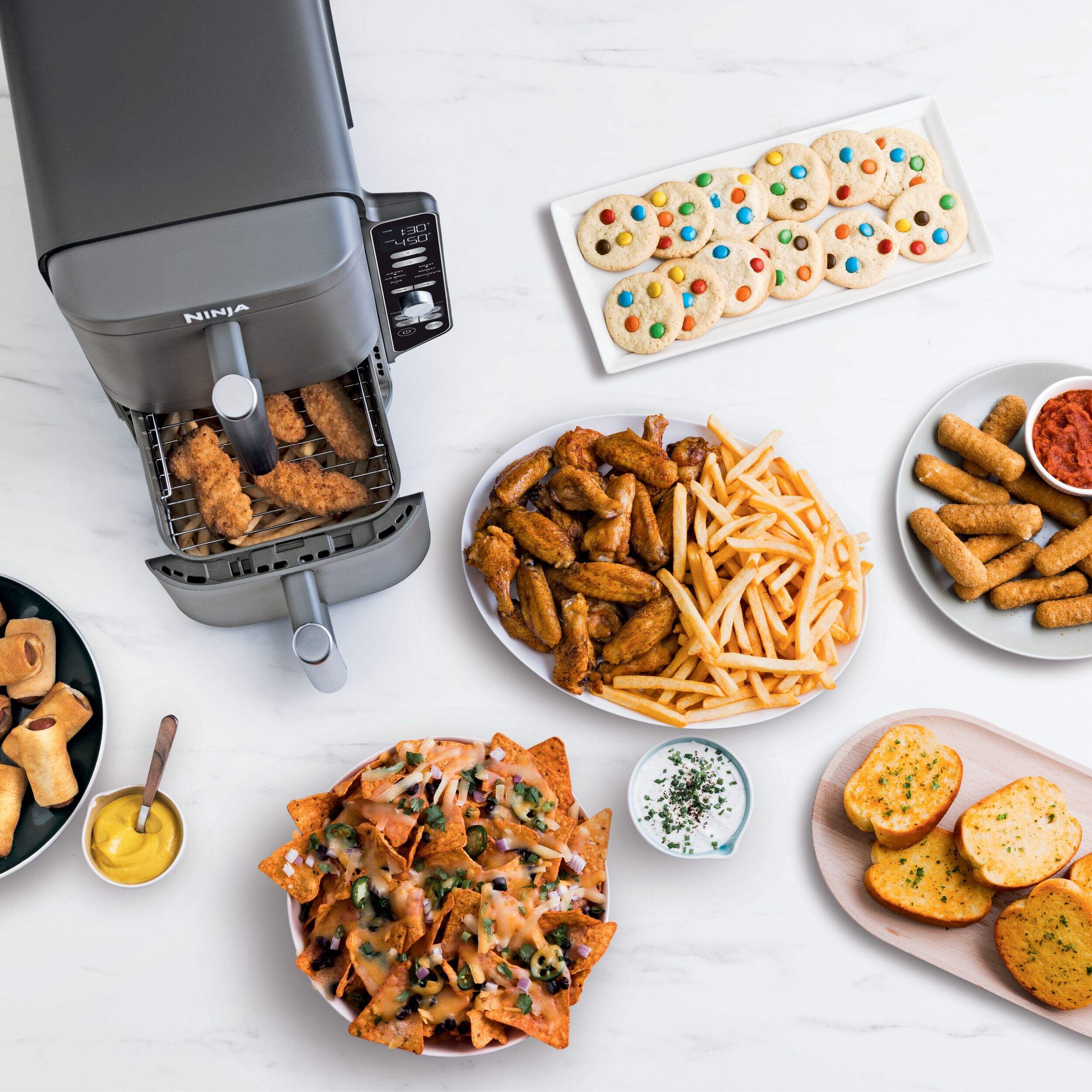 DualZone™ Technology features Smart Finish feature for cooking 2 foods 2 ways that finish at the same time
