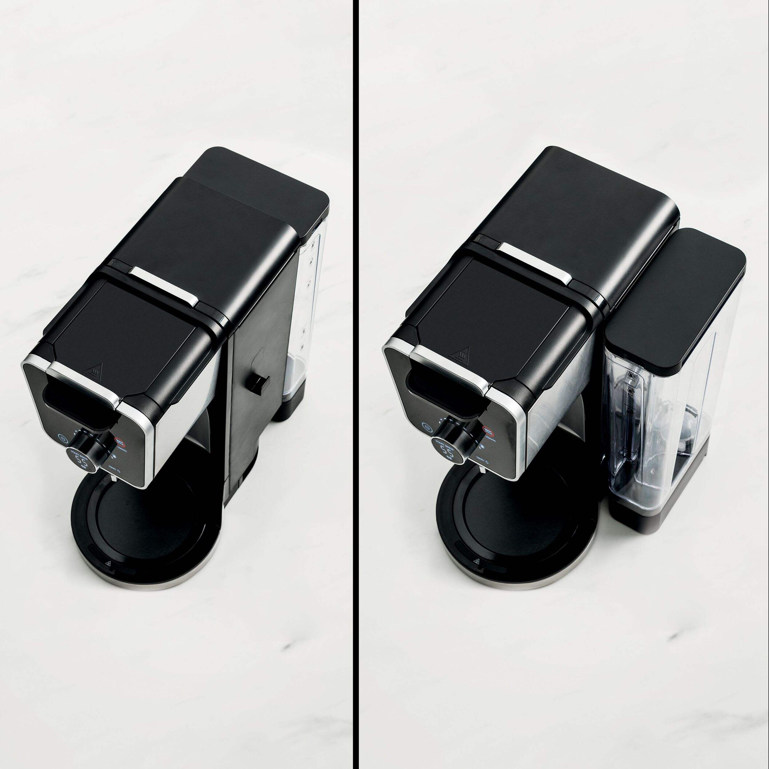 60-oz multi-position removable water reservoir allows you to position the reservoir on the side or rear of the machine to fit your space