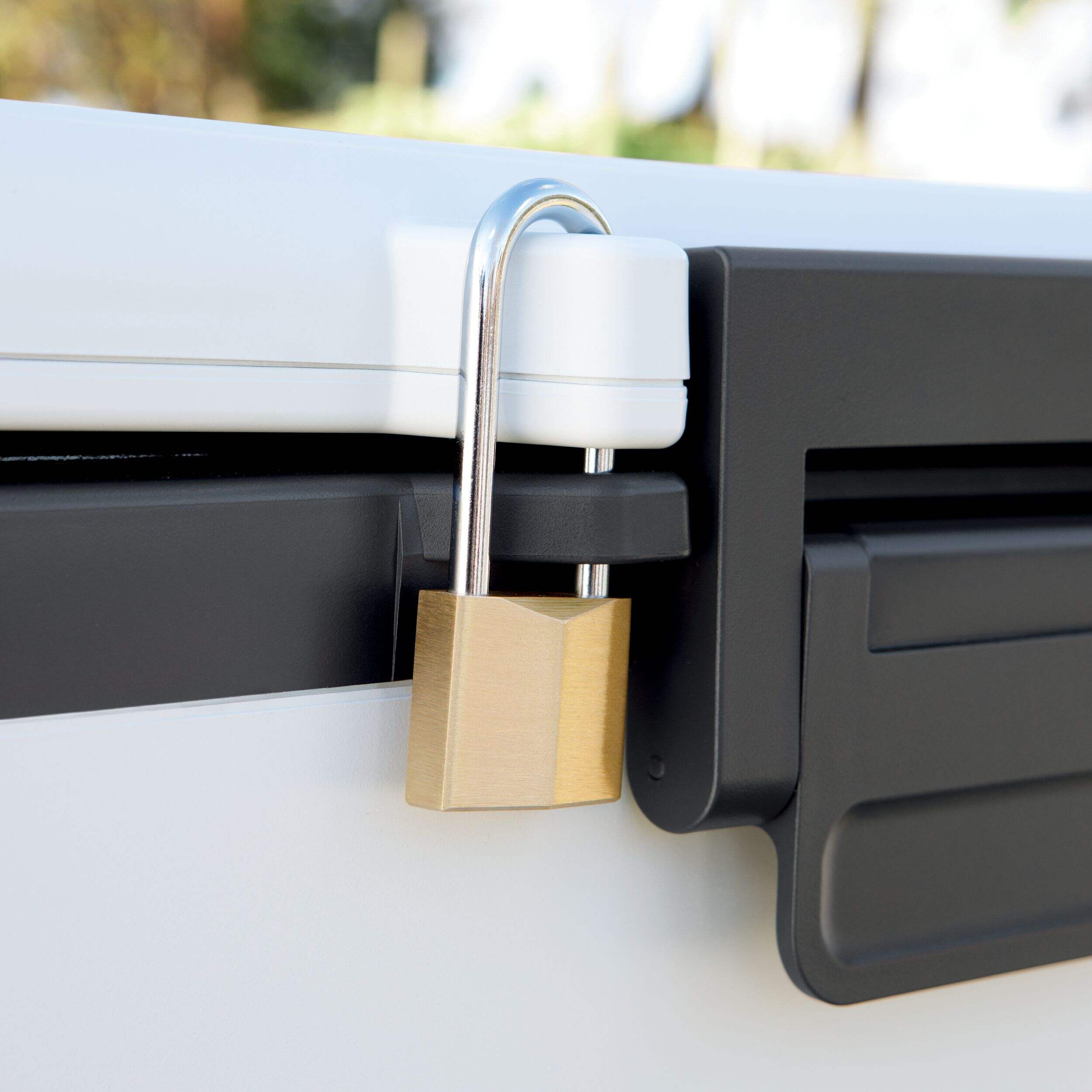 Lockable lid secures your supplies