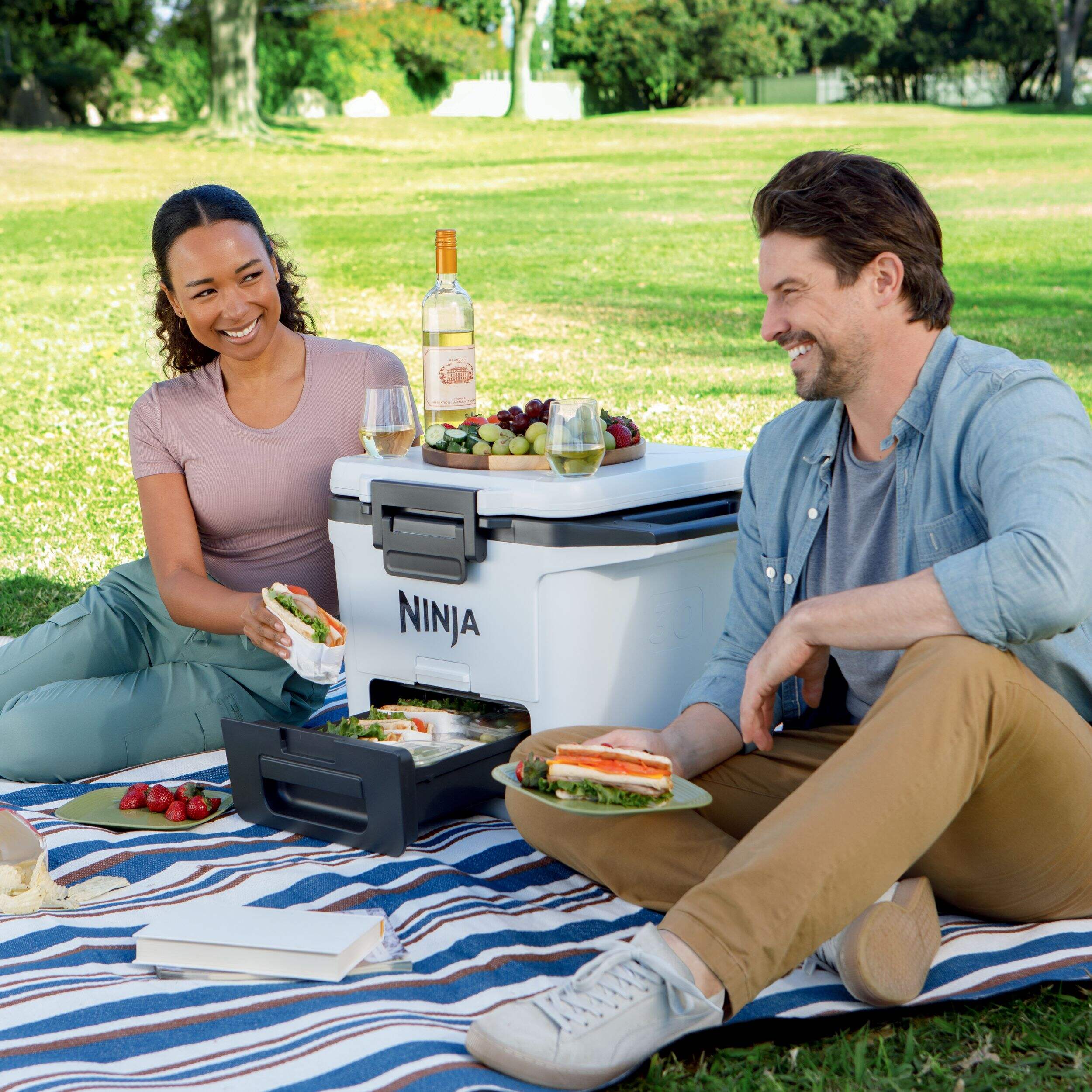 Chill out in style with the Ninja FrostVault™ Hard Travel Cooler. This premium chest cooler is perfect for weekend adventures and backyard bashes, keeping your food and drinks perfectly chilled for up to five days. Its convenient DryChill™ drawer keeps essentials dry and easily accessible, while the EverFrost™ insulation delivers superior ice retention. With its durable, moulded construction and sturdy StrongHold™ handles, this cooler is built to last.