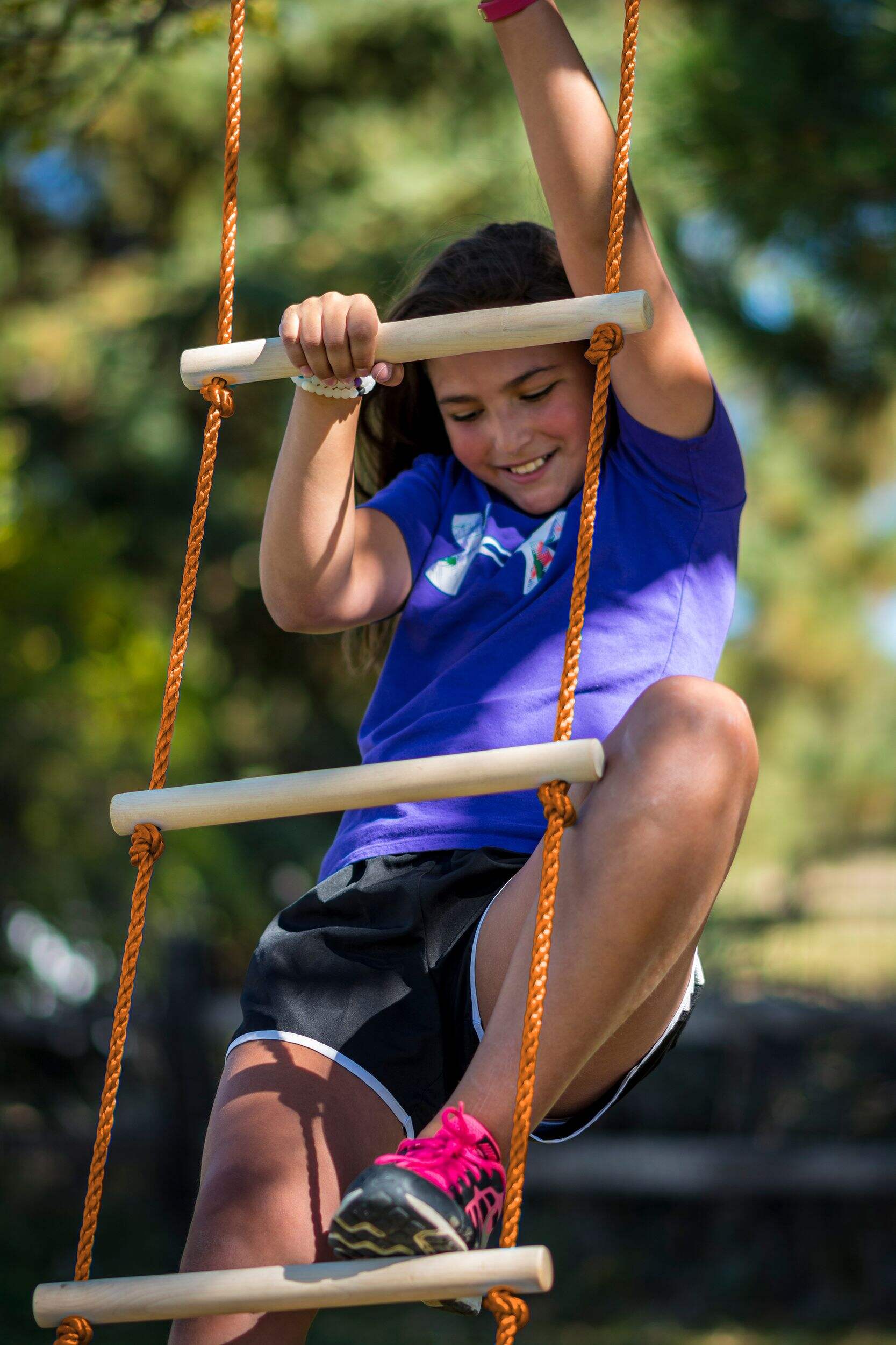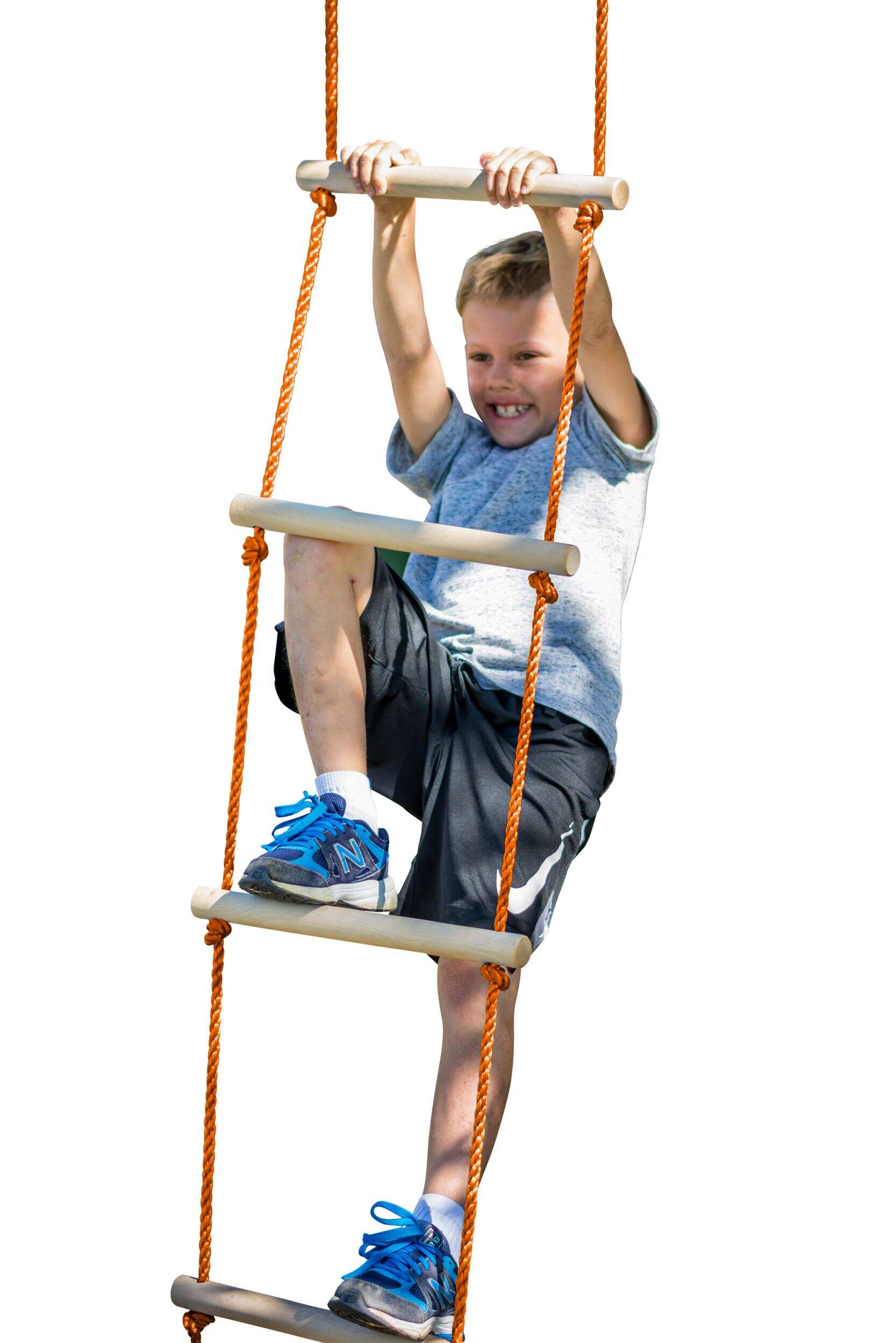 The Ripline Ninja Line Extension Ladder adds 8 feet of height to any existing Ninja Line course, helping build coordination, balance and strength for kids ages 5 and up. Made from high performance polyethylene that's durable enough for little ninjas, this rope ladder lets kids climb, hang and swing to their hearts' content, all while developing motor skills. Whether used on its own or as part of an obstacle course, this ladder provides active outdoor - or indoor - fun that helps tire out even the bounciest of kids.