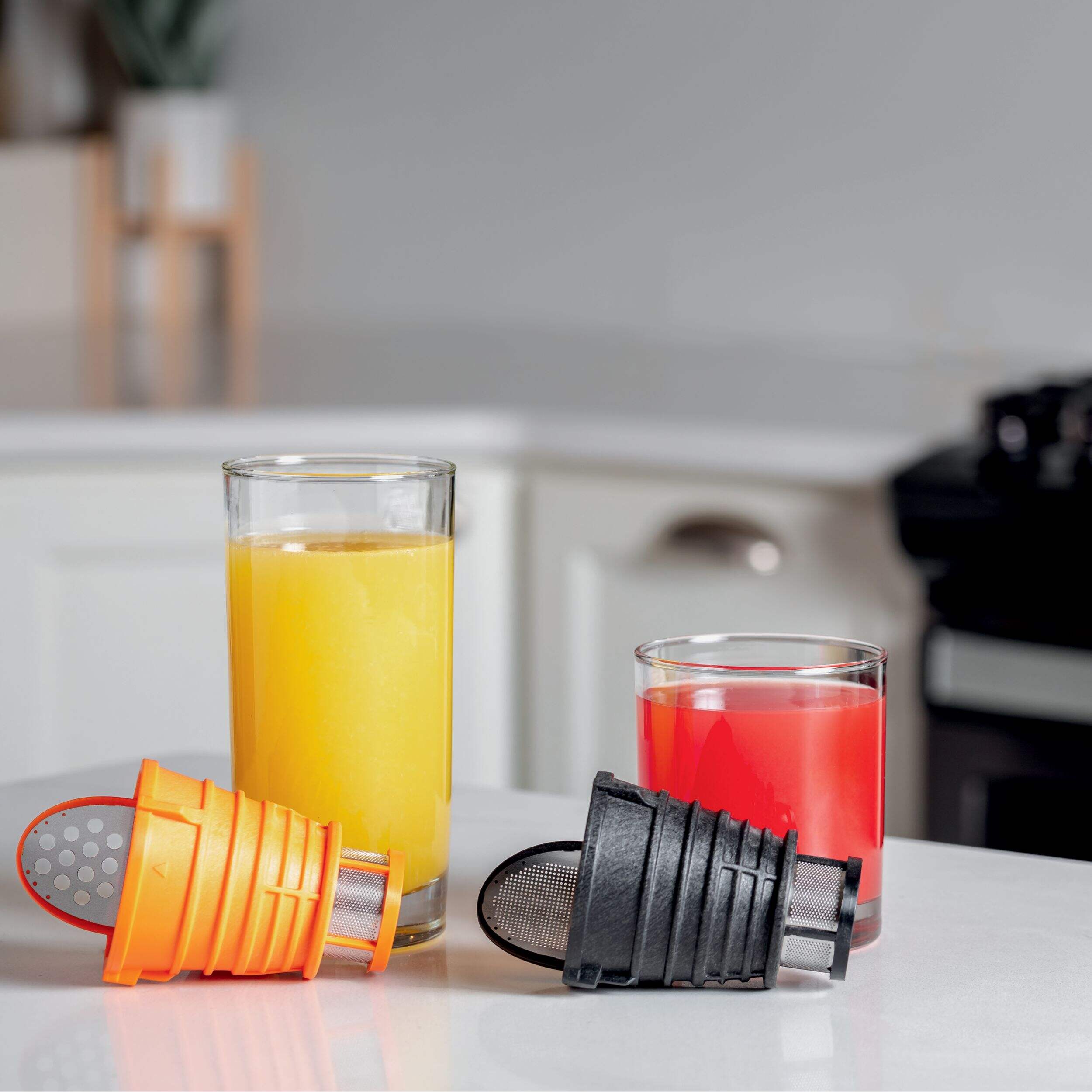 Total Pulp Control allows for customized juice with two interchangeable pulp filters: Less Pulp and Lots of Pulp