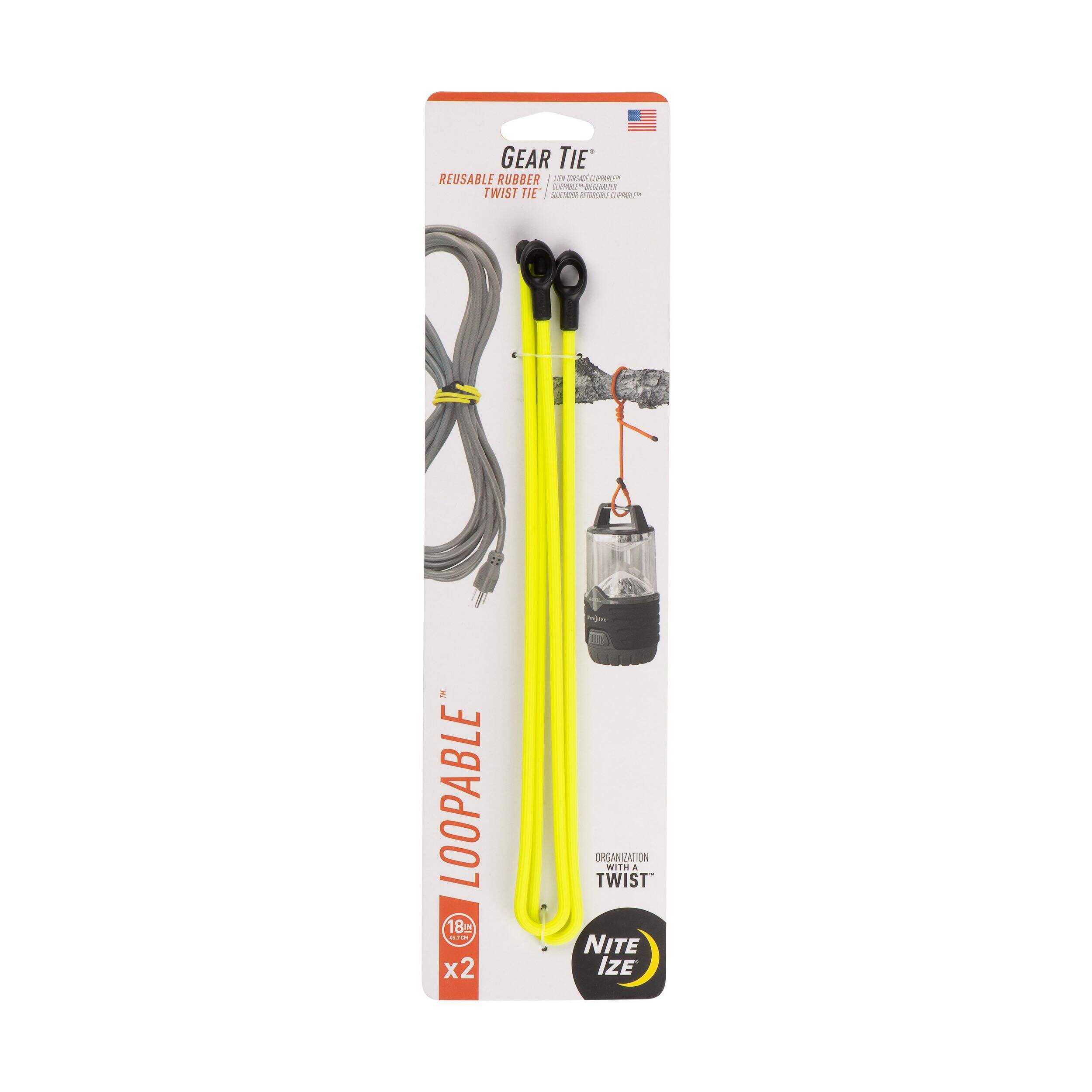 By combining a strong bendable wire interior and durable grippy rubber exterior, the Gear Tie Loopable is perfect for organizing, cinching, and securing almost anything. The added feature of an integrated loop on one end allows you to thread the other end through it and pull to cinch and organize nearly anything, then twist the other end around a handle or anchor point. You can also use the loop to hang it from a small hook or tie a line through the hole for quick connections. Use the 12” to grip, wrap, and secure most small to medium sized items like power cords, tools, and camping equipment, the 18” for bundling yoga mats and hanging bird feeders, and the 24” for large items like hoses, tarps, and outdoor gear. Designed to last, these Gear Ties make organization a cinch.