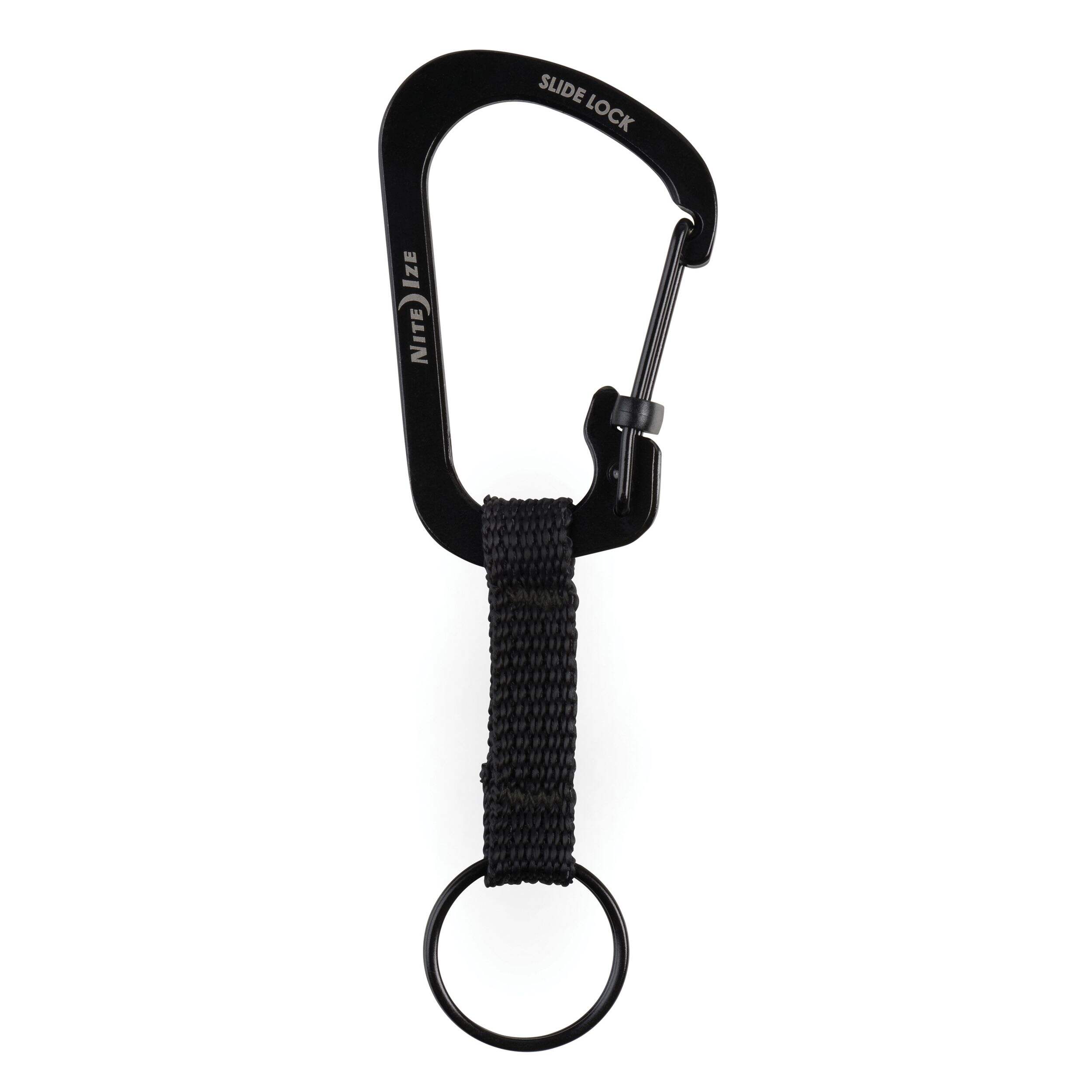 This key holding solution pairs our secure solid aluminum #3 SlideLock Carabiner with a durable key ring and joins them with a strong nylon webbing strap. This combination creates a great way to keep keys connected, yet separate. The carabiner can be clipped and locked to anything like a belt loop, backpack or water bottle, while the key ring hangs freely from the webbing strap.