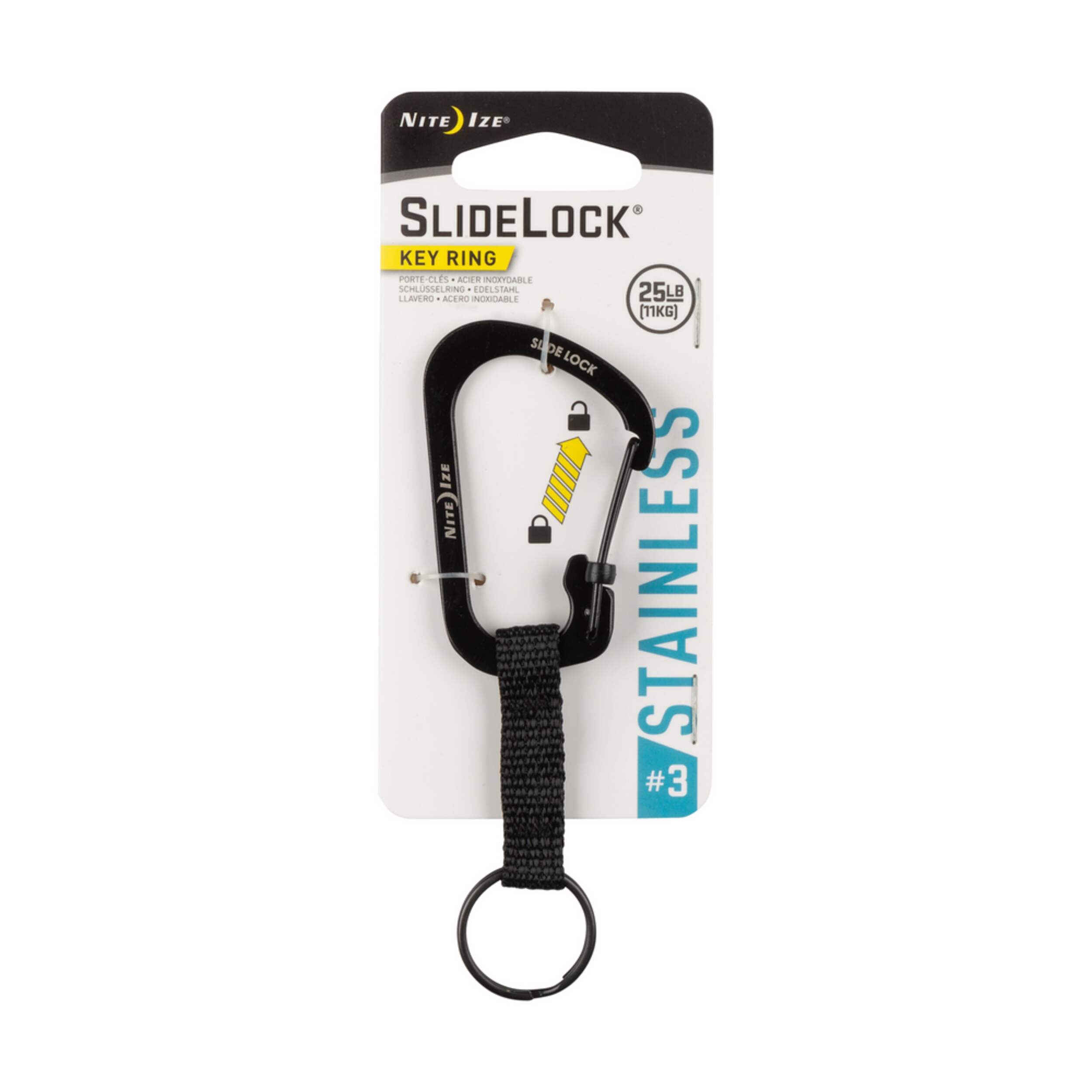 SlideLock® Key Ring is durable stainless steel locking utility carabiner and key ring combination