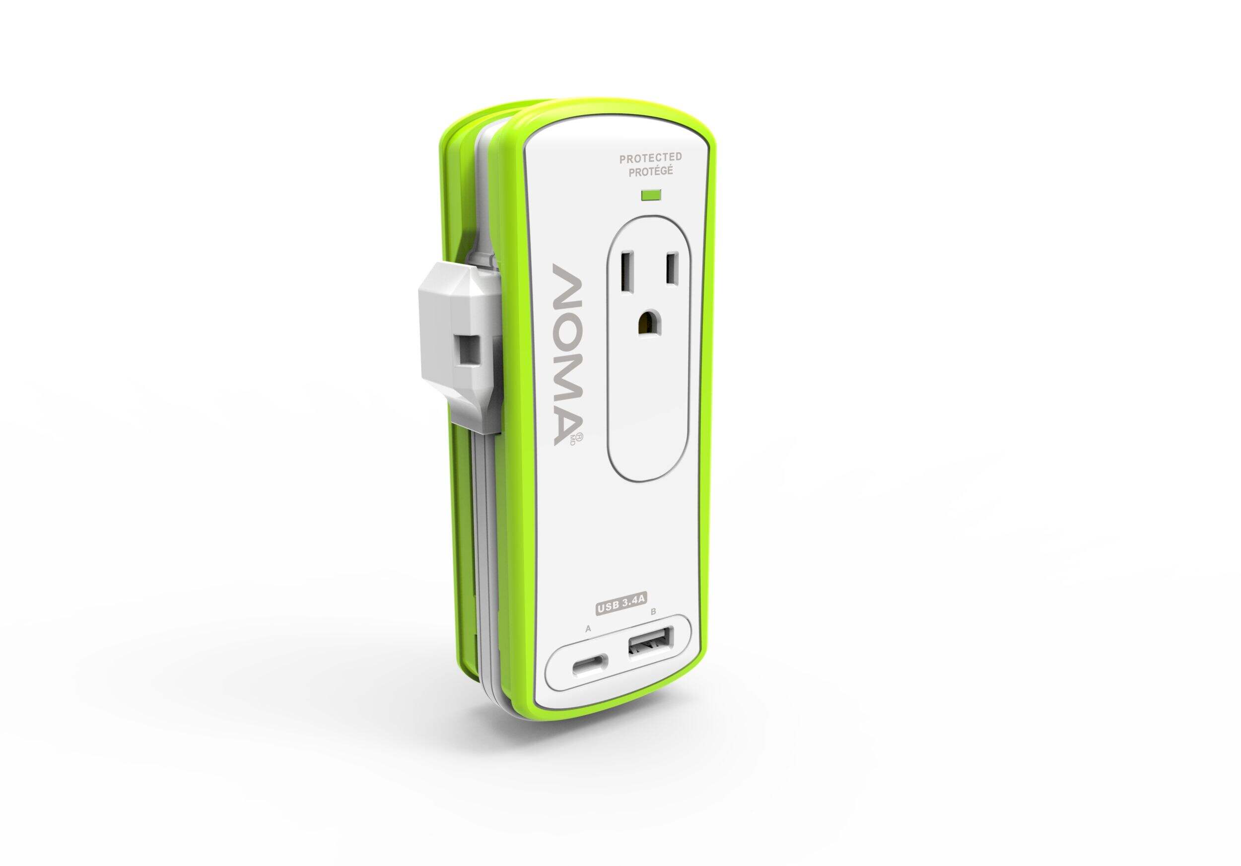 The NOMA 2-Outlet USB-A/USB-C Portable Travel Outlet is a compact and convenient solution for all your on-the-go charging needs. Designed specifically for travellers, this portable power outlet ensures you can power up your devices anywhere. With two AC outlets, one USB-A port, and one USB-C port, it allows you to connect up to four devices simultaneously. The innovative wraparound, flat power cord makes storage a breeze, keeping everything neat and tidy.