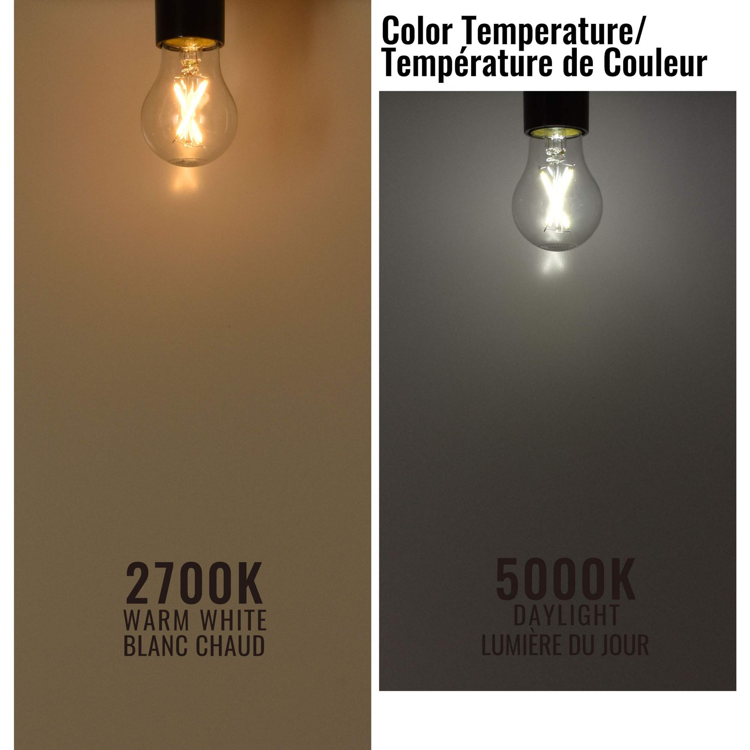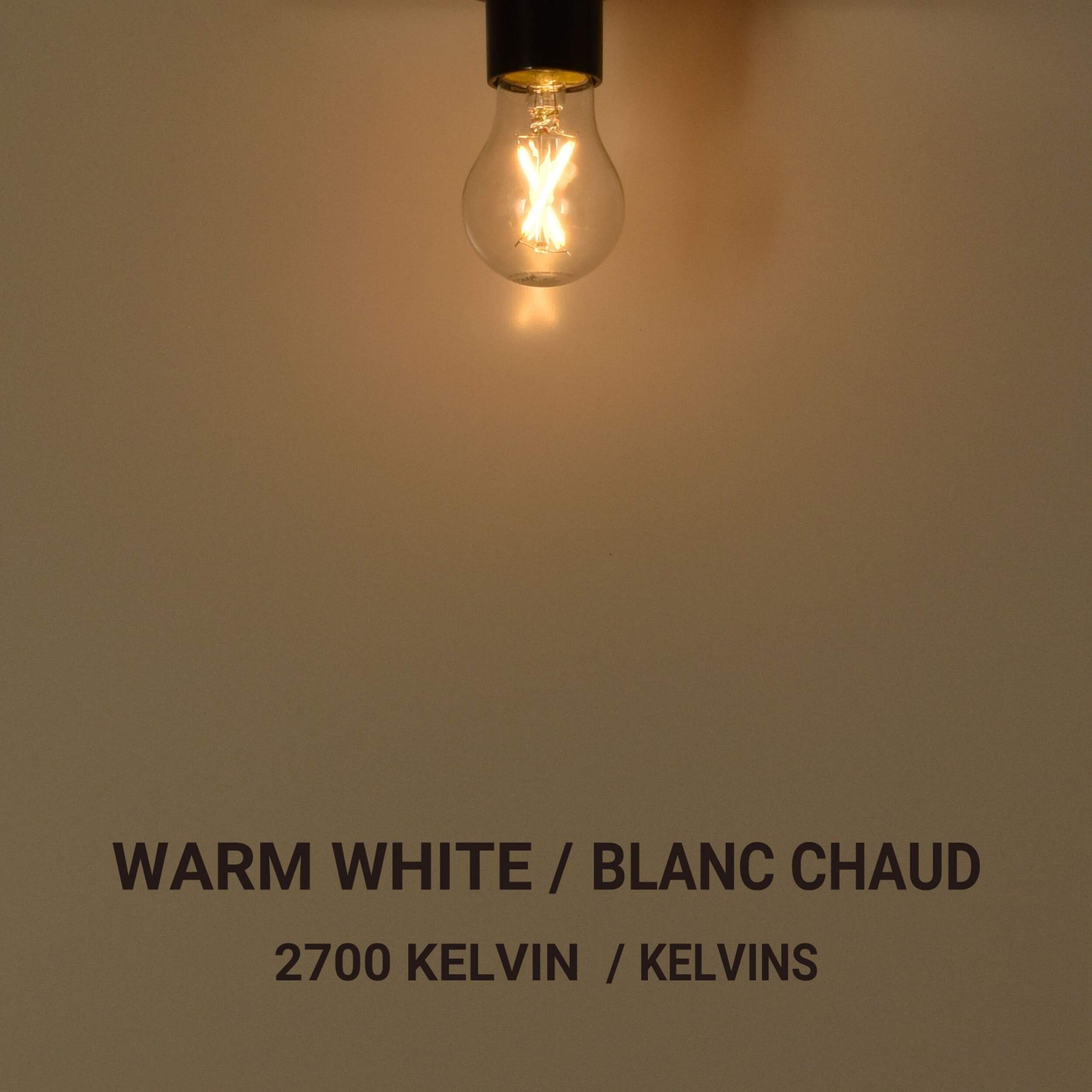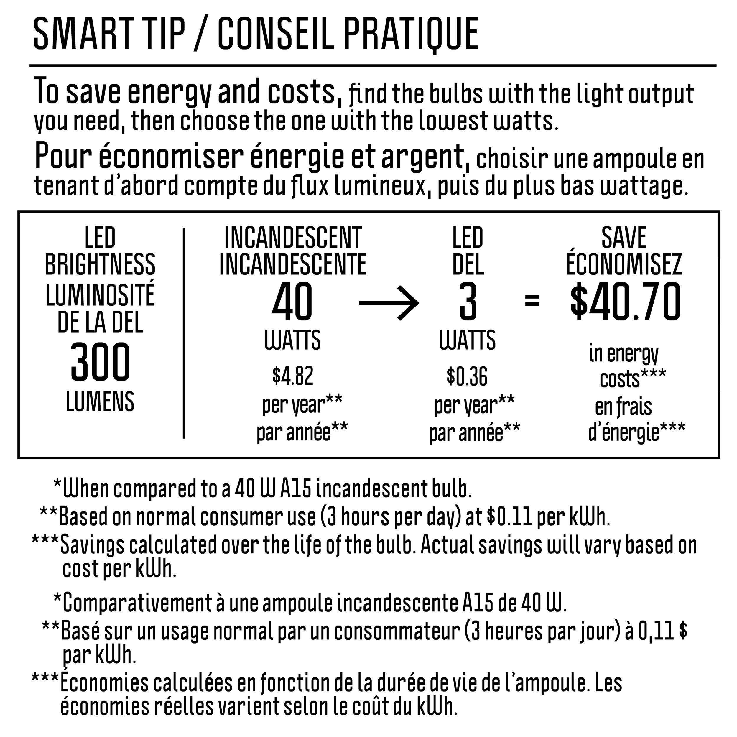 Enjoy instant brightness with the NOMA LED A15 40W E26 Base Soft White Bulb. Ideal for ceiling fans and lanterns, the LED bulb is non-dimmable with a clear finish and comes on at full brightness. This soft white LED light has a colour temperature of 2700K and an E26 medium base. The E26 LED bulbs in this two-pack are mercury free and emit little heat. They have outputs of 300 lumens and impressive lifespans of 10,000 hours.