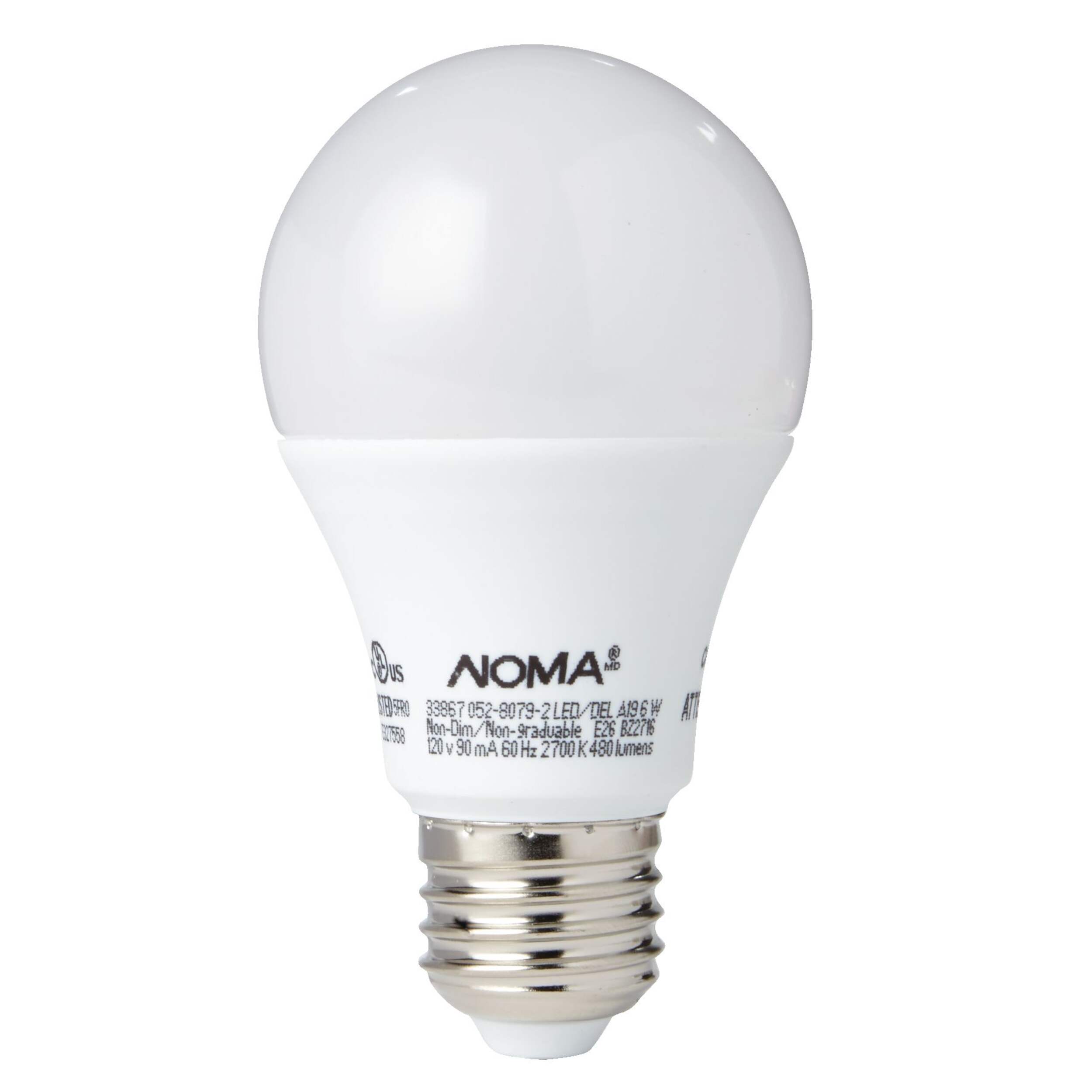 Using 86% less energy than alternatives, the NOMA A19 40W LED Light Bulbs 6-Pack provides 450 lumens of light and an extra-long life span of up to 10,000 hours while only using 5.5-watts of energy. The warm white light provides a natural glow suitable for general household use. This pack includes four non-dimmable LED light bulbs with an A19 shape and E26 base, making them versatile enough for use throughout your home.