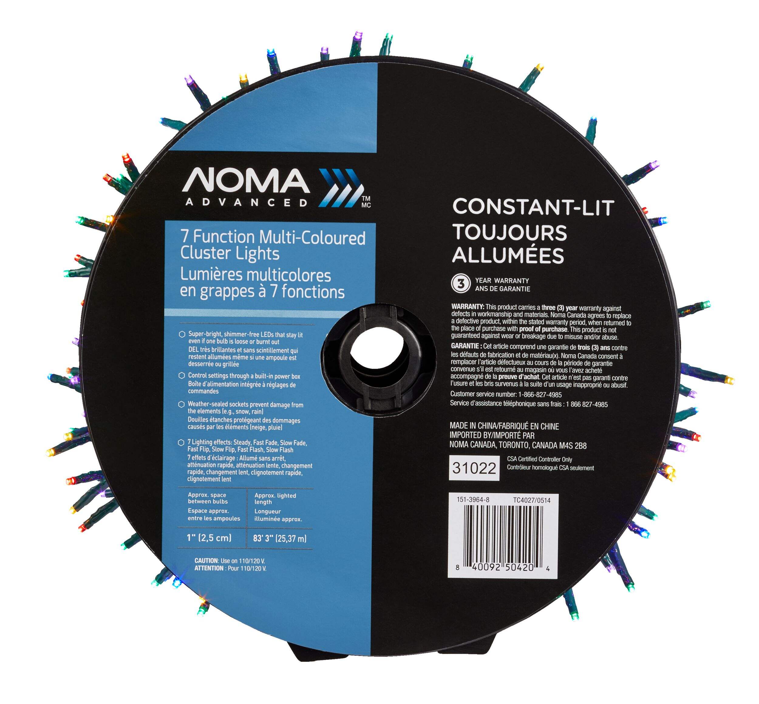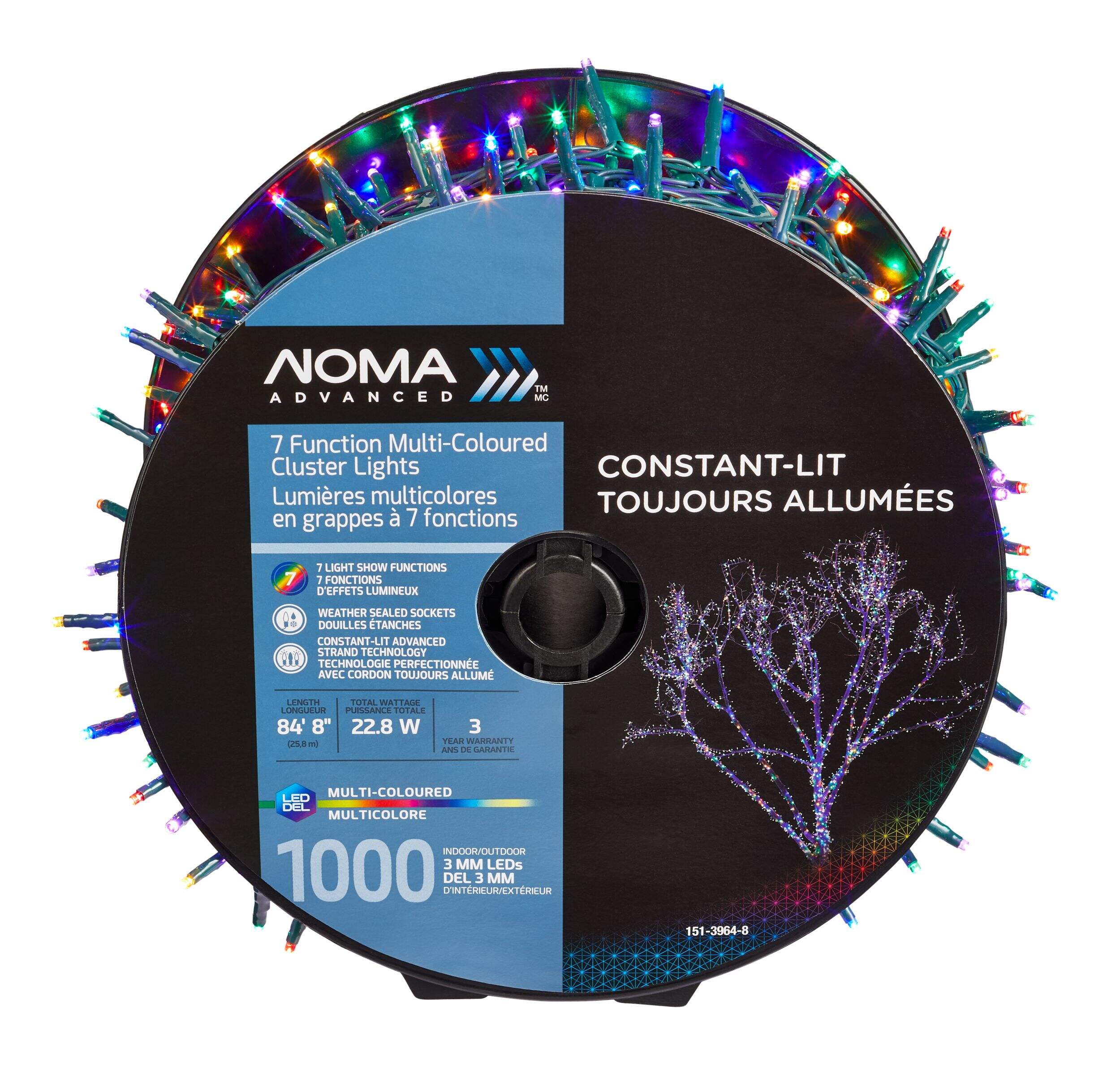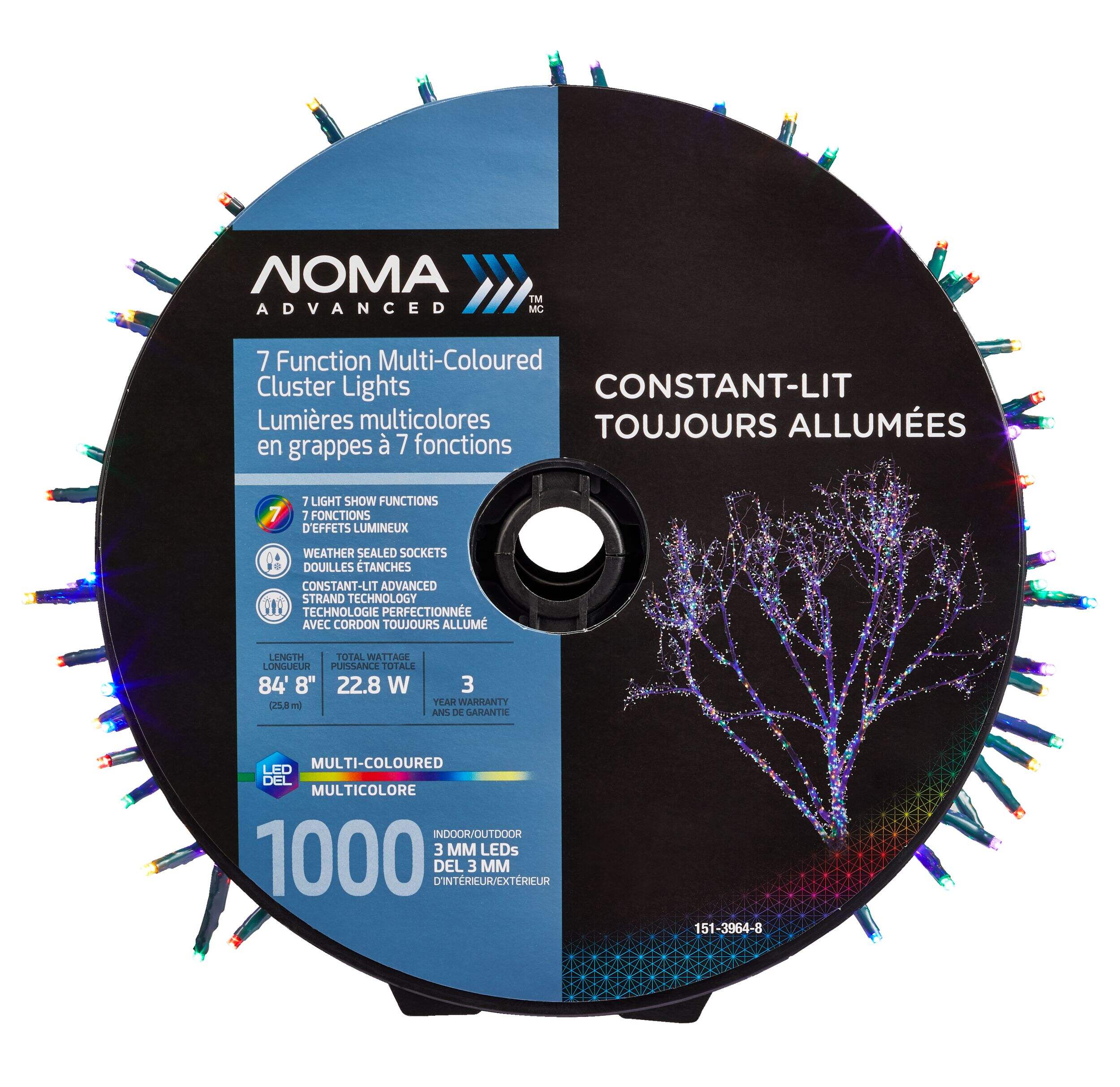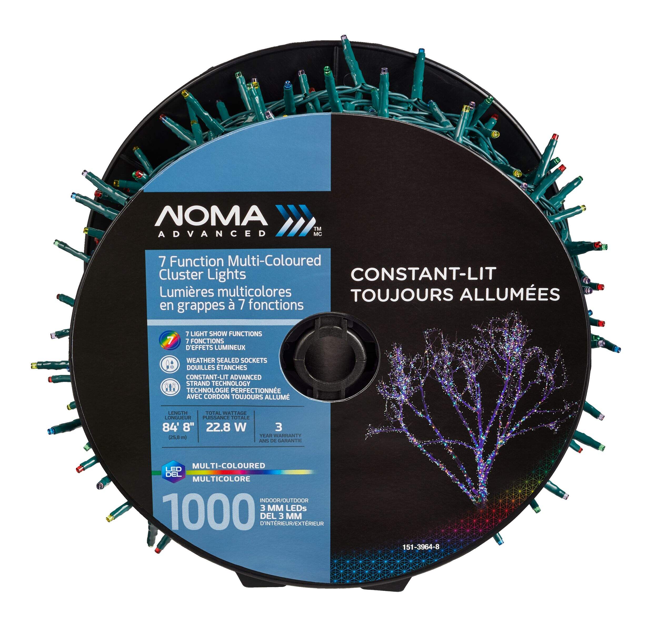 Create your own holiday magic with the NOMA Advanced Cluster Lightshow 1000 LED Lights. These multi-coloured outdoor Christmas lights are energy-efficient and feature seven super-bright, shimmer-free light show options to showcase your festive spirit with style. A durable built-in power box keeps these NOMA smart Christmas lights weather sealed, and constant-lit advanced strand technology keeps the show going even when a bulb becomes loose or burns out. A convenient reel system allows for easy access and compact storage of your outdoor Christmas lights in the off season.