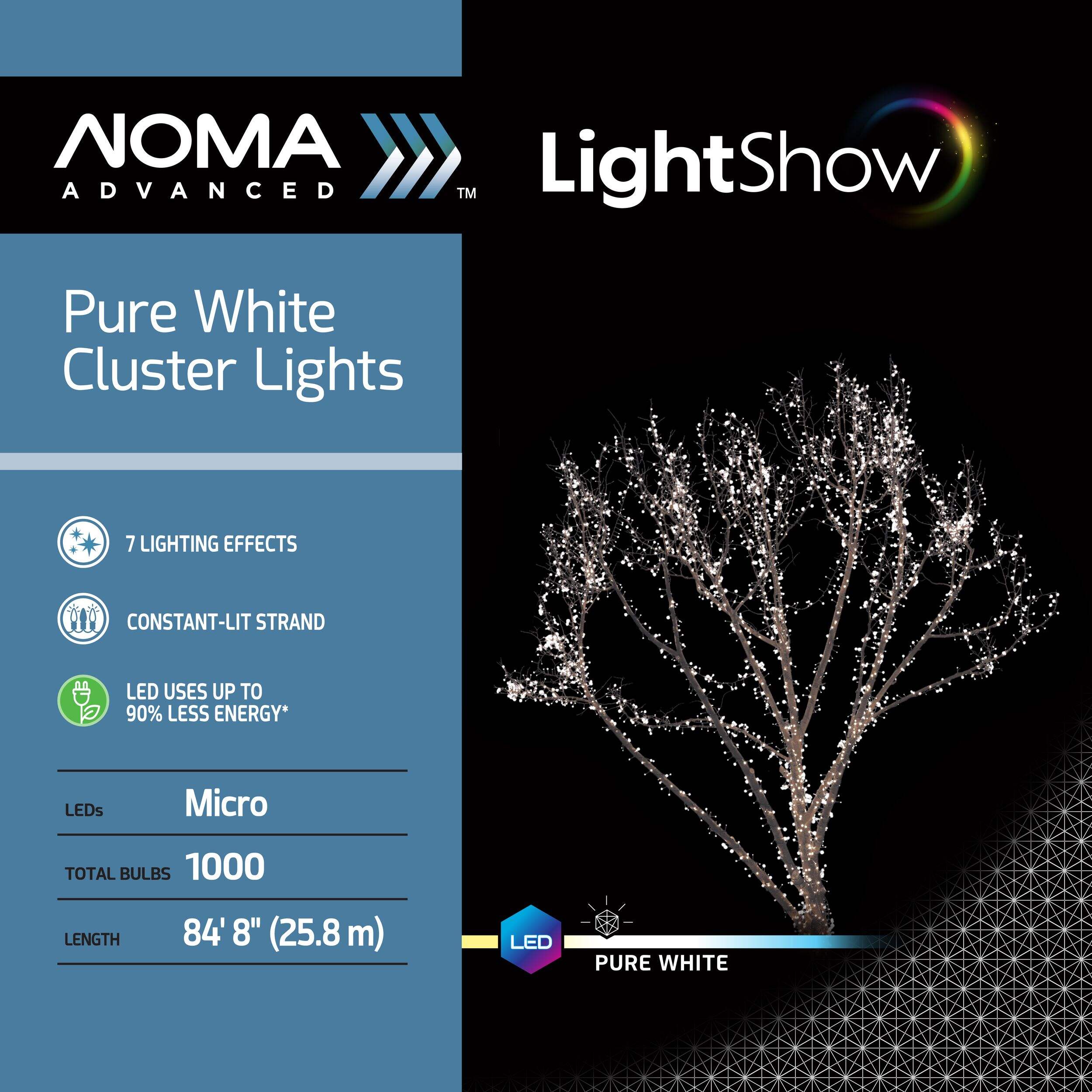 Create your own holiday magic with the NOMA Advanced Constant-Lit Pure White Cluster Lightshow with 1000 LED Lights. These outdoor Christmas LED lights are energy-efficient and feature seven super-bright and shimmer-free light show options. The cluster lights use a convenient reel storage system for easy access. With a built-in power box, these NOMA Christmas lights are weather sealed with constant-lit advanced strand technology so you can keep your outdoor spaces dazzling even when one of the bulbs becomes loose or burns out.
