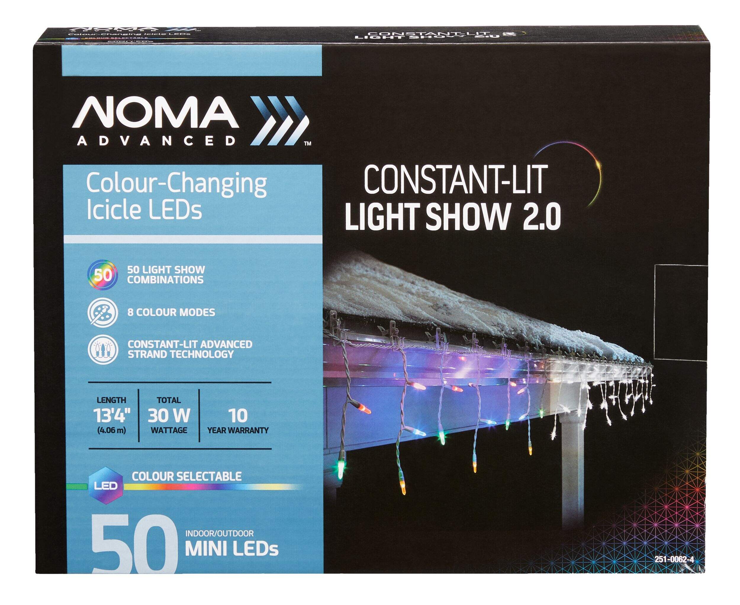The NOMA Advanced Constant-Lit Lightshow Icicle lights have advanced constant-lit technology to keep your home bright throughout the season. These icicle LED lights stay lit even if one bulb burns out or comes loose, while weather-sealed sockets stop moisture from forming inside. With many different light show combinations to choose from, including twinkling, firefly, and alternating colours, these icicle lights make it easy to customize your holiday light shows to your taste.