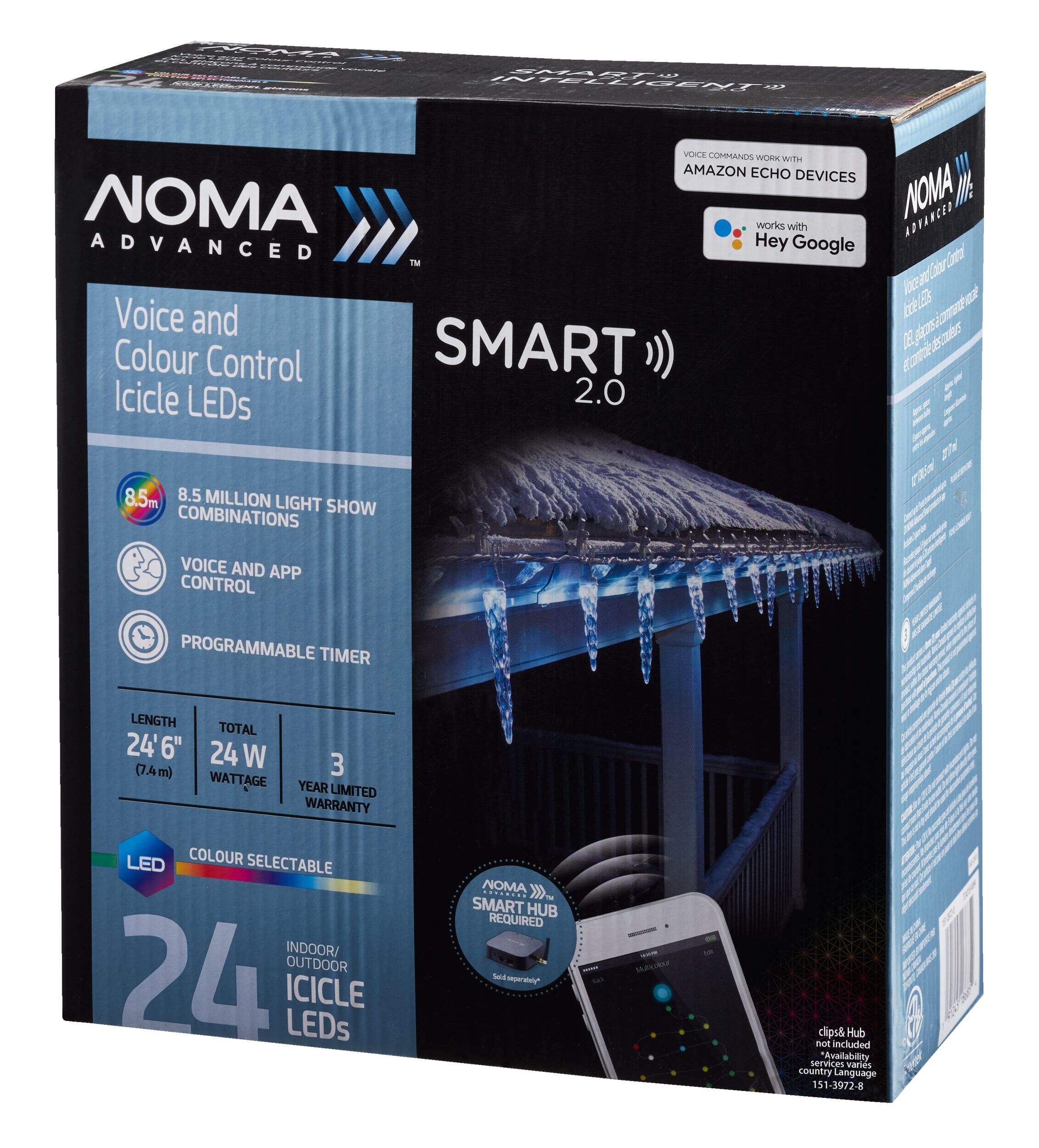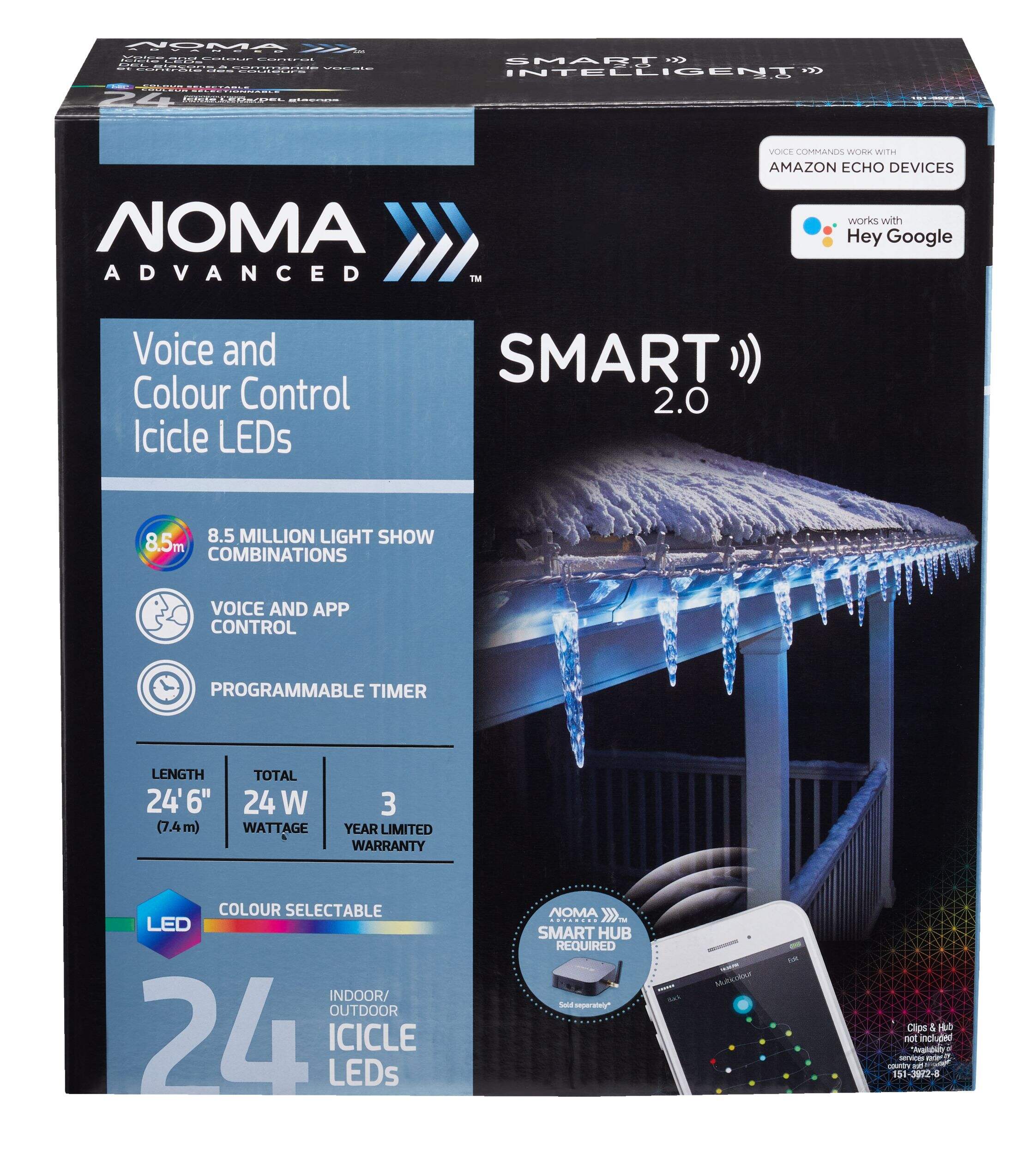 Create a stunning, custom light show this holiday season with the Noma Advanced Smart Voice Command Icicle Lights. These energy-efficient LED icicle lights add a beautiful glow to your home, and a digital library of colours and light shows allows you to easily personalize your display. With compatible functionality to connect to WIFI and digital home assistance applications with voice control, these innovative lights are sure to become a seasonal favourite.