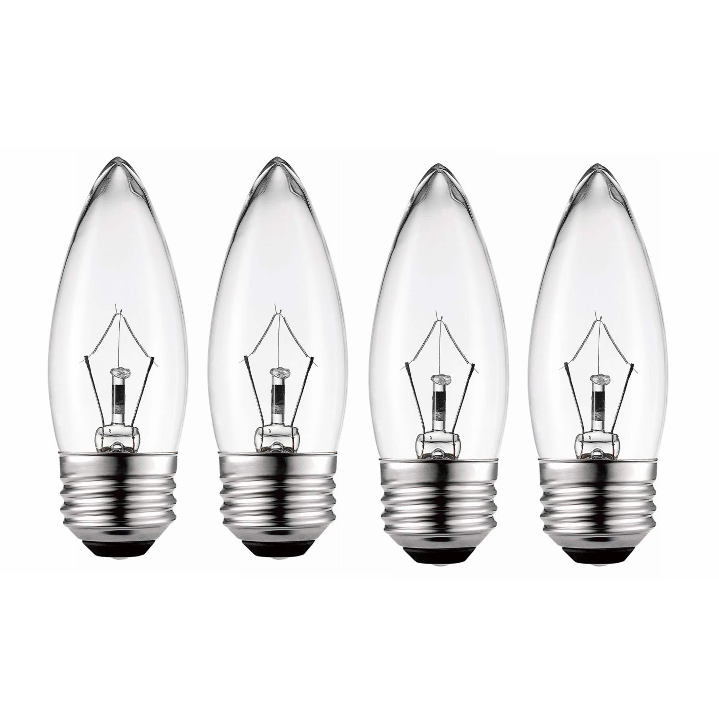 Give your lamps and lighting fixtures a decorative finishing touch with this handy 4-pack of NOMA B10 40W Incandescent Bulbs. Featuring a clear glass construction and a chic, candle-like shape, these B10 incandescent bulbs add attractive lighting to the table, floor, or ceiling lamps in your home. The warm white light imbues any room with a warm glow while the dimmable design allows you to get the exact amount of light you need.