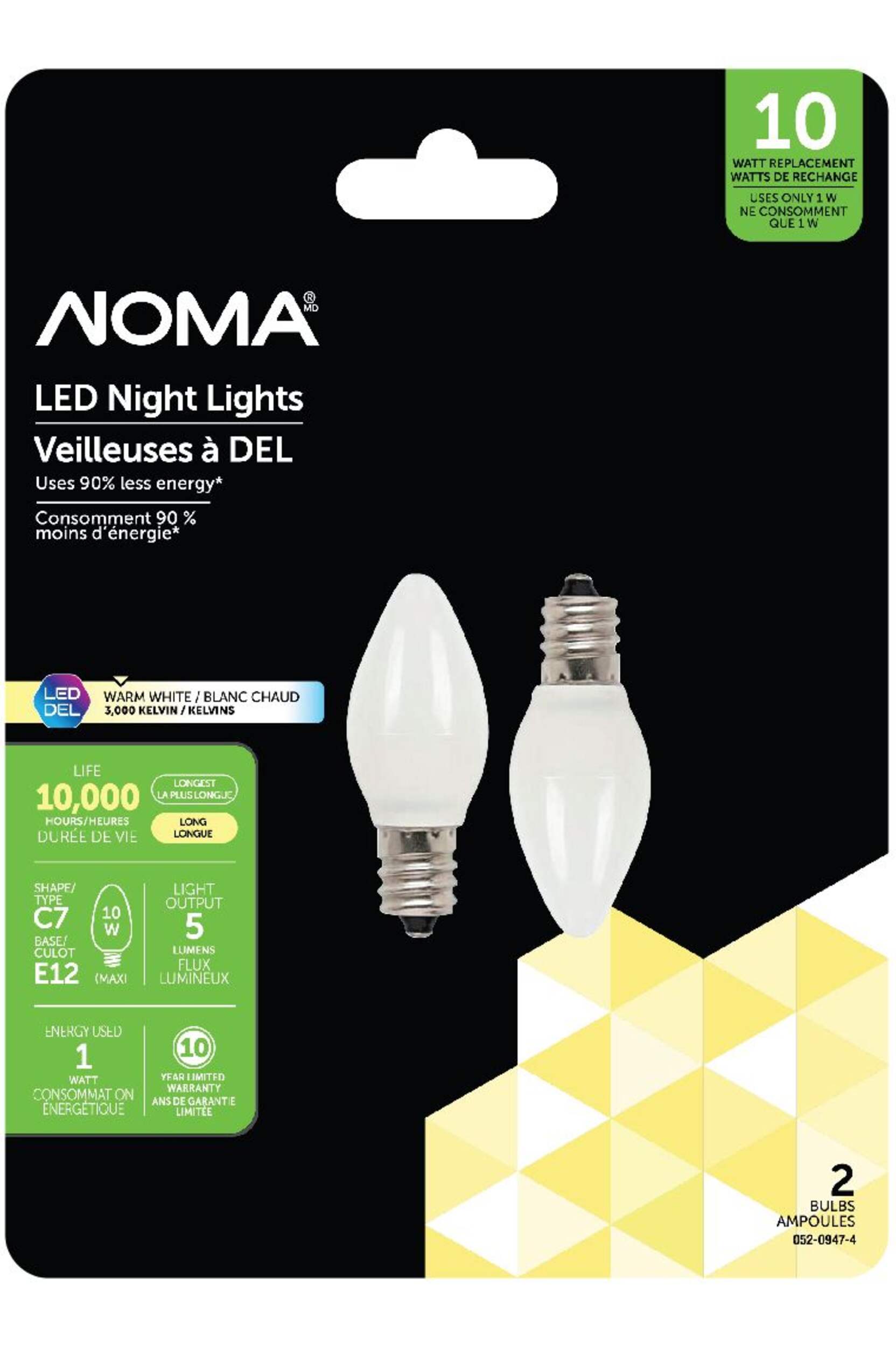 Keep your night light or string lights lit up with these NOMA C7 4W E12 Base Non-Dimmable White LED Bulbs that come in a handy 2-pack for easy replacement as needed. Practical and versatile, these C7 LED light bulbs use 90% less energy than incandescents to help you save on energy costs. The warm white light on these 10W LED light bulbs helps promote a comfortable, cozy atmosphere your family and guests will love.