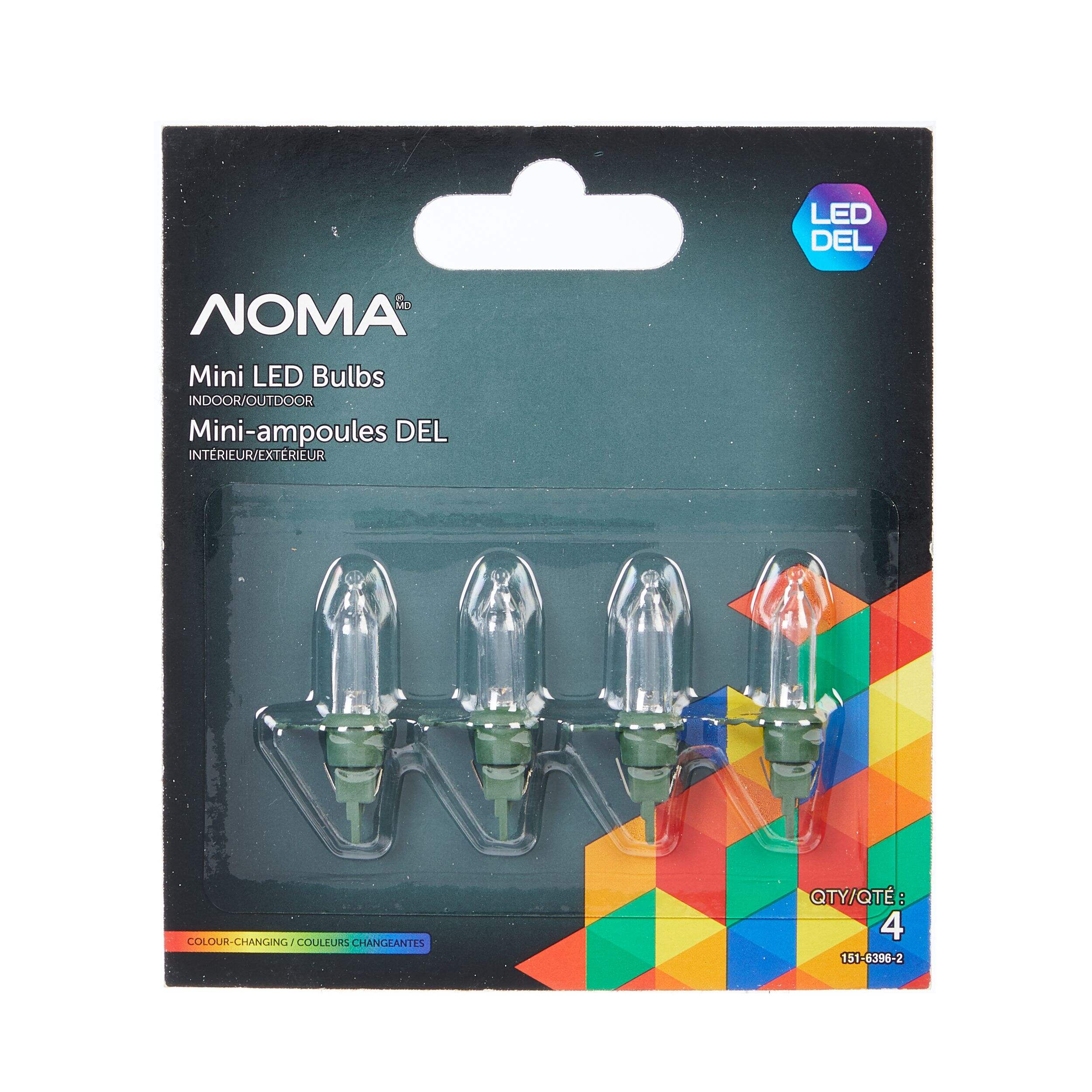 Light up your Christmas holidays with the NOMA Colour-Changing Mini Christmas Lights Replacement Bulbs, 3.1-3.3V, 4 LED Lights. These easy-to-install mini bulbs feature a power range of 3.1 - 3.3V. Driveway, backyard, or anywhere inside the house - these mini lights are suitable for indoor and outdoor use. These bulbs are a suitable replacement for your broken Christmas tree bulbs. Thanks to the energy-efficient bulbs, you don't have to worry about power usage. The LED mini bulbs are made to last longer and are way more reliable. To replace the bulbs, simply lift up to unsnap the locking tab and pull the base of the old bulb straight out of its socket. Insert a new bulb with the base back into the socket and you are done.