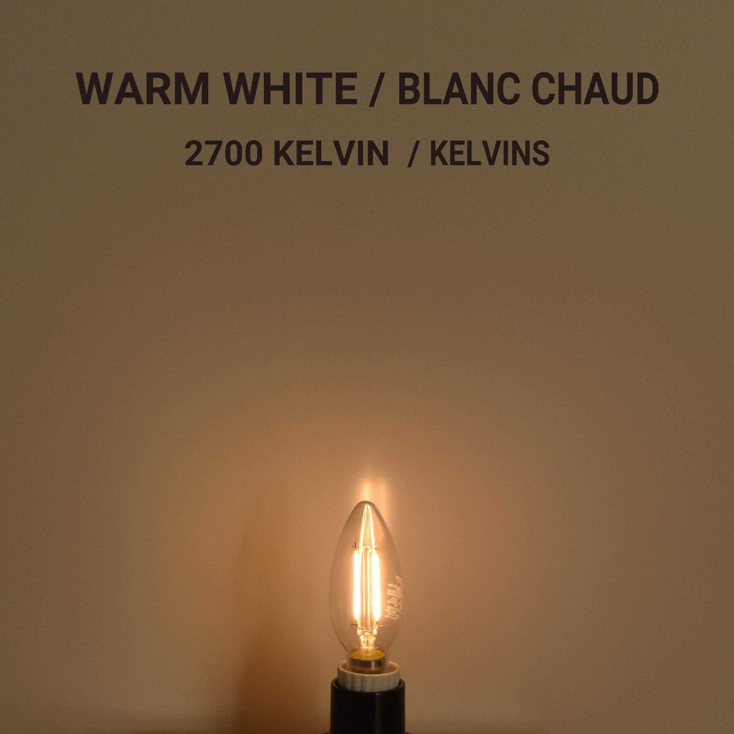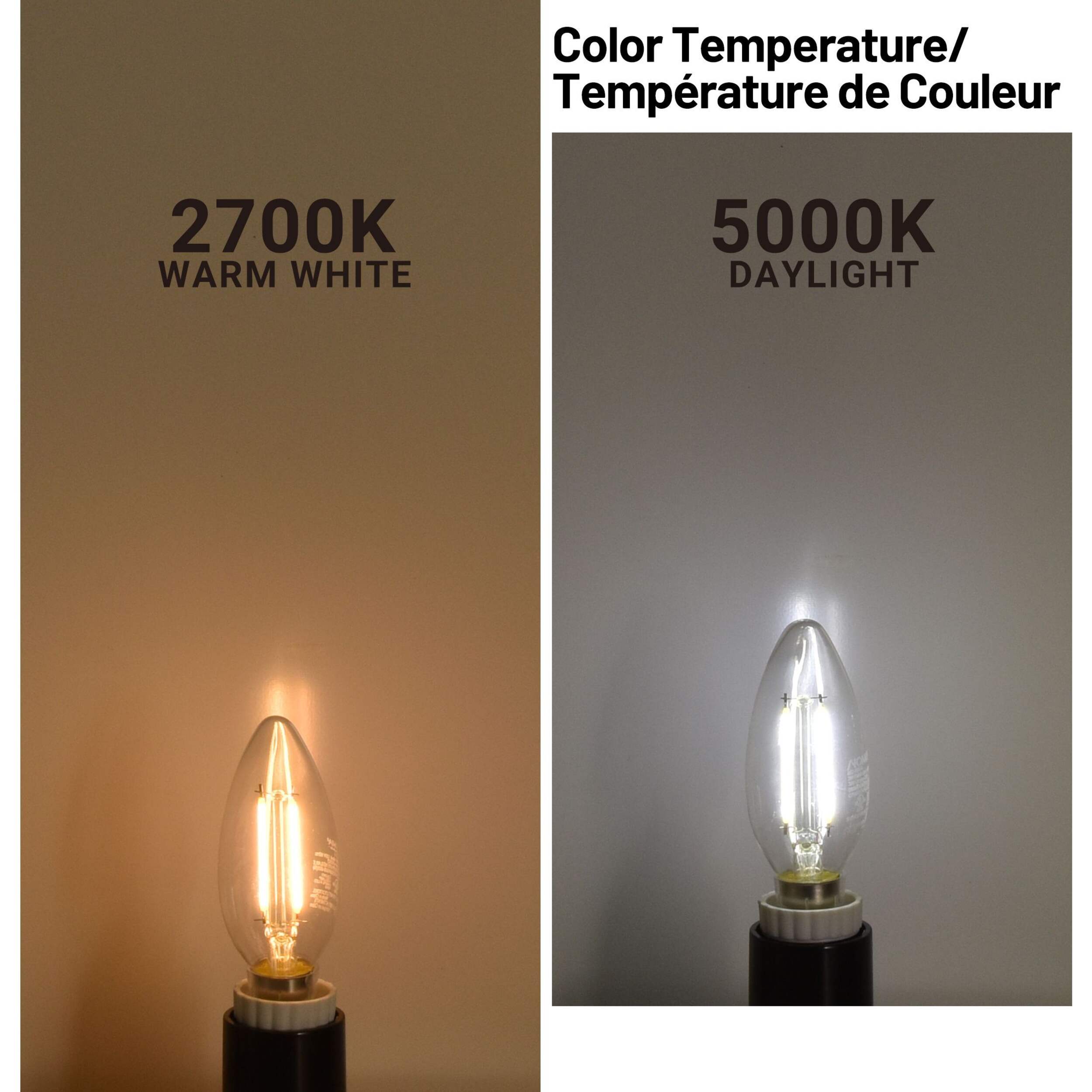 Add ambiance to any room with the NOMA Designer Series LED B10 40W Dimmable Filament Light Bulb. This fully dimmable LED light bulb allows you to enjoy warm white lighting in a chandelier or lantern and is an energy-efficient replacement for standard incandescent bulbs. The LED B10 Light Bulb is rated to last up to 10,000 hours, so you can enjoy fewer bulb changes in between replacements.