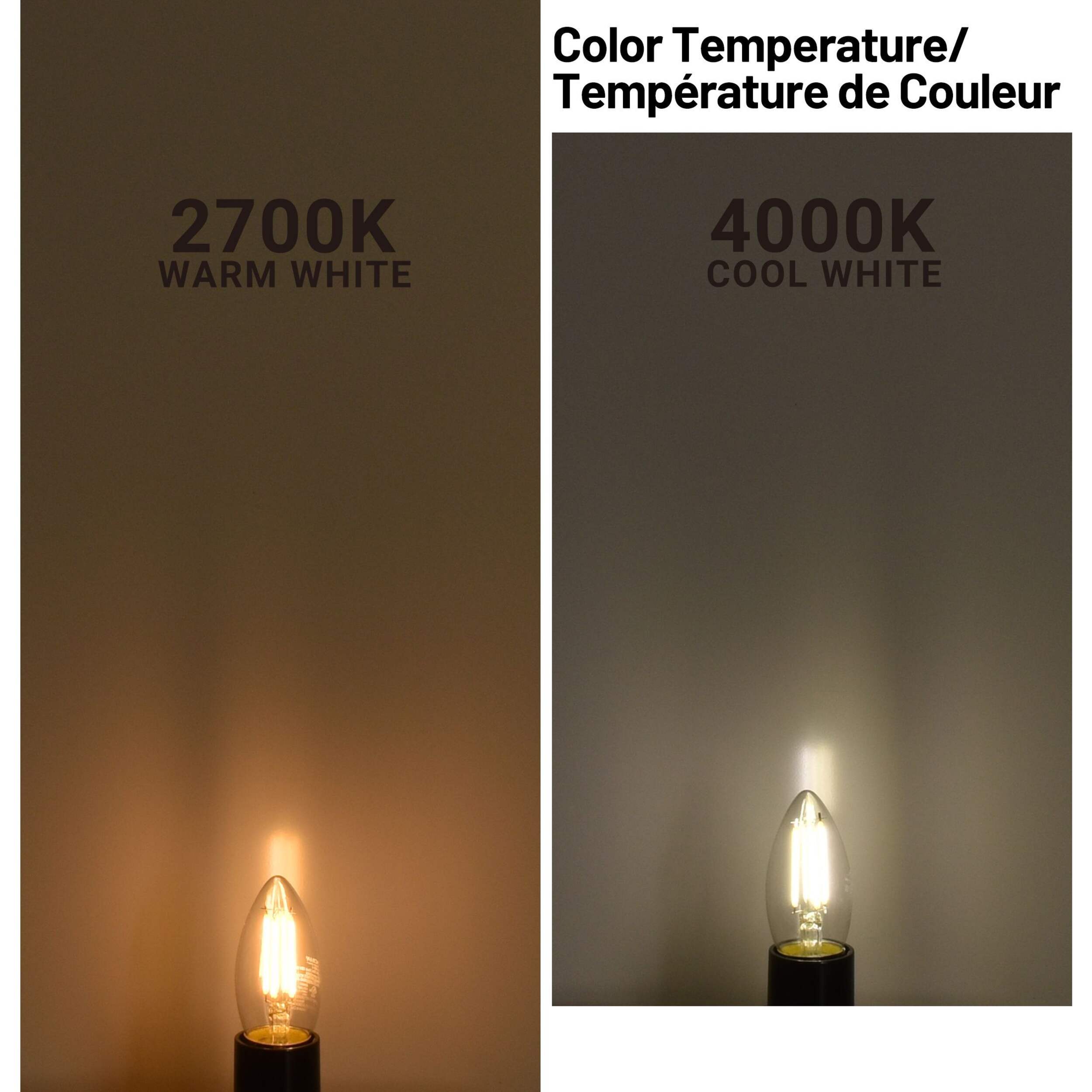 Using less energy than incandescent alternatives, the NOMA Designer Series 60W B10 LED Chandelier Bulbs provide 500 lumens of warm white light. They have lifespans of up to 10,000 hours, so you can go longer before having to replace them. These clear, dimmable, and energy-efficient LED bulbs are suitable for enclosed fixtures and household use. Each 60W LED bulb features a B10 shape and E12 base and uses 4.5-watts of power.