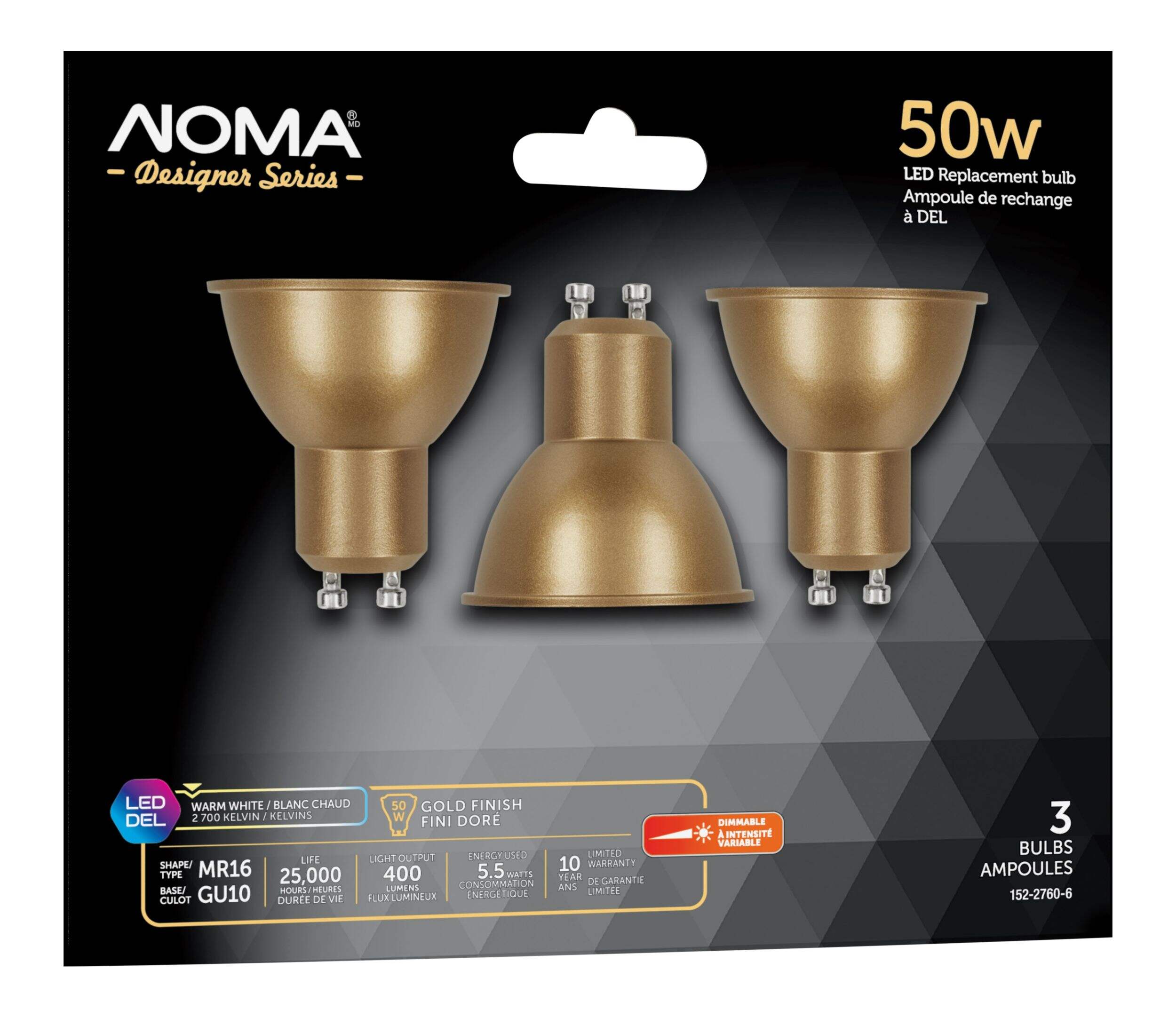 The NOMA Designer Series GU10 Base Dimmable LED Flood Light Bulbs offer a stylish lighting solution with their matte gold base and frosted glass finish. Emitting a warm white light, these dimmable LED bulbs let you adjust brightness levels to suit any setting, providing a cozy, ambient glow. Ideal for enhancing your home’s atmosphere, this pack of three ensures long-lasting, energy-efficient lighting.