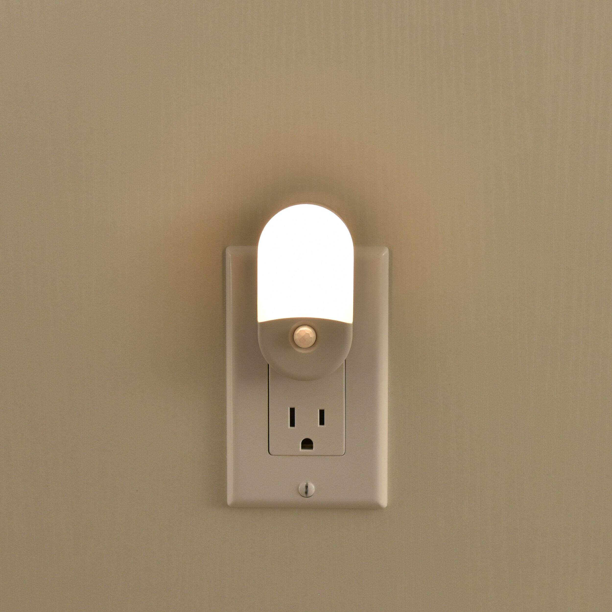 The NOMA Dusk to Dawn Motion Detected LED Night Light in Warm White ensures efficient lighting with its long lifespan and ETL qualification. The LED motion sensor turns on automatically and emits brighter lumens when detecting motion, while the built-in dusk to dawn sensor lights up at dusk and turns off once illuminated again.
