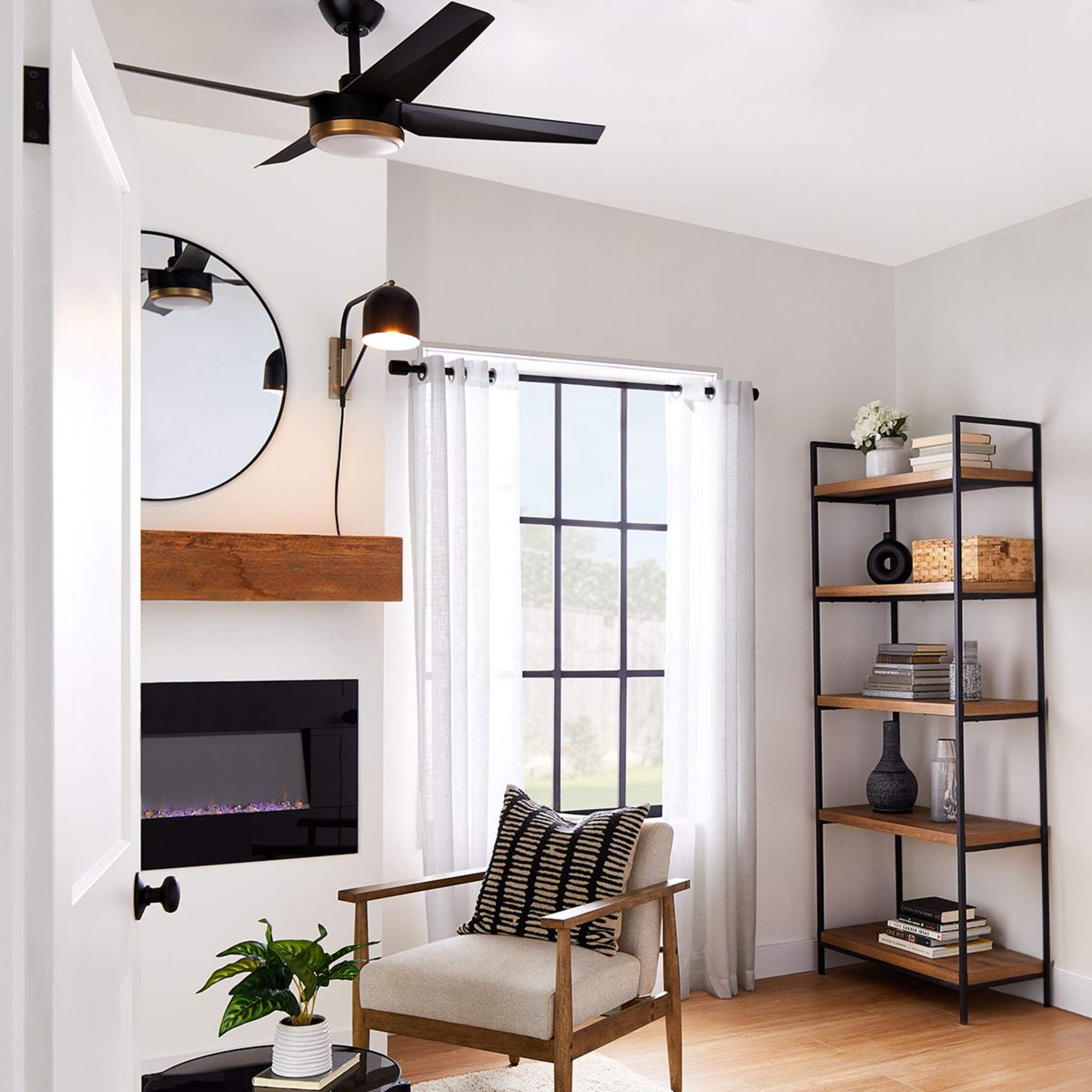 The NOMA Harper 4-Blade 6-Speed Outdoor Ceiling Fan with LED Light Kit and Remote, in Matte Black, is designed for comfort and style in both outdoor and indoor spaces. With a 52-inch blade span and six adjustable speed settings, this fan provides optimal airflow, perfect for patios, porches, and large indoor areas. The integrated LED light kit delivers energy-efficient illumination. The durable matte black finish is weather-resistant, adding a sleek and modern touch to any outdoor decor.