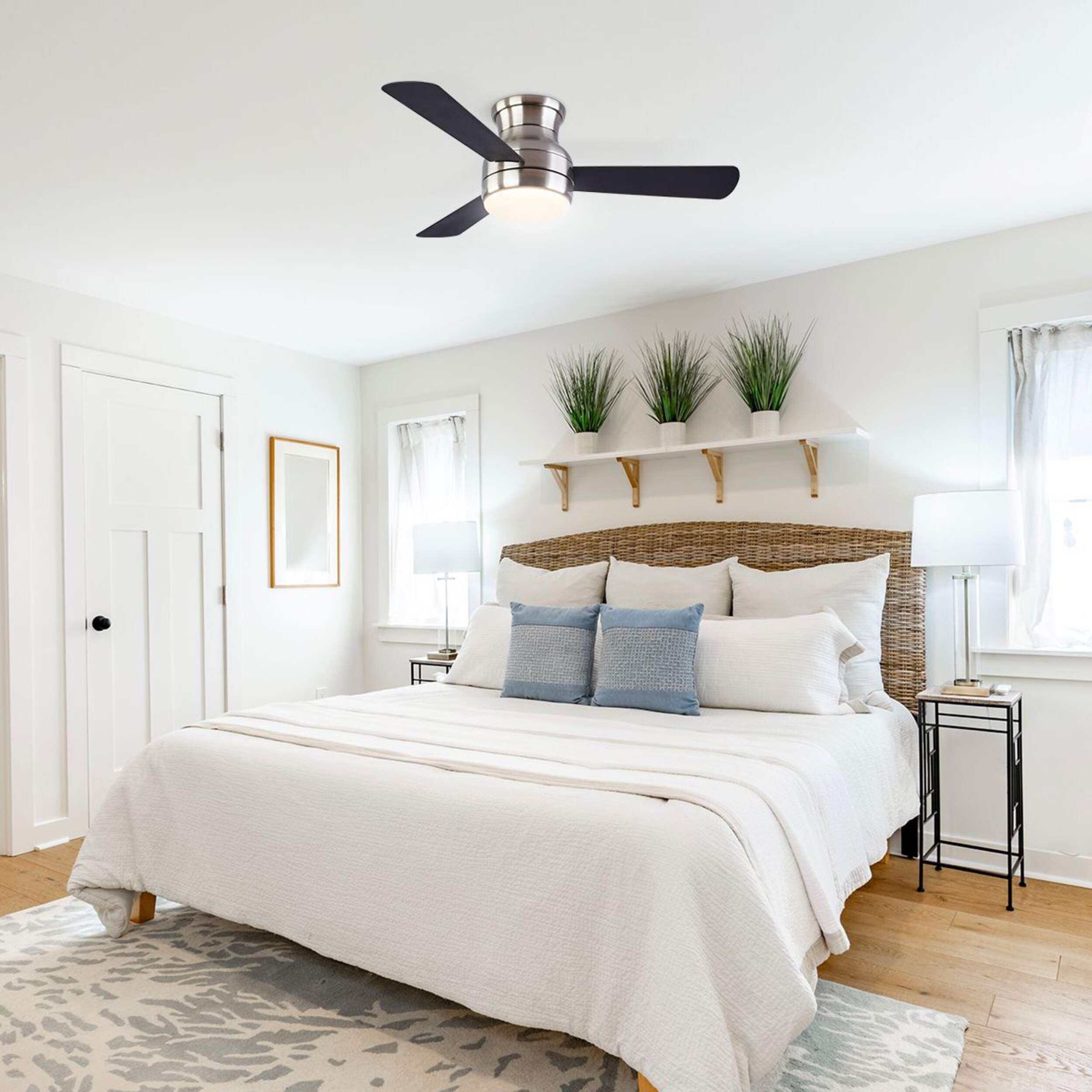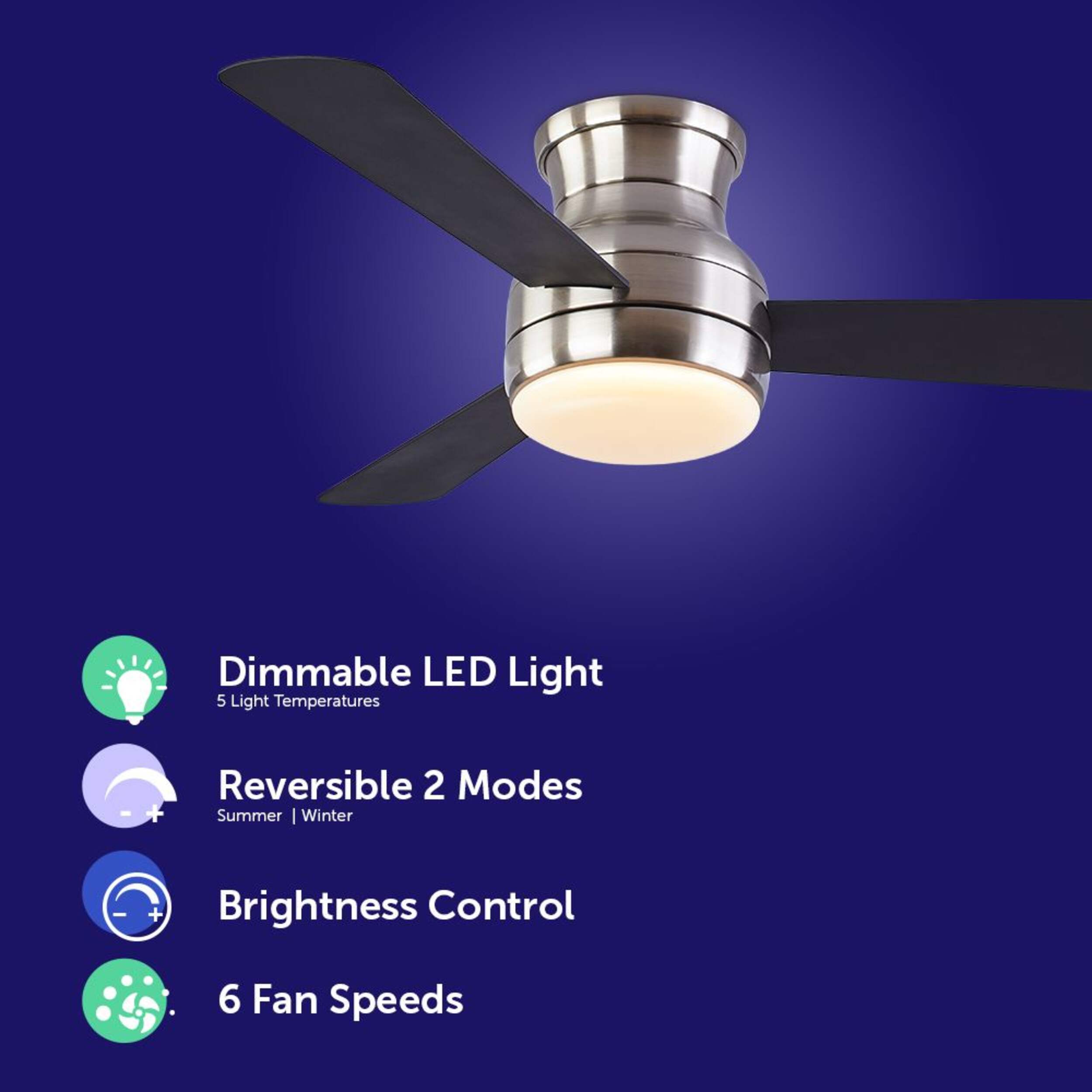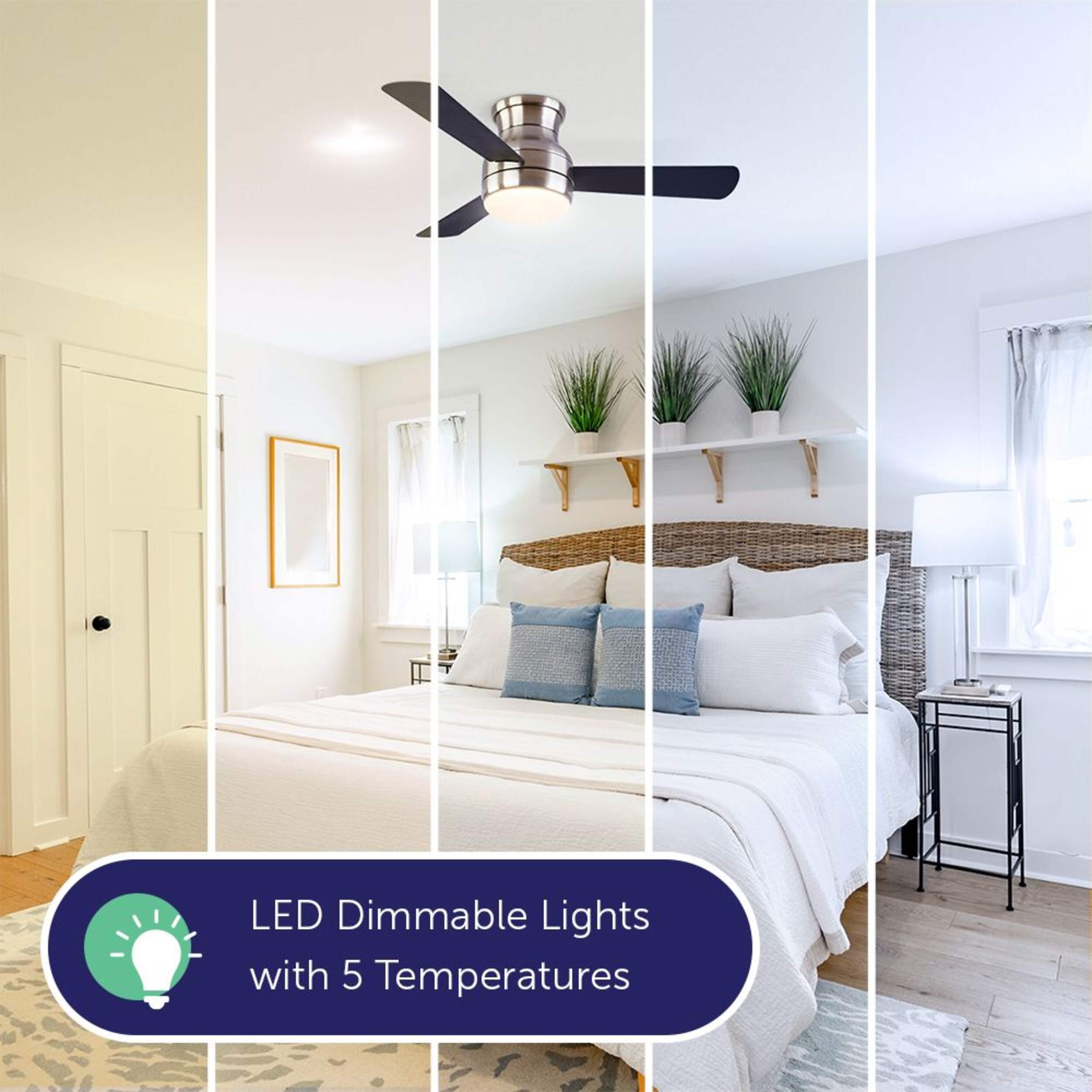 The NOMA Hayden 3-Blade 6-Speed Reversible Ceiling Fan with Dimmable LED and Remote in Brushed Nickel provides both style and functionality for any room. With a 44-inch blade span and a sleek brushed nickel finish, this fan is ideal for medium-sized spaces, offering an efficient and stylish solution for improved air circulation. The fan includes a dimmable LED light kit for customizable lighting and six adjustable speed settings for tailored airflow. The reversible modes functionality allows the blades to spin clockwise and counterclockwise suitable for Summer and Winter.