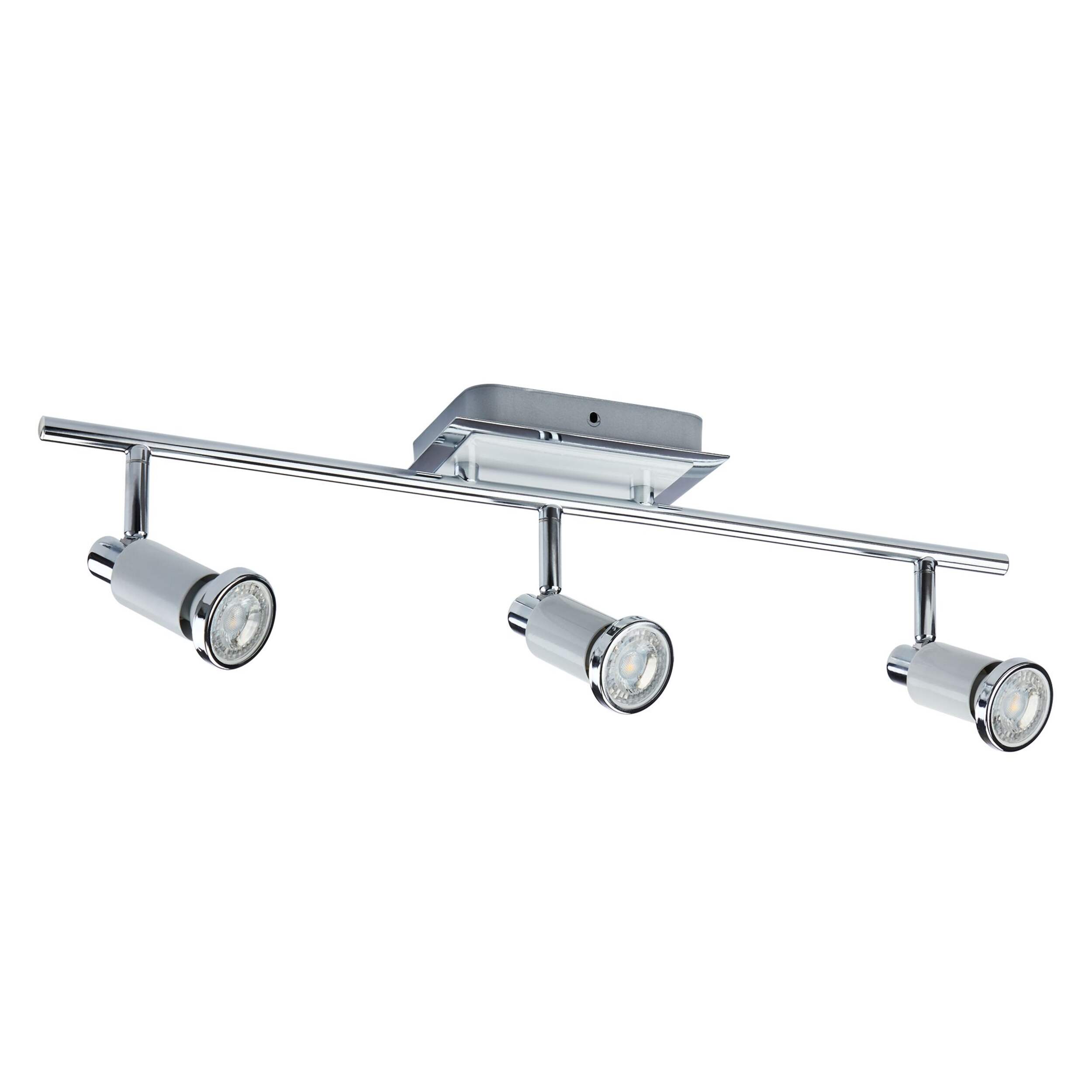 Incorporate swivel adjustable lighting into any room in your home with the NOMA Herly 3-Light Track Light Fixture. This rail lighting features three lights with a chrome finish and the ability to direct light where you need it most. One of the many advantages to this ceiling light fixture is its energy-saving sustainability. LED lights are used, so they’ll have a long lifespan, won’t need to be replaced as often as incandescent bulbs, and consume less electricity. The three lights from this modern track light brighten a space very efficiently. Whether you mount it on a wall or ceiling, this track lighting will illuminate a dark room such as your basement or rec room, and is also very suitable for your bathroom, office, living room, or kitchen. Three 50W (max.) MR16 shape GU10 base bulbs are required and they are sold separately. Included is all the mounting hardware and instructions to help make the installation process as seamless as possible. This ceiling light for living room and more must be installed in accordance with the applicable installation code by a person familiar with the construction and operation of the product and the hazards involved.