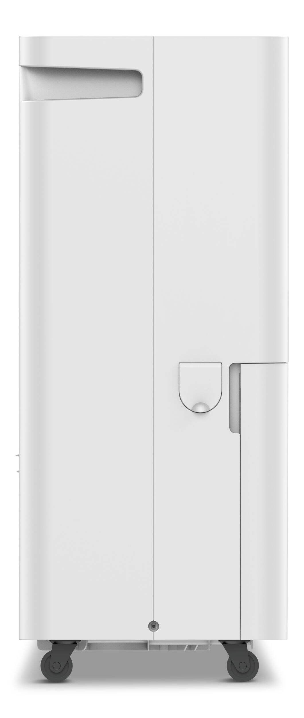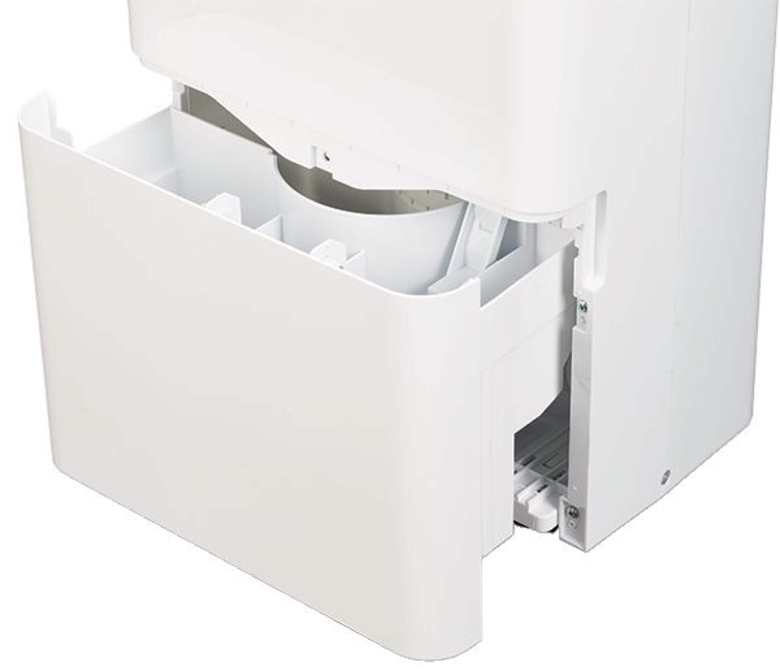 Removable, easy-to-clean 18.6 pint (8.8 L) water tank with front bucket access and handle