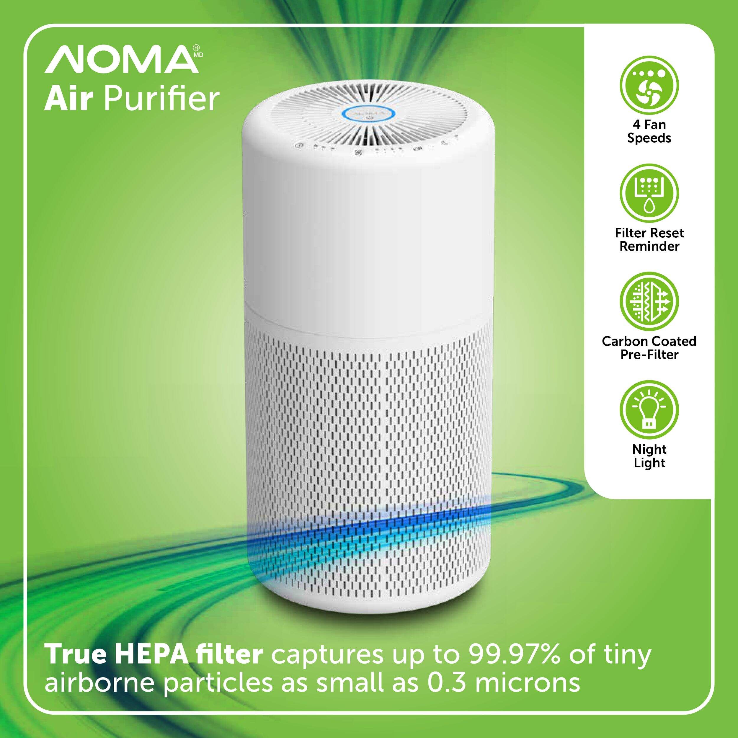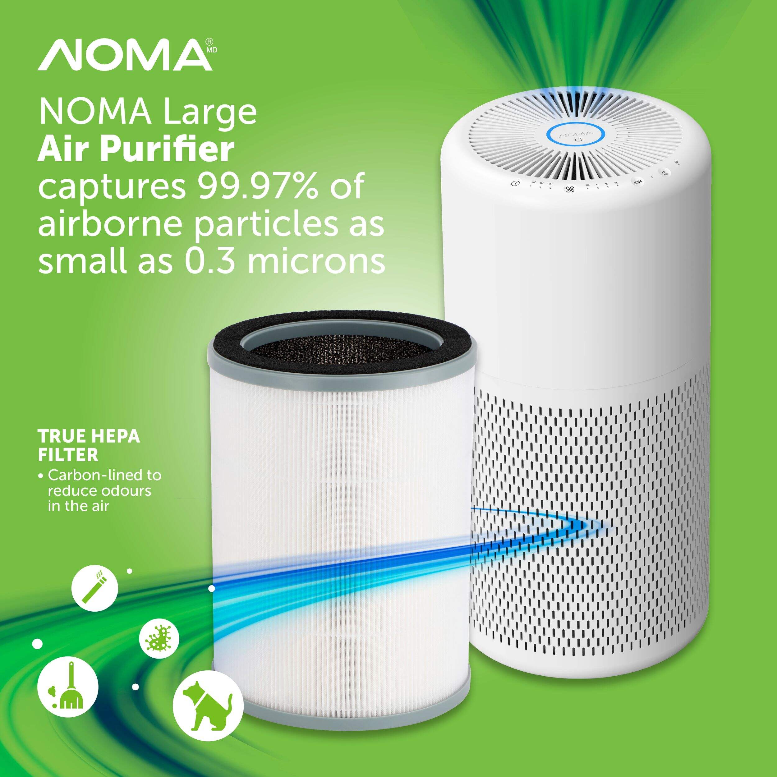 Enhance the air quality in your home with the NOMA Large True HEPA Air Purifier. Designed for large rooms, this purifier effectively captures up to 99.97% of airborne particles, ensuring a cleaner and healthier environment. The built-in night light adds a soothing touch, making it perfect for bedrooms and living spaces.
