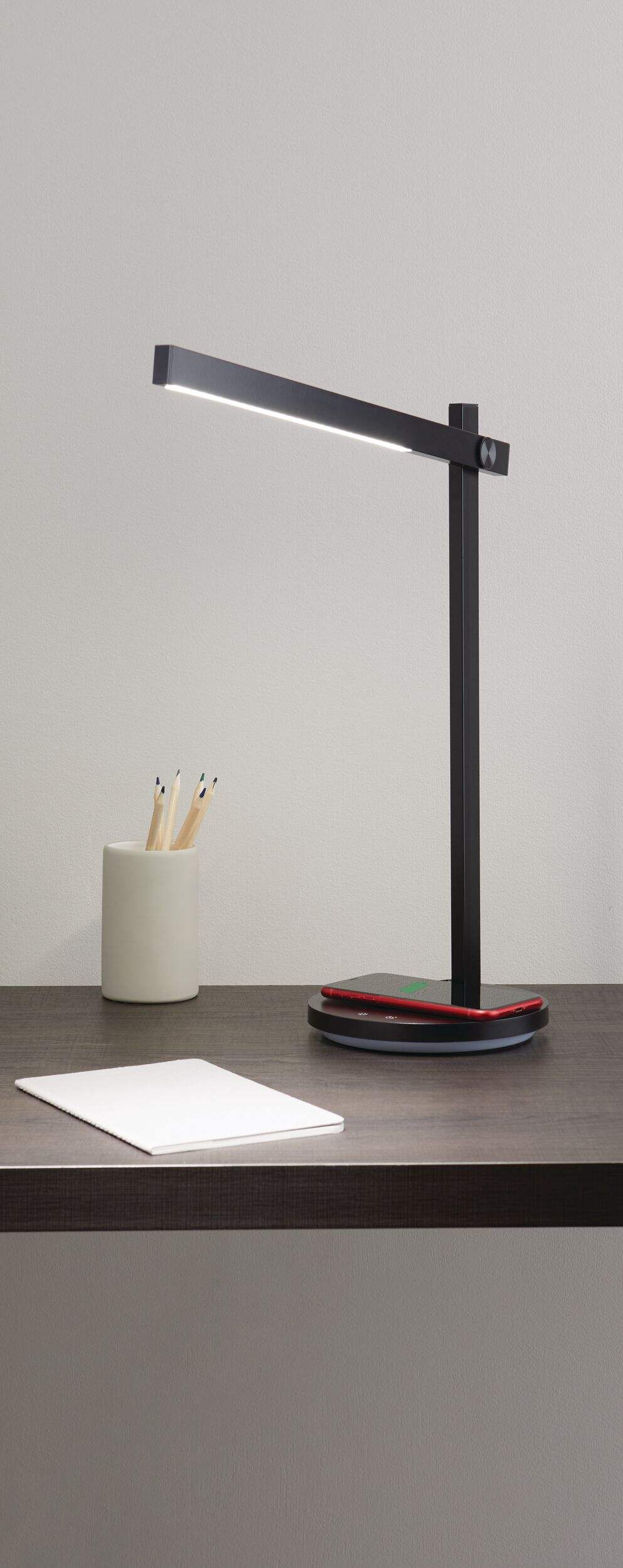 The NOMA Minimalist Wireless Charging LED Desk Lamp features 3 colour temperatures and 3 brightness levels