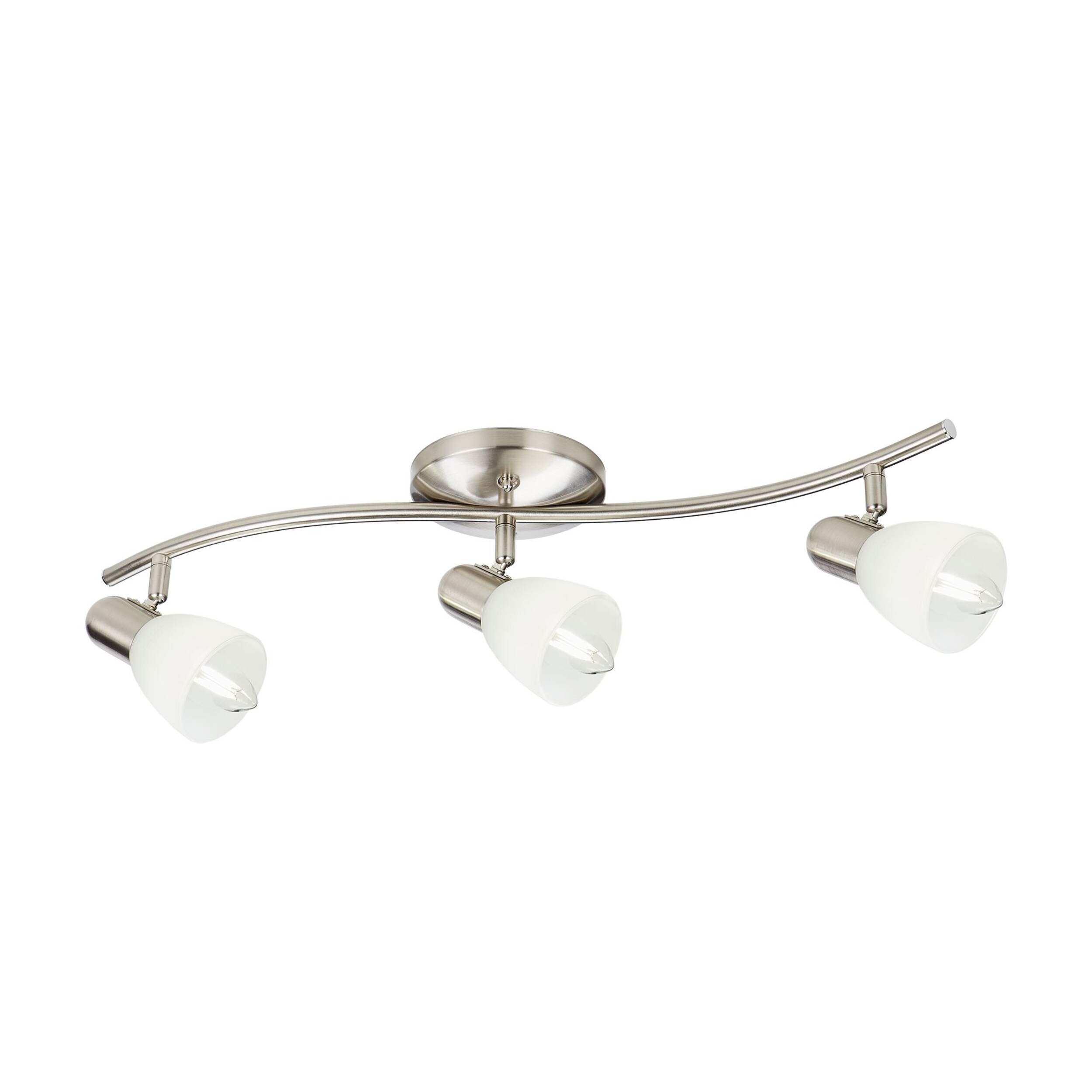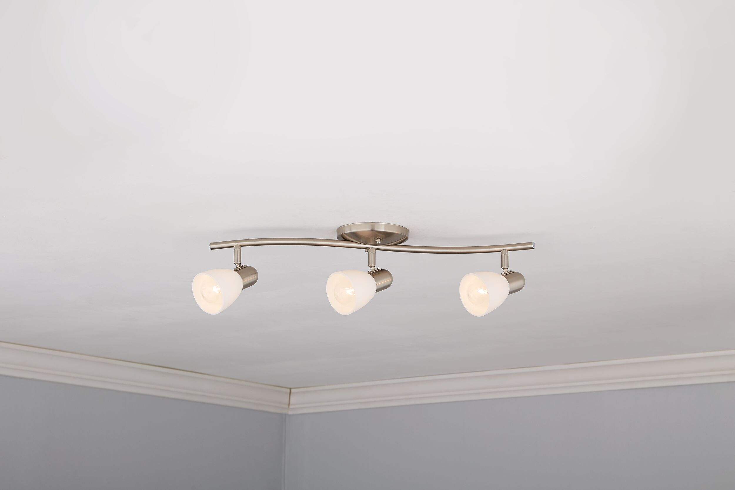 Light up your room with classic yet contemporary style with the NOMA 3-Light Madrid Track Fixture. This modern light fixture illuminates the room of your choosing with three lights and a beautiful brushed nickel finish with white glass shades. If you’re in search of a versatile lighting solution, this track light is suitable for many rooms in your home. The three lights from this ceiling light fixture provide ample lighting over a widespread area with a track fixture that will blend seamlessly within many different styles and rooms. Perfect whether you’re looking to bring better lighting into your kitchen, bathroom, office, living room, or illuminating a dark room with minimal windows such as your basement or rec room. Three 40W (max.) G16.5 shape E12 base bulbs are required and they are sold separately. Included is all the mounting hardware and instructions to help make the installation process as seamless as possible. This modern track light must be installed in accordance with the applicable installation code by a person familiar with the construction and operation of the product and the hazards involved.