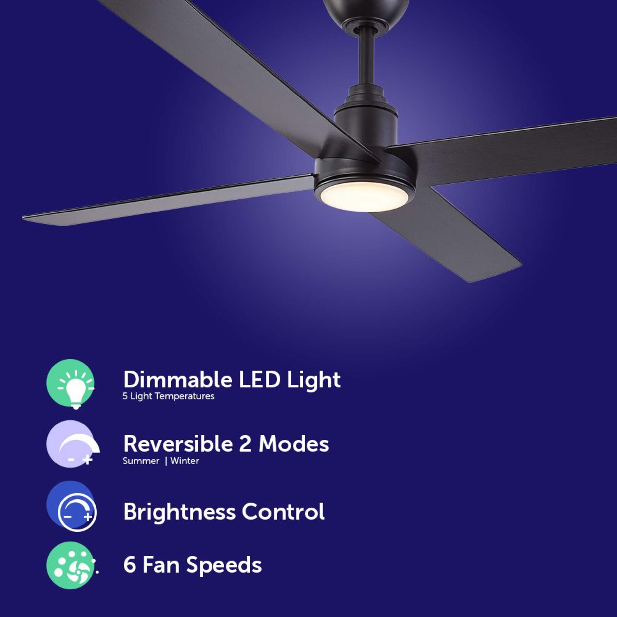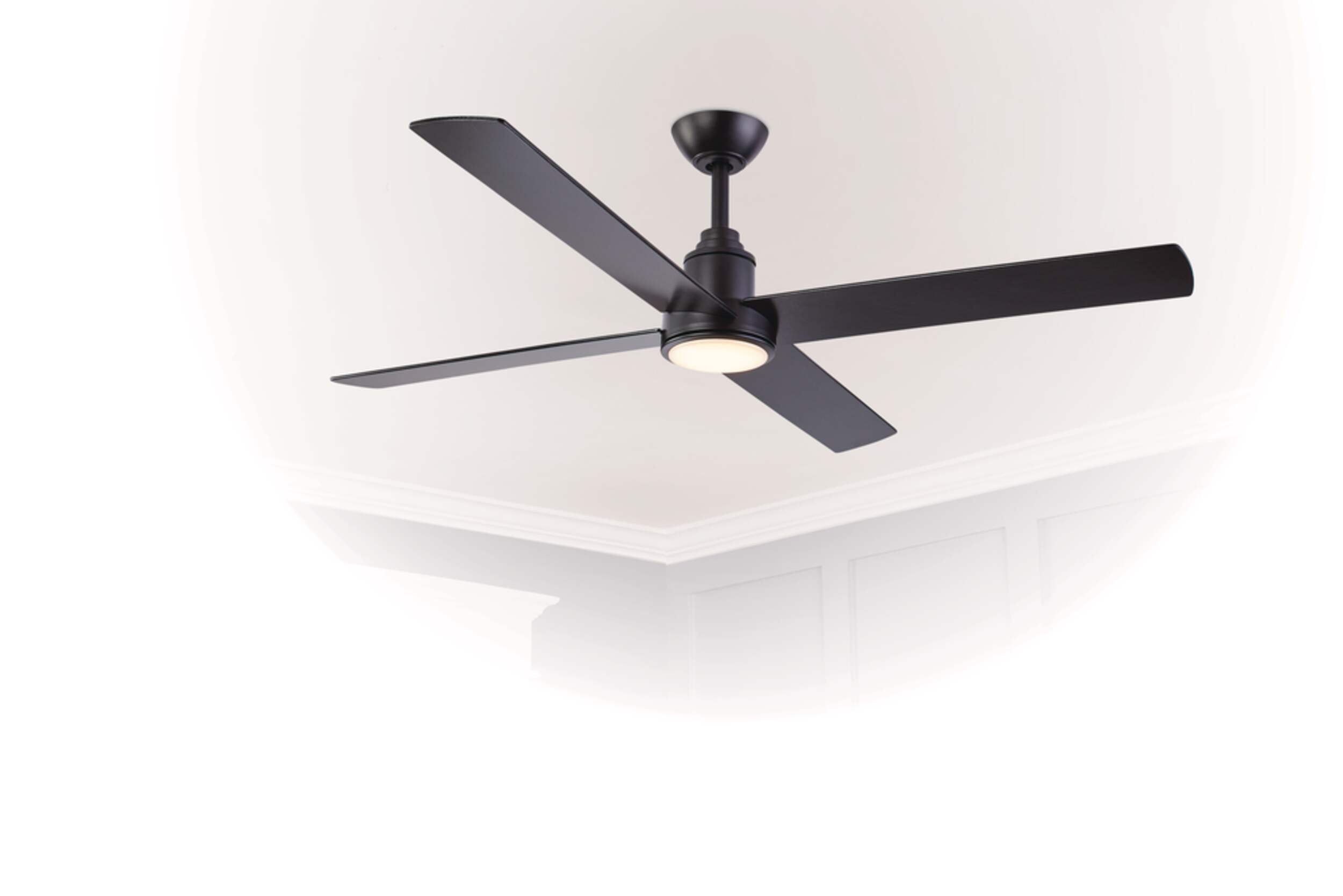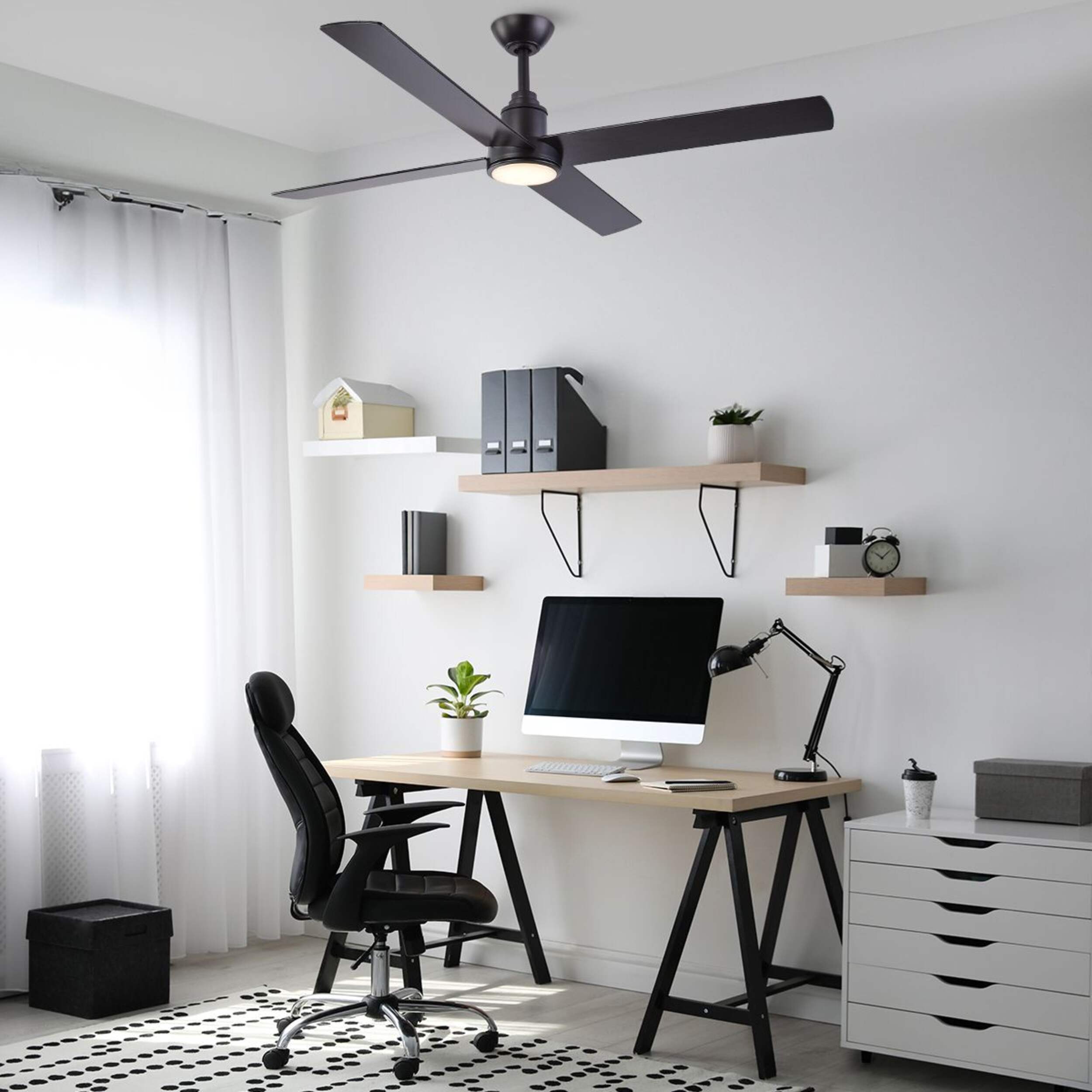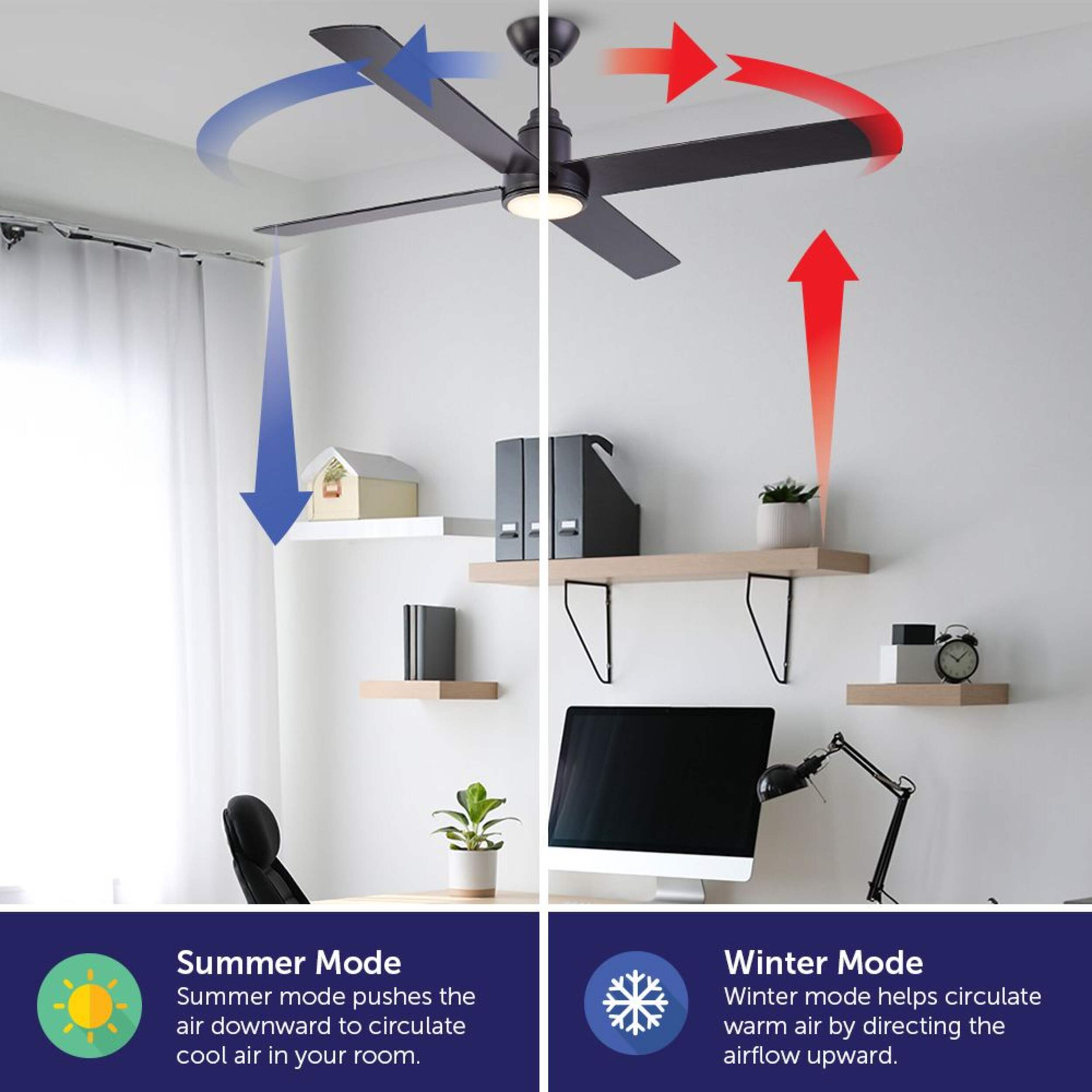The NOMA Marshall 4-Blade 6-Speed Ceiling Fan with Integrated LED Light Kit in Matte Black combines modern design with advanced functionality, making it a stylish addition to any room. This 52-inch fan features four sleek blades and an energy-efficient LED light, offering both lighting and cooling in one fixture. With its matte black finish, the NOMA Marshall fan complements contemporary, industrial, and modern decor, creating a comfortable and stylish environment in living rooms, bedrooms, and large spaces.