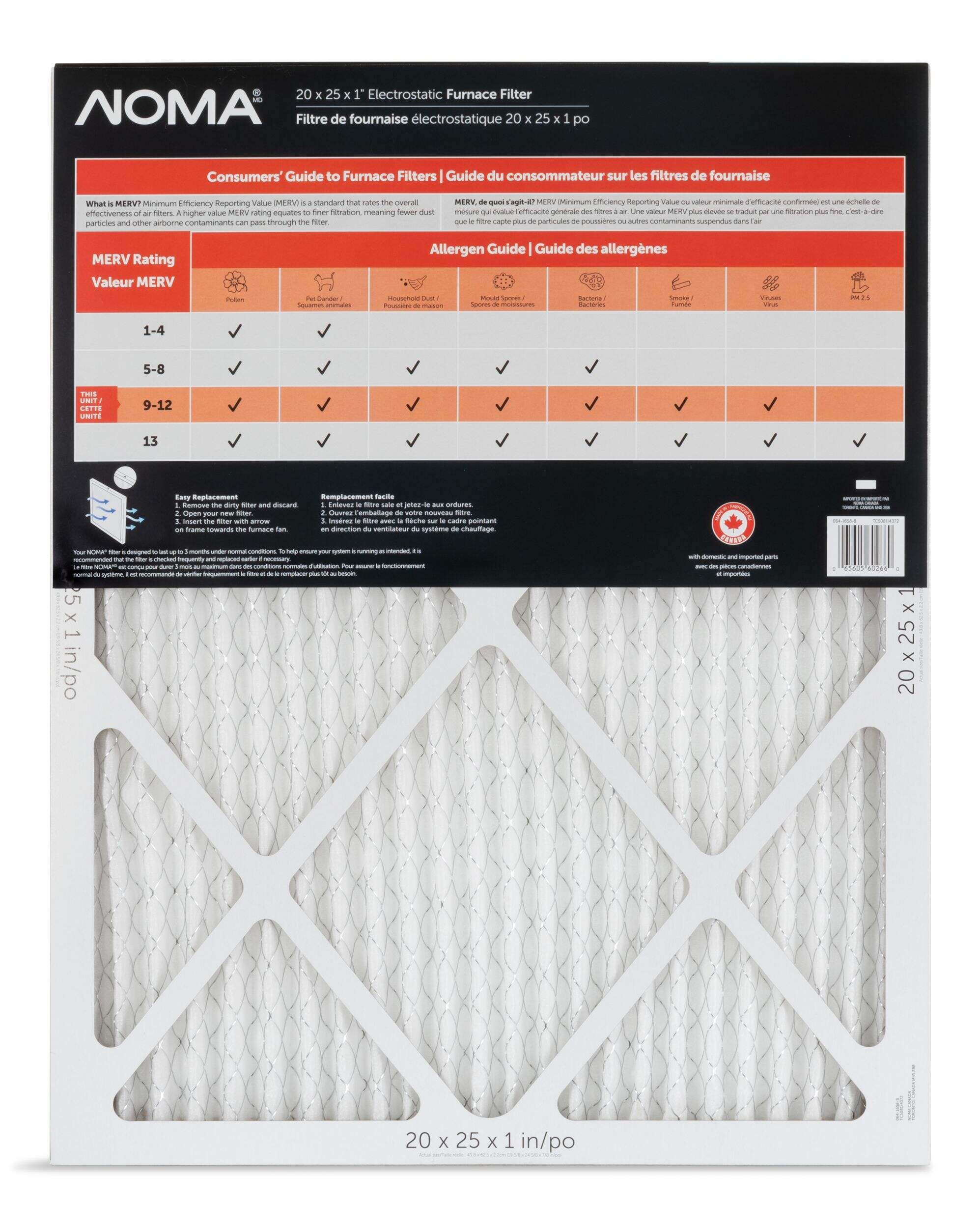 Breathe easy with the NOMA Merv 11 Furnace Filters. Capturing up to 90% of household allergens and dust particles, this filter helps purify the air in your home, trapping pollen, pet dander and other contaminants. The pleated material increases surface area and filtration effectiveness, while the compact size fits most furnaces and air handlers. These high-quality filters will help create a healthier home environment and reduce symptoms like sneezing and coughing associated with allergies.