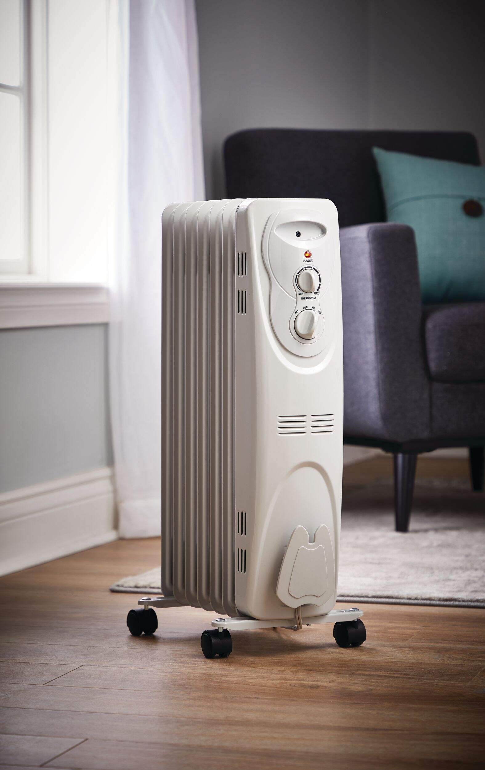 The NOMA Oil Filled Heater with Wheels offers 3 heat settings (600W, 900W and 1500W) for powerful heat distribution in medium-sized rooms