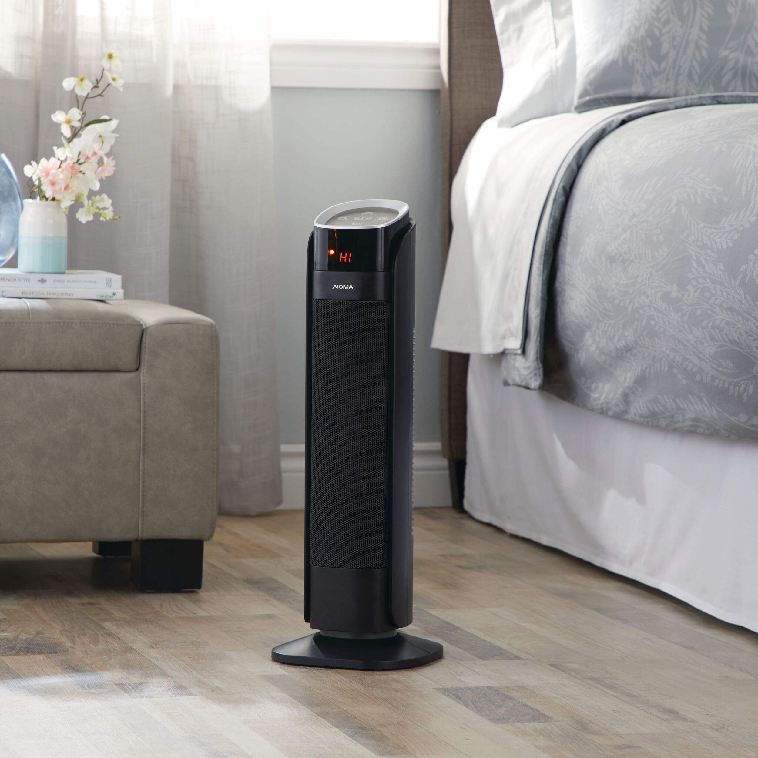 The NOMA Oscillating Tower Heater is designed with ceramic, fan-forced heating to quickly heat up medium-sized rooms and deliver personal heat when you need it most. With two heating settings (low and high) and an oscillating design, this space heater evenly distributes powerful heat throughout your room. For added safety around pets and children, this electric space heater features tip-over protection. Thanks to the LED display and adjustable digital thermostat, you always know which settings are in action, and the remote control lets you quickly and conveniently adjust settings from across the room. This oscillating tower heater is a practical choice for home offices, bedrooms, workshops, or anywhere else you need a little extra heat on chilly days.
