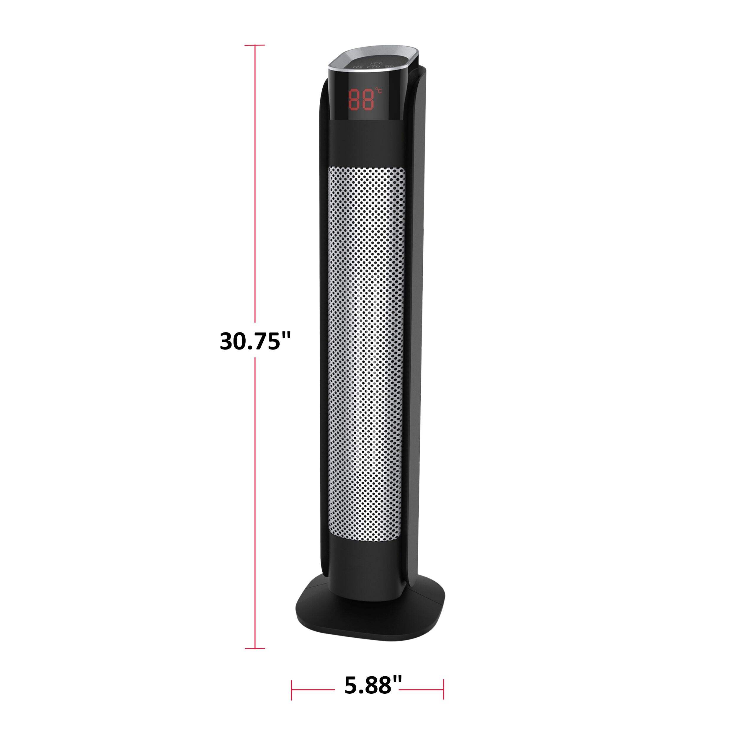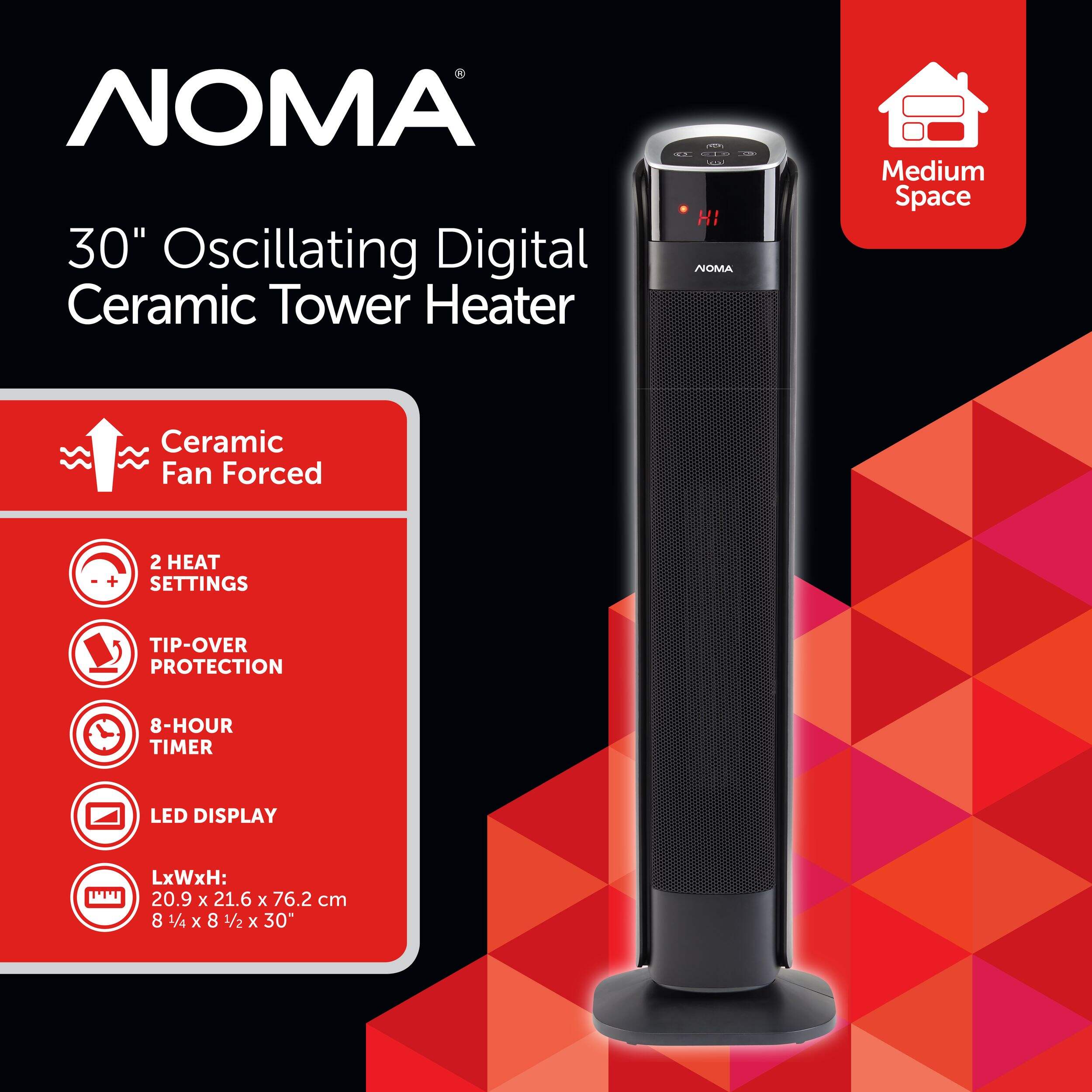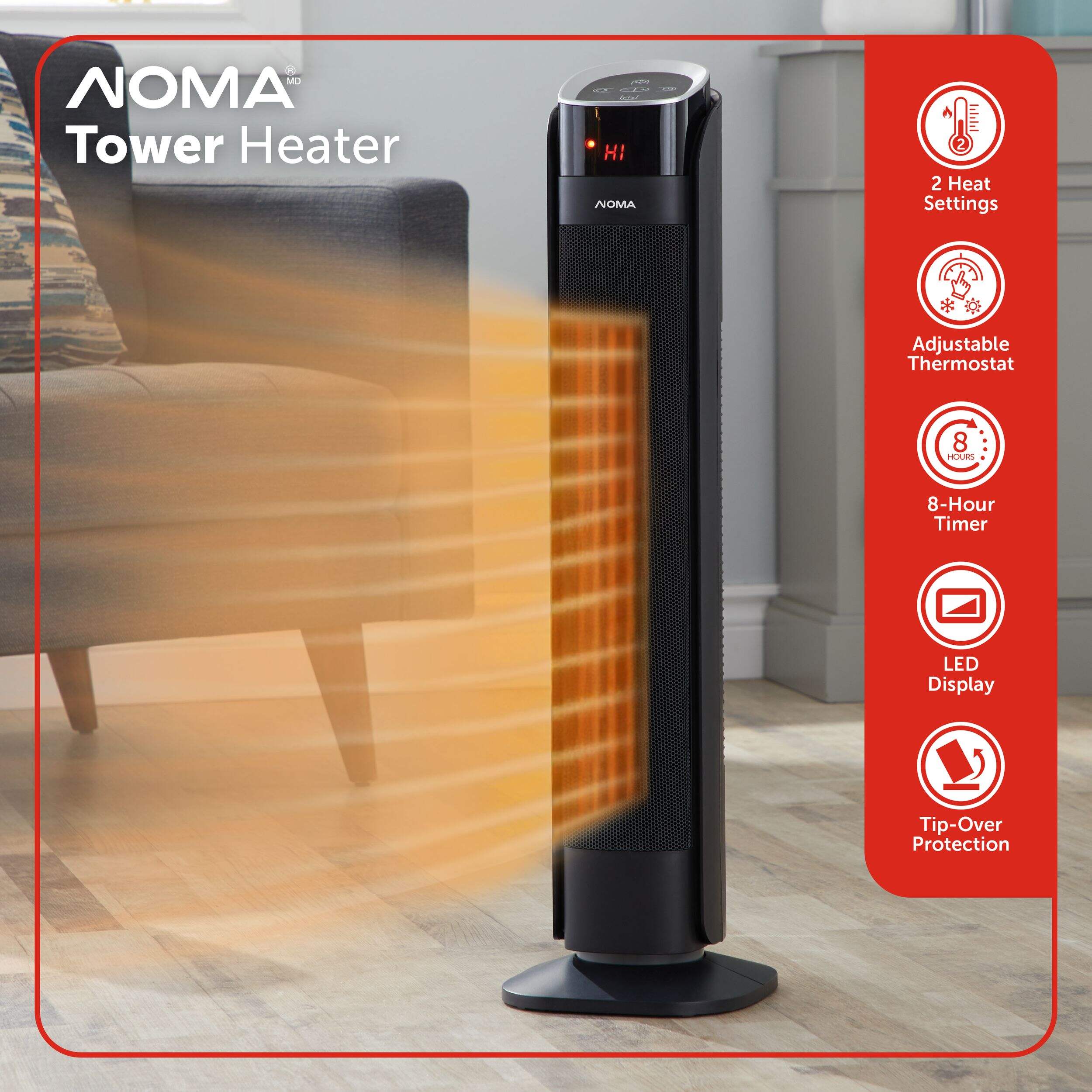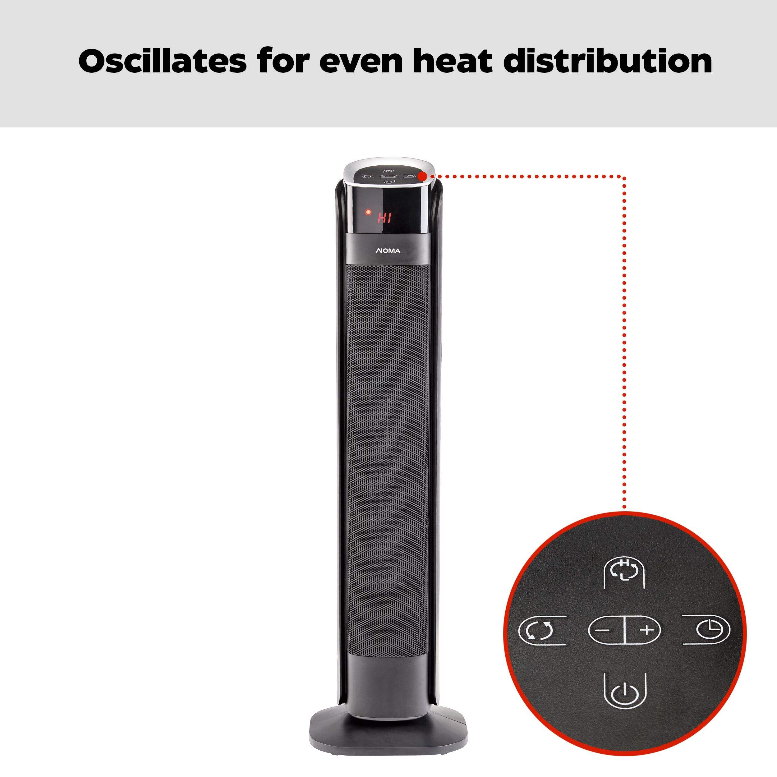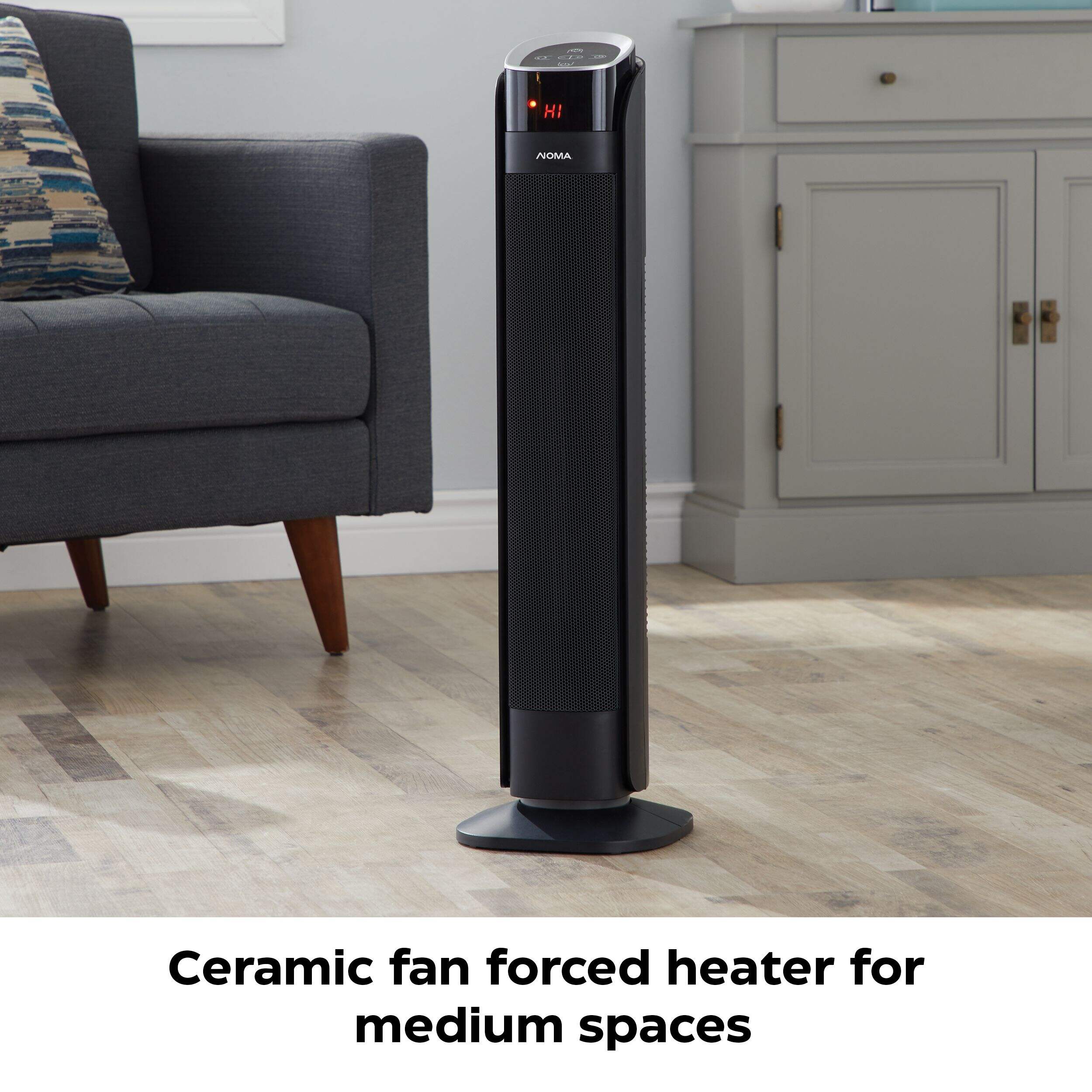 The NOMA Oscillating Tower Heater is designed with ceramic, fan-forced heating to quickly heat up medium-sized rooms up to 250 square feet and deliver extra warmth when you need it most. The 30" fan offers exceptional heat distribution to help your space feel warm and cozy in minutes. This oscillating tower heater is a fantastic choice for home offices, bedrooms, workshops, or anywhere else you need a little extra heat on chilly days.